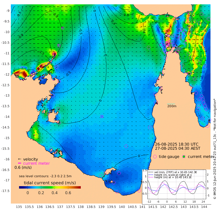24cm/s -67T +3cm/s rms + 7cm/s -42T. ARA-GOC87 57m 9cm/s 157T +3cm/s rms + 2cm/s -2T. ARA-GOC87 60m 27cm/s -77T +2cm/s rms + 3cm/s 61T. ARA-GOC87 47m -38cm Daru -43cm Bobo Island -41cm Meer Island Barge -56cm Bramble Cay -53cm Unnamed Cay -53cm Pearce Cay -48cm Stephens Island -57cm Merrie England Shoals -46cm Mutacomal Reef -41cm Darnley Island Barge -47cm East Cay -35cm Yorke Island Barge -43cm Rennel Island -36cm Aureed Island -32cm Dungeness Reef -5cm Zagai Island 0cm Yam Island 15cm Dauan Island 22cm Saibai Island 0cm Phipi Reef -1cm Warrior Reef - West 5cm Mabuiag Island Barge -36cm Half Way Island -36cm Coconut Island -30cm Dugong Islet -21cm Poll Island -16cm Kirkcaldie Reef -15cm Suarji Island -10cm Sue Islet -7cm Hawkesbury Island -14cm Alert Patches -10cm Twin Island -21cm Badu Island -2cm St Pauls (Moa Island) -5cm Kubin (Moa Island) -4cm Ince Point -3cm Thursday Island -3cm Nardana Patches -11cm Turtle Head -5cm Round Island -17cm Goods Island -5cm Booby Island -21cm White Rocks Area 30cm Carpentaria -2cm Papou Point -11cm Bampfield Head 6cm Crab Island 1cm Red Wallis Island -4cm Packe Island -36cm Harrington Reef 19cm Herald Camp 12cm Sharp Point -3cm Red Island Point -5cm Possession Island -9cm Alpha Rock -21cm Frederick Point -46cm Wyborn Reef Light -39cm Tetley Island -35cm Triangle Reef -48cm Turtle Head Island -36cm Maclennan Cay -43cm Raine Island -47cm Mcsweeny Reef -47cm Collette Reef -41cm Shadwell Reef -54cm Hannibal Island -61cm Round Point 20cm Vrilya Point -47cm Cape Grenville -46cm Hicks Island -41cm Sir Charles Hardy Island -12cm Harvey Island -51cm Kay Reef -45cm Rocky Island -49cm Chapman Island -38cm Ham Reef -42cm Jubilee Reef -36cm Night Island -41cm Unnamed Reef No. 3 -49cm Morris Island -45cm 1st 3 Mile Opening -41cm Creech Reef -45cm Fife Island -56cm Eden Reef -46cm Stanley Island -53cm Normanby River -175cm Yabooma Island -206cm Hutchison River -173cm Elcho Island -162cm North West Crocodile Island -107cm Cape Wessel -163cm Stevens Island -98cm Guluwuru Island -145cm Hopeful Bay -126cm Auster Point -110cm Two Island Bay -158cm Cadell Strait -66cm Mallison Island -100cm Melville Bay (Gove Harbour) -102cm Truant Island -62cm Cape Arnhem -49cm Cape Grey -33cm Hawk Island -15cm Milner Bay (Groote Eylandt) -5cm Cape Beatrice 29cm West Island 34cm Centre Island 20cm Mornington Island 15cm West Wellesley Islands -12cm Bountiful Island -20cm Albert River Mouth -28cm Sweers Island -5cm Karumba 16cm Nassau River Offshore 19cm Christmas Creek 6cm Archer River 15cm Boyd Point 3cm Weipa (Humbug Point) 14cm Pennefather River 26cm Cullen Point