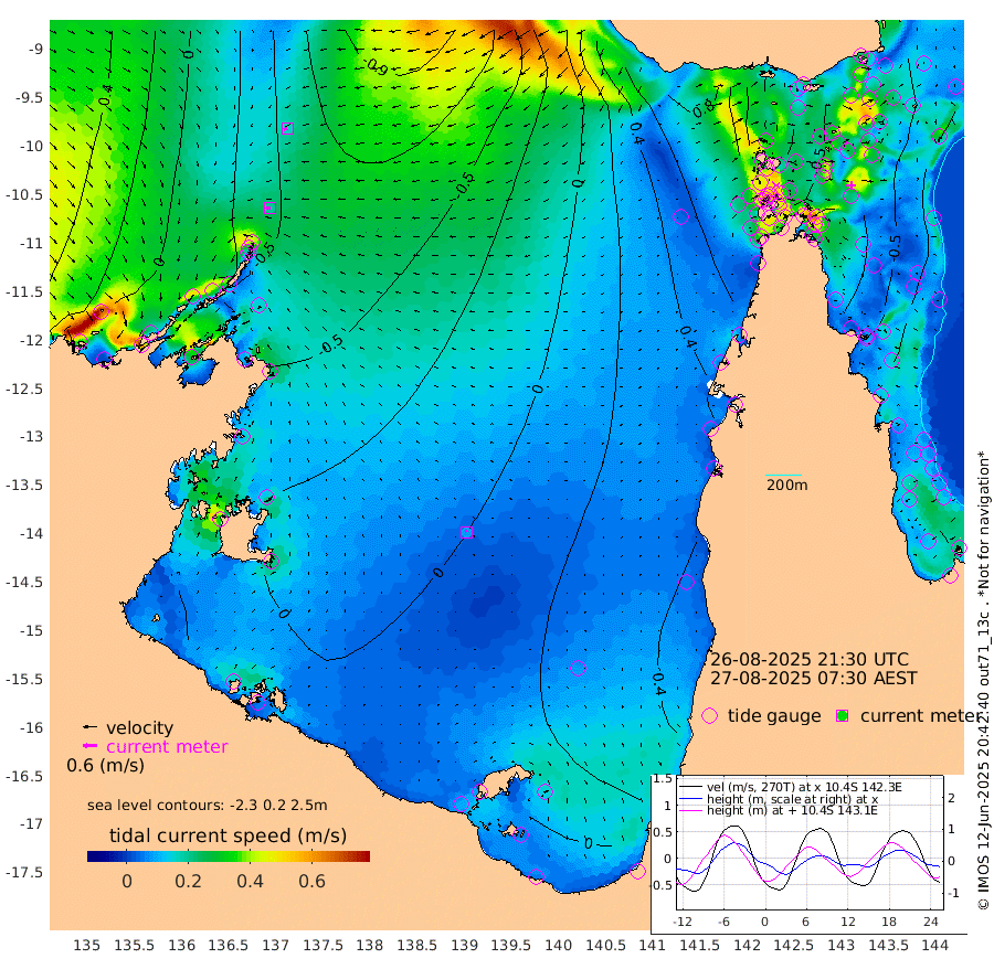 19cm/s -97T +3cm/s rms + 7cm/s -42T. ARA-GOC87 57m 9cm/s -35T +3cm/s rms + 2cm/s -2T. ARA-GOC87 60m 17cm/s -111T +2cm/s rms + 3cm/s 61T. ARA-GOC87 47m -77cm Daru -82cm Bobo Island -32cm Meer Island Barge -45cm Bramble Cay -61cm Unnamed Cay -70cm Pearce Cay -58cm Stephens Island -53cm Merrie England Shoals -70cm Mutacomal Reef -57cm Darnley Island Barge -33cm East Cay -69cm Yorke Island Barge -64cm Rennel Island -79cm Aureed Island -69cm Dungeness Reef -89cm Zagai Island -71cm Yam Island -70cm Dauan Island -76cm Saibai Island -56cm Phipi Reef -90cm Warrior Reef - West -39cm Mabuiag Island Barge -57cm Half Way Island -78cm Coconut Island -66cm Dugong Islet -73cm Poll Island -58cm Kirkcaldie Reef -79cm Suarji Island -73cm Sue Islet 49cm Hawkesbury Island -50cm Alert Patches -58cm Twin Island 17cm Badu Island -63cm St Pauls (Moa Island) 8cm Kubin (Moa Island) -33cm Ince Point -15cm Thursday Island -21cm Nardana Patches 5cm Turtle Head 26cm Round Island 41cm Goods Island 66cm Booby Island 54cm White Rocks Area 49cm Carpentaria -49cm Papou Point 50cm Bampfield Head 70cm Crab Island 57cm Red Wallis Island 25cm Packe Island -75cm Harrington Reef 56cm Herald Camp -19cm Sharp Point 19cm Red Island Point -19cm Possession Island -63cm Alpha Rock -68cm Frederick Point -81cm Wyborn Reef Light -81cm Tetley Island -39cm Triangle Reef -65cm Turtle Head Island -31cm Maclennan Cay -14cm Raine Island -62cm Mcsweeny Reef -53cm Collette Reef -30cm Shadwell Reef -56cm Hannibal Island -43cm Round Point 78cm Vrilya Point -33cm Cape Grenville -32cm Hicks Island -41cm Sir Charles Hardy Island -10cm Harvey Island -25cm Kay Reef -22cm Rocky Island -20cm Chapman Island -18cm Ham Reef -21cm Jubilee Reef -20cm Night Island -18cm Unnamed Reef No. 3 -21cm Morris Island -16cm 1st 3 Mile Opening -18cm Creech Reef -29cm Fife Island -19cm Eden Reef -14cm Stanley Island -20cm Normanby River -6cm Yabooma Island -34cm Hutchison River -17cm Elcho Island -7cm North West Crocodile Island -66cm Cape Wessel -38cm Stevens Island -101cm Guluwuru Island -24cm Hopeful Bay -43cm Auster Point -39cm Two Island Bay -60cm Cadell Strait -184cm Mallison Island -83cm Melville Bay (Gove Harbour) -91cm Truant Island -70cm Cape Arnhem -46cm Cape Grey -31cm Hawk Island -9cm Milner Bay (Groote Eylandt) -1cm Cape Beatrice 18cm West Island 26cm Centre Island 20cm Mornington Island 17cm West Wellesley Islands 17cm Bountiful Island 33cm Albert River Mouth 30cm Sweers Island 49cm Karumba 31cm Nassau River Offshore 31cm Christmas Creek 45cm Archer River 33cm Boyd Point 45cm Weipa (Humbug Point) 61cm Pennefather River 61cm Cullen Point