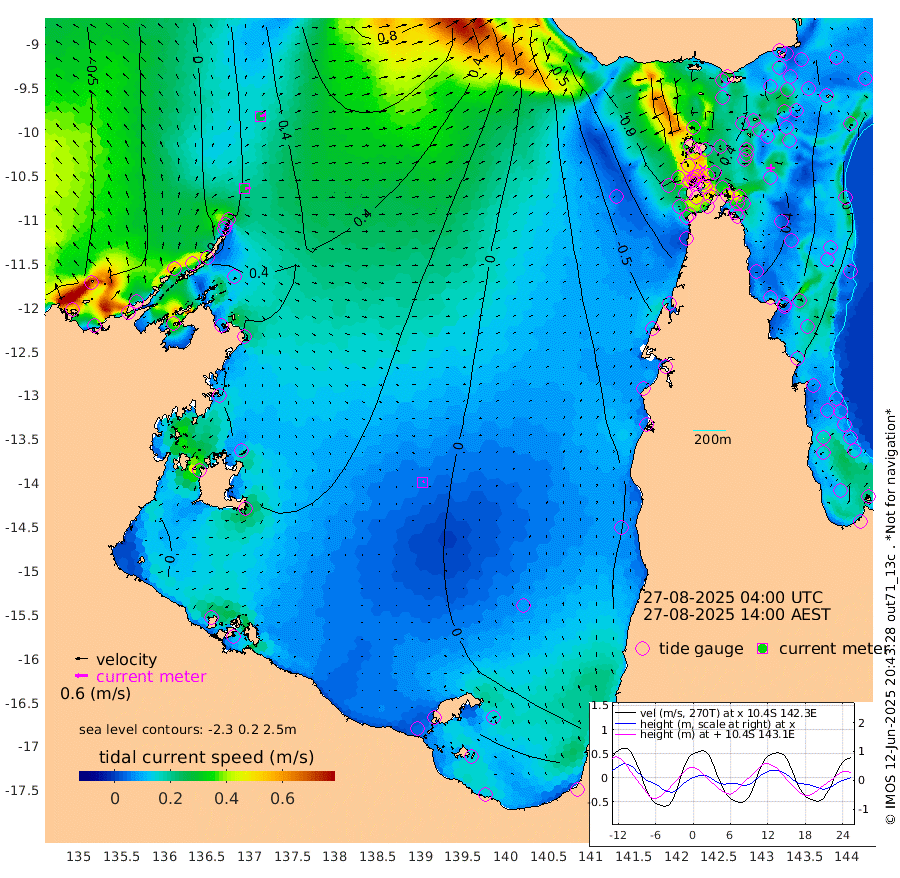 28cm/s 87T +3cm/s rms + 7cm/s -42T. ARA-GOC87 57m 6cm/s 58T +3cm/s rms + 2cm/s -2T. ARA-GOC87 60m 27cm/s 76T +2cm/s rms + 3cm/s 61T. ARA-GOC87 47m 41cm Daru 50cm Bobo Island 7cm Meer Island Barge 13cm Bramble Cay 20cm Unnamed Cay 37cm Pearce Cay 23cm Stephens Island 16cm Merrie England Shoals 27cm Mutacomal Reef 27cm Darnley Island Barge 6cm East Cay 36cm Yorke Island Barge 23cm Rennel Island 45cm Aureed Island 32cm Dungeness Reef 55cm Zagai Island 30cm Yam Island 33cm Dauan Island 44cm Saibai Island 38cm Phipi Reef 53cm Warrior Reef - West 4cm Mabuiag Island Barge 21cm Half Way Island 44cm Coconut Island 22cm Dugong Islet 34cm Poll Island 24cm Kirkcaldie Reef 36cm Suarji Island 38cm Sue Islet -94cm Hawkesbury Island 12cm Alert Patches 18cm Twin Island -52cm Badu Island 23cm St Pauls (Moa Island) -55cm Kubin (Moa Island) -7cm Ince Point -24cm Thursday Island -19cm Nardana Patches -46cm Turtle Head -68cm Round Island -84cm Goods Island -104cm Booby Island -101cm White Rocks Area -81cm Carpentaria 15cm Papou Point -101cm Bampfield Head -85cm Crab Island -98cm Red Wallis Island -71cm Packe Island 34cm Harrington Reef -105cm Herald Camp 13cm Sharp Point -39cm Red Island Point -13cm Possession Island 17cm Alpha Rock 28cm Frederick Point 36cm Wyborn Reef Light 36cm Tetley Island 12cm Triangle Reef 27cm Turtle Head Island 1cm Maclennan Cay -5cm Raine Island 26cm Mcsweeny Reef 22cm Collette Reef 7cm Shadwell Reef 23cm Hannibal Island 11cm Round Point -82cm Vrilya Point 2cm Cape Grenville 4cm Hicks Island 0cm Sir Charles Hardy Island 1cm Harvey Island -3cm Kay Reef -3cm Rocky Island -2cm Chapman Island -5cm Ham Reef -2cm Jubilee Reef -1cm Night Island -4cm Unnamed Reef No. 3 -4cm Morris Island -9cm 1st 3 Mile Opening -4cm Creech Reef 6cm Fife Island -7cm Eden Reef -11cm Stanley Island -9cm Normanby River -45cm Yabooma Island -23cm Hutchison River -28cm Elcho Island -35cm North West Crocodile Island 27cm Cape Wessel 0cm Stevens Island 67cm Guluwuru Island -8cm Hopeful Bay 10cm Auster Point 2cm Two Island Bay 29cm Cadell Strait 168cm Mallison Island 55cm Melville Bay (Gove Harbour) 58cm Truant Island 52cm Cape Arnhem 43cm Cape Grey 34cm Hawk Island 27cm Milner Bay (Groote Eylandt) 16cm Cape Beatrice 10cm West Island 11cm Centre Island 22cm Mornington Island 15cm West Wellesley Islands 17cm Bountiful Island 16cm Albert River Mouth 39cm Sweers Island 12cm Karumba -1cm Nassau River Offshore -17cm Christmas Creek -38cm Archer River -45cm Boyd Point -58cm Weipa (Humbug Point) -48cm Pennefather River -77cm Cullen Point