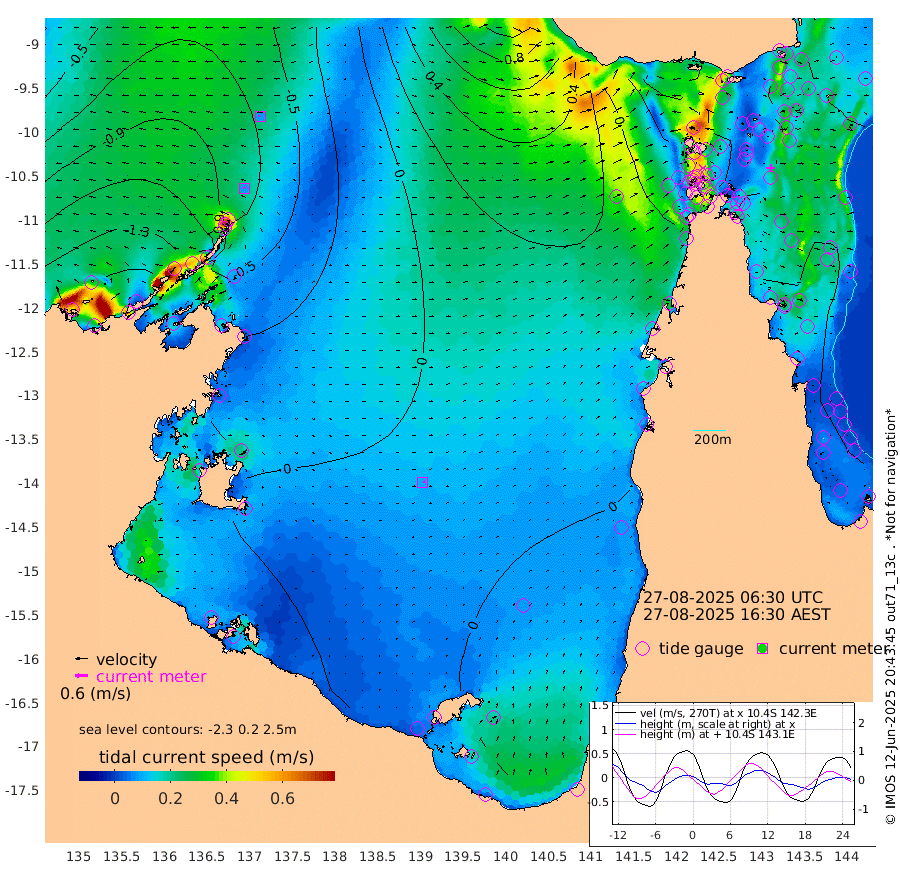 8cm/s -48T +3cm/s rms + 7cm/s -42T. ARA-GOC87 57m 10cm/s 74T +3cm/s rms + 2cm/s -2T. ARA-GOC87 60m 8cm/s -81T +2cm/s rms + 3cm/s 61T. ARA-GOC87 47m -36cm Daru -32cm Bobo Island -24cm Meer Island Barge -42cm Bramble Cay -42cm Unnamed Cay -39cm Pearce Cay -35cm Stephens Island -47cm Merrie England Shoals -46cm Mutacomal Reef -24cm Darnley Island Barge -34cm East Cay -23cm Yorke Island Barge -40cm Rennel Island -21cm Aureed Island -30cm Dungeness Reef -10cm Zagai Island -23cm Yam Island -20cm Dauan Island -3cm Saibai Island -27cm Phipi Reef -20cm Warrior Reef - West -15cm Mabuiag Island Barge -32cm Half Way Island -27cm Coconut Island -29cm Dugong Islet -25cm Poll Island -26cm Kirkcaldie Reef -10cm Suarji Island -12cm Sue Islet -64cm Hawkesbury Island -20cm Alert Patches -20cm Twin Island -47cm Badu Island -15cm St Pauls (Moa Island) -47cm Kubin (Moa Island) -23cm Ince Point -23cm Thursday Island -24cm Nardana Patches -37cm Turtle Head -50cm Round Island -47cm Goods Island -34cm Booby Island -44cm White Rocks Area 25cm Carpentaria -17cm Papou Point -36cm Bampfield Head -29cm Crab Island -37cm Red Wallis Island -49cm Packe Island -28cm Harrington Reef -51cm Herald Camp 4cm Sharp Point -35cm Red Island Point -25cm Possession Island -20cm Alpha Rock -25cm Frederick Point -42cm Wyborn Reef Light -39cm Tetley Island -25cm Triangle Reef -40cm Turtle Head Island -24cm Maclennan Cay -27cm Raine Island -33cm Mcsweeny Reef -33cm Collette Reef -27cm Shadwell Reef -37cm Hannibal Island -49cm Round Point -9cm Vrilya Point -35cm Cape Grenville -35cm Hicks Island -30cm Sir Charles Hardy Island -10cm Harvey Island -34cm Kay Reef -29cm Rocky Island -30cm Chapman Island -24cm Ham Reef -25cm Jubilee Reef -24cm Night Island -25cm Unnamed Reef No. 3 -30cm Morris Island -22cm 1st 3 Mile Opening -23cm Creech Reef -32cm Fife Island -33cm Eden Reef -30cm Stanley Island -38cm Normanby River -178cm Yabooma Island -194cm Hutchison River -165cm Elcho Island -166cm North West Crocodile Island -84cm Cape Wessel -151cm Stevens Island -61cm Guluwuru Island -138cm Hopeful Bay -106cm Auster Point -110cm Two Island Bay -152cm Cadell Strait -31cm Mallison Island -66cm Melville Bay (Gove Harbour) -67cm Truant Island -32cm Cape Arnhem -12cm Cape Grey -15cm Hawk Island 17cm Milner Bay (Groote Eylandt) 15cm Cape Beatrice 54cm West Island 58cm Centre Island 17cm Mornington Island 20cm West Wellesley Islands 3cm Bountiful Island -19cm Albert River Mouth -4cm Sweers Island -24cm Karumba -6cm Nassau River Offshore -10cm Christmas Creek -15cm Archer River -6cm Boyd Point -21cm Weipa (Humbug Point) -5cm Pennefather River -11cm Cullen Point