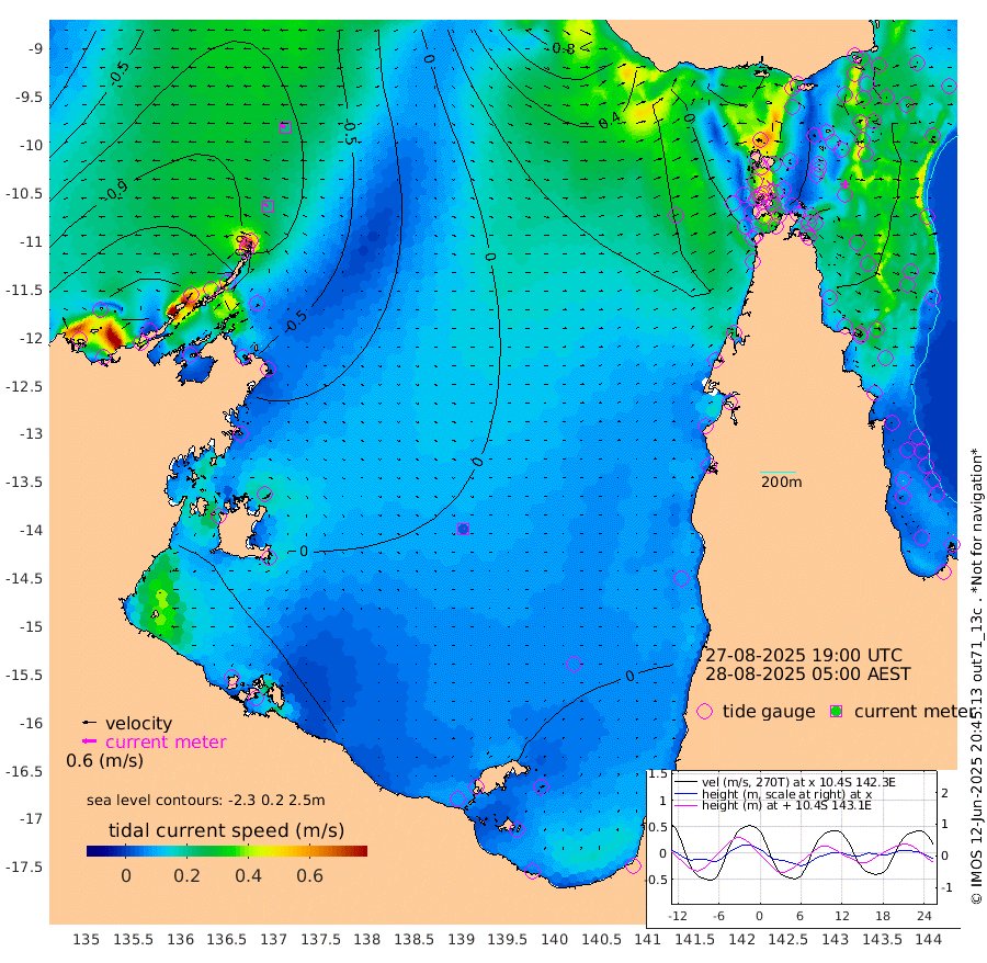 22cm/s -60T +3cm/s rms + 7cm/s -42T. ARA-GOC87 57m 3cm/s 125T +3cm/s rms + 2cm/s -2T. ARA-GOC87 60m 23cm/s -69T +2cm/s rms + 3cm/s 61T. ARA-GOC87 47m -48cm Daru -49cm Bobo Island -37cm Meer Island Barge -52cm Bramble Cay -54cm Unnamed Cay -57cm Pearce Cay -48cm Stephens Island -56cm Merrie England Shoals -52cm Mutacomal Reef -41cm Darnley Island Barge -41cm East Cay -41cm Yorke Island Barge -49cm Rennel Island -42cm Aureed Island -46cm Dungeness Reef -29cm Zagai Island -25cm Yam Island -23cm Dauan Island -13cm Saibai Island -38cm Phipi Reef -29cm Warrior Reef - West -27cm Mabuiag Island Barge -41cm Half Way Island -48cm Coconut Island -40cm Dugong Islet -38cm Poll Island -34cm Kirkcaldie Reef -40cm Suarji Island -30cm Sue Islet -39cm Hawkesbury Island -41cm Alert Patches -34cm Twin Island -55cm Badu Island -31cm St Pauls (Moa Island) -34cm Kubin (Moa Island) -32cm Ince Point -32cm Thursday Island -32cm Nardana Patches -40cm Turtle Head -33cm Round Island -45cm Goods Island -33cm Booby Island -44cm White Rocks Area 11cm Carpentaria -27cm Papou Point -37cm Bampfield Head -18cm Crab Island -24cm Red Wallis Island -30cm Packe Island -46cm Harrington Reef -11cm Herald Camp 2cm Sharp Point -31cm Red Island Point -31cm Possession Island -27cm Alpha Rock -40cm Frederick Point -54cm Wyborn Reef Light -50cm Tetley Island -34cm Triangle Reef -60cm Turtle Head Island -33cm Maclennan Cay -37cm Raine Island -49cm Mcsweeny Reef -47cm Collette Reef -38cm Shadwell Reef -52cm Hannibal Island -55cm Round Point -2cm Vrilya Point -41cm Cape Grenville -42cm Hicks Island -38cm Sir Charles Hardy Island -11cm Harvey Island -43cm Kay Reef -39cm Rocky Island -40cm Chapman Island -31cm Ham Reef -36cm Jubilee Reef -30cm Night Island -33cm Unnamed Reef No. 3 -41cm Morris Island -40cm 1st 3 Mile Opening -35cm Creech Reef -37cm Fife Island -44cm Eden Reef -37cm Stanley Island -42cm Normanby River -155cm Yabooma Island -185cm Hutchison River -152cm Elcho Island -143cm North West Crocodile Island -88cm Cape Wessel -140cm Stevens Island -85cm Guluwuru Island -123cm Hopeful Bay -109cm Auster Point -93cm Two Island Bay -142cm Cadell Strait -40cm Mallison Island -87cm Melville Bay (Gove Harbour) -88cm Truant Island -54cm Cape Arnhem -43cm Cape Grey -25cm Hawk Island -4cm Milner Bay (Groote Eylandt) 3cm Cape Beatrice 37cm West Island 43cm Centre Island 24cm Mornington Island 22cm West Wellesley Islands -8cm Bountiful Island -8cm Albert River Mouth -14cm Sweers Island 1cm Karumba 12cm Nassau River Offshore 9cm Christmas Creek -7cm Archer River -1cm Boyd Point -13cm Weipa (Humbug Point) -2cm Pennefather River 7cm Cullen Point