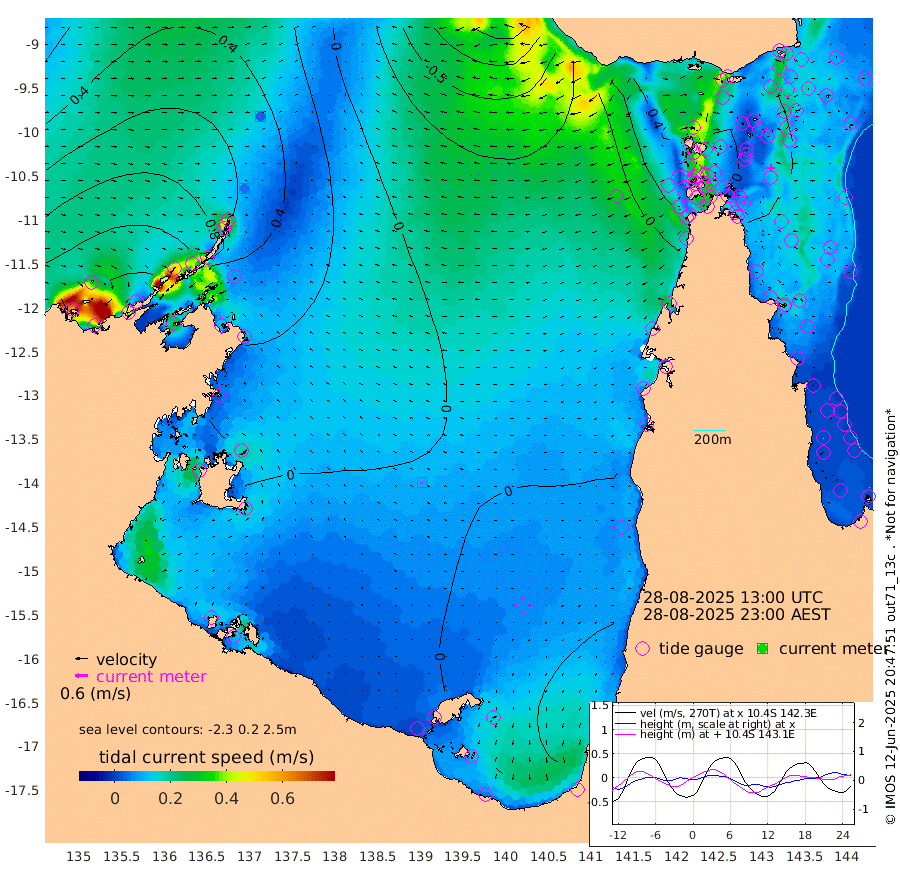 6cm/s -132T +3cm/s rms + 7cm/s -42T. ARA-GOC87 57m 10cm/s -131T +3cm/s rms + 2cm/s -2T. ARA-GOC87 60m 5cm/s -141T +2cm/s rms + 3cm/s 61T. ARA-GOC87 47m 52cm Daru 43cm Bobo Island 26cm Meer Island Barge 42cm Bramble Cay 52cm Unnamed Cay 48cm Pearce Cay 43cm Stephens Island 49cm Merrie England Shoals 57cm Mutacomal Reef 33cm Darnley Island Barge 31cm East Cay 38cm Yorke Island Barge 53cm Rennel Island 38cm Aureed Island 54cm Dungeness Reef 44cm Zagai Island 53cm Yam Island 61cm Dauan Island 43cm Saibai Island 59cm Phipi Reef 53cm Warrior Reef - West 52cm Mabuiag Island Barge 45cm Half Way Island 47cm Coconut Island 51cm Dugong Islet 52cm Poll Island 49cm Kirkcaldie Reef 58cm Suarji Island 42cm Sue Islet 73cm Hawkesbury Island 56cm Alert Patches 53cm Twin Island 74cm Badu Island 55cm St Pauls (Moa Island) 68cm Kubin (Moa Island) 56cm Ince Point 56cm Thursday Island 57cm Nardana Patches 67cm Turtle Head 62cm Round Island 72cm Goods Island 58cm Booby Island 71cm White Rocks Area 5cm Carpentaria 47cm Papou Point 59cm Bampfield Head 35cm Crab Island 54cm Red Wallis Island 63cm Packe Island 50cm Harrington Reef 57cm Herald Camp 6cm Sharp Point 48cm Red Island Point 47cm Possession Island 49cm Alpha Rock 51cm Frederick Point 56cm Wyborn Reef Light 56cm Tetley Island 28cm Triangle Reef 55cm Turtle Head Island 30cm Maclennan Cay 25cm Raine Island 44cm Mcsweeny Reef 38cm Collette Reef 29cm Shadwell Reef 41cm Hannibal Island 44cm Round Point 11cm Vrilya Point 34cm Cape Grenville 35cm Hicks Island 38cm Sir Charles Hardy Island 9cm Harvey Island 31cm Kay Reef 29cm Rocky Island 25cm Chapman Island 21cm Ham Reef 26cm Jubilee Reef 21cm Night Island 21cm Unnamed Reef No. 3 30cm Morris Island 30cm 1st 3 Mile Opening 24cm Creech Reef 26cm Fife Island 29cm Eden Reef 26cm Stanley Island 31cm Normanby River 143cm Yabooma Island 164cm Hutchison River 134cm Elcho Island 132cm North West Crocodile Island 64cm Cape Wessel 112cm Stevens Island 55cm Guluwuru Island 97cm Hopeful Bay 81cm Auster Point 77cm Two Island Bay 109cm Cadell Strait -28cm Mallison Island 58cm Melville Bay (Gove Harbour) 57cm Truant Island 30cm Cape Arnhem 22cm Cape Grey 11cm Hawk Island -8cm Milner Bay (Groote Eylandt) -4cm Cape Beatrice -31cm West Island -42cm Centre Island -14cm Mornington Island -7cm West Wellesley Islands 21cm Bountiful Island 27cm Albert River Mouth 6cm Sweers Island 16cm Karumba 3cm Nassau River Offshore 9cm Christmas Creek 13cm Archer River 15cm Boyd Point 29cm Weipa (Humbug Point) -2cm Pennefather River 14cm Cullen Point
