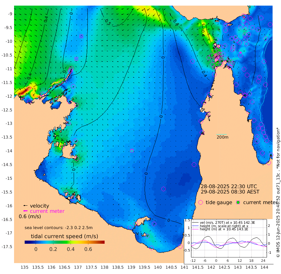 10cm/s -102T +3cm/s rms + 7cm/s -42T. ARA-GOC87 57m 16cm/s -8T +3cm/s rms + 2cm/s -2T. ARA-GOC87 60m 7cm/s -135T +2cm/s rms + 3cm/s 61T. ARA-GOC87 47m -48cm Daru -48cm Bobo Island -21cm Meer Island Barge -26cm Bramble Cay -35cm Unnamed Cay -37cm Pearce Cay -30cm Stephens Island -27cm Merrie England Shoals -40cm Mutacomal Reef -36cm Darnley Island Barge -19cm East Cay -43cm Yorke Island Barge -34cm Rennel Island -47cm Aureed Island -41cm Dungeness Reef -68cm Zagai Island -51cm Yam Island -76cm Dauan Island -84cm Saibai Island -63cm Phipi Reef -74cm Warrior Reef - West -41cm Mabuiag Island Barge -26cm Half Way Island -47cm Coconut Island -33cm Dugong Islet -44cm Poll Island -33cm Kirkcaldie Reef -52cm Suarji Island -53cm Sue Islet 29cm Hawkesbury Island -34cm Alert Patches -35cm Twin Island -2cm Badu Island -42cm St Pauls (Moa Island) 6cm Kubin (Moa Island) -23cm Ince Point -10cm Thursday Island -15cm Nardana Patches -1cm Turtle Head 19cm Round Island 23cm Goods Island 41cm Booby Island 40cm White Rocks Area 32cm Carpentaria -30cm Papou Point 36cm Bampfield Head 45cm Crab Island 39cm Red Wallis Island 19cm Packe Island -35cm Harrington Reef 39cm Herald Camp -15cm Sharp Point 8cm Red Island Point -8cm Possession Island -39cm Alpha Rock -39cm Frederick Point -46cm Wyborn Reef Light -47cm Tetley Island -28cm Triangle Reef -26cm Turtle Head Island -18cm Maclennan Cay -12cm Raine Island -35cm Mcsweeny Reef -33cm Collette Reef -24cm Shadwell Reef -33cm Hannibal Island -22cm Round Point 52cm Vrilya Point -18cm Cape Grenville -18cm Hicks Island -31cm Sir Charles Hardy Island -5cm Harvey Island -17cm Kay Reef -17cm Rocky Island -19cm Chapman Island -17cm Ham Reef -18cm Jubilee Reef -11cm Night Island -16cm Unnamed Reef No. 3 -15cm Morris Island -12cm 1st 3 Mile Opening -14cm Creech Reef -18cm Fife Island -15cm Eden Reef -9cm Stanley Island -8cm Normanby River 32cm Yabooma Island 8cm Hutchison River 18cm Elcho Island 25cm North West Crocodile Island -25cm Cape Wessel 2cm Stevens Island -70cm Guluwuru Island 7cm Hopeful Bay -5cm Auster Point 2cm Two Island Bay -20cm Cadell Strait -174cm Mallison Island -53cm Melville Bay (Gove Harbour) -55cm Truant Island -47cm Cape Arnhem -33cm Cape Grey -20cm Hawk Island 2cm Milner Bay (Groote Eylandt) 3cm Cape Beatrice 17cm West Island 25cm Centre Island 0cm Mornington Island -2cm West Wellesley Islands -13cm Bountiful Island 3cm Albert River Mouth 7cm Sweers Island 14cm Karumba 1cm Nassau River Offshore -3cm Christmas Creek 11cm Archer River 7cm Boyd Point 13cm Weipa (Humbug Point) 35cm Pennefather River 37cm Cullen Point
