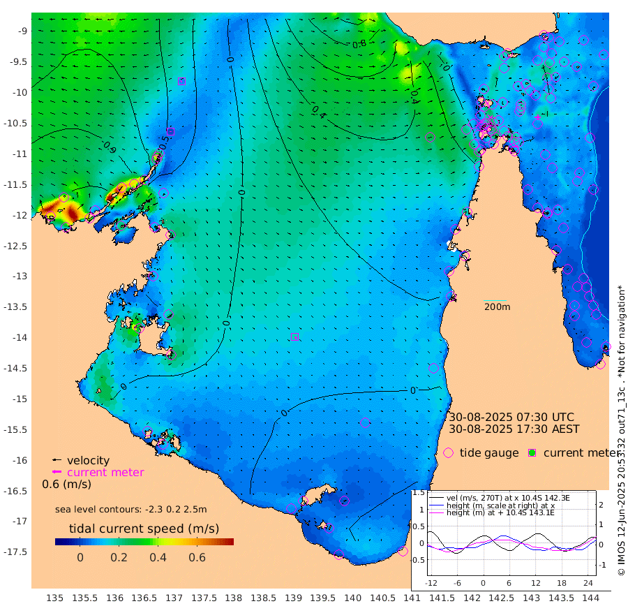 2cm/s -161T +3cm/s rms + 7cm/s -42T. ARA-GOC87 57m 17cm/s 146T +3cm/s rms + 2cm/s -2T. ARA-GOC87 60m 7cm/s -113T +2cm/s rms + 3cm/s 61T. ARA-GOC87 47m 4cm Daru 13cm Bobo Island 29cm Meer Island Barge 23cm Bramble Cay 16cm Unnamed Cay 15cm Pearce Cay 18cm Stephens Island 19cm Merrie England Shoals 8cm Mutacomal Reef 28cm Darnley Island Barge 29cm East Cay 21cm Yorke Island Barge 8cm Rennel Island 19cm Aureed Island 1cm Dungeness Reef -6cm Zagai Island -15cm Yam Island -24cm Dauan Island -3cm Saibai Island -23cm Phipi Reef -11cm Warrior Reef - West -10cm Mabuiag Island Barge 9cm Half Way Island 8cm Coconut Island 6cm Dugong Islet -5cm Poll Island -3cm Kirkcaldie Reef -6cm Suarji Island 8cm Sue Islet -9cm Hawkesbury Island 0cm Alert Patches -4cm Twin Island -13cm Badu Island -11cm St Pauls (Moa Island) -17cm Kubin (Moa Island) -8cm Ince Point -6cm Thursday Island -8cm Nardana Patches -8cm Turtle Head -12cm Round Island -4cm Goods Island 7cm Booby Island -3cm White Rocks Area 45cm Carpentaria -11cm Papou Point 15cm Bampfield Head 2cm Crab Island 4cm Red Wallis Island -6cm Packe Island 8cm Harrington Reef -4cm Herald Camp -2cm Sharp Point -4cm Red Island Point -4cm Possession Island 0cm Alpha Rock 1cm Frederick Point 7cm Wyborn Reef Light 4cm Tetley Island 26cm Triangle Reef 5cm Turtle Head Island 27cm Maclennan Cay 27cm Raine Island 19cm Mcsweeny Reef 25cm Collette Reef 29cm Shadwell Reef 27cm Hannibal Island 24cm Round Point 20cm Vrilya Point 30cm Cape Grenville 23cm Hicks Island 33cm Sir Charles Hardy Island 8cm Harvey Island 37cm Kay Reef 32cm Rocky Island 38cm Chapman Island 38cm Ham Reef 33cm Jubilee Reef 28cm Night Island 39cm Unnamed Reef No. 3 32cm Morris Island 29cm 1st 3 Mile Opening 34cm Creech Reef 28cm Fife Island 39cm Eden Reef 36cm Stanley Island 32cm Normanby River -135cm Yabooma Island -147cm Hutchison River -129cm Elcho Island -133cm North West Crocodile Island -53cm Cape Wessel -108cm Stevens Island -32cm Guluwuru Island -90cm Hopeful Bay -73cm Auster Point -82cm Two Island Bay -108cm Cadell Strait 77cm Mallison Island -40cm Melville Bay (Gove Harbour) -38cm Truant Island -20cm Cape Arnhem -18cm Cape Grey -18cm Hawk Island -20cm Milner Bay (Groote Eylandt) -21cm Cape Beatrice -6cm West Island -2cm Centre Island -20cm Mornington Island -17cm West Wellesley Islands -36cm Bountiful Island -83cm Albert River Mouth -67cm Sweers Island -75cm Karumba -10cm Nassau River Offshore 8cm Christmas Creek 22cm Archer River 26cm Boyd Point 17cm Weipa (Humbug Point) 23cm Pennefather River 20cm Cullen Point