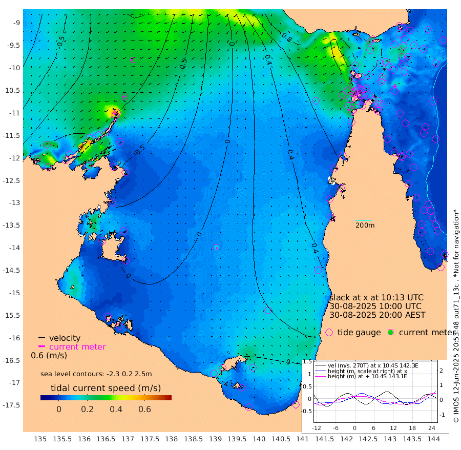 27cm/s -94T +3cm/s rms + 7cm/s -42T. ARA-GOC87 57m 14cm/s 165T +3cm/s rms + 2cm/s -2T. ARA-GOC87 60m 31cm/s -105T +2cm/s rms + 3cm/s 61T. ARA-GOC87 47m 26cm Daru 29cm Bobo Island 37cm Meer Island Barge 36cm Bramble Cay 38cm Unnamed Cay 43cm Pearce Cay 42cm Stephens Island 41cm Merrie England Shoals 34cm Mutacomal Reef 39cm Darnley Island Barge 42cm East Cay 35cm Yorke Island Barge 41cm Rennel Island 40cm Aureed Island 38cm Dungeness Reef 7cm Zagai Island 16cm Yam Island -7cm Dauan Island -6cm Saibai Island 4cm Phipi Reef 7cm Warrior Reef - West 22cm Mabuiag Island Barge 43cm Half Way Island 34cm Coconut Island 47cm Dugong Islet 31cm Poll Island 38cm Kirkcaldie Reef 43cm Suarji Island 28cm Sue Islet 73cm Hawkesbury Island 51cm Alert Patches 43cm Twin Island 52cm Badu Island 35cm St Pauls (Moa Island) 53cm Kubin (Moa Island) 47cm Ince Point 55cm Thursday Island 51cm Nardana Patches 63cm Turtle Head 55cm Round Island 78cm Goods Island 92cm Booby Island 92cm White Rocks Area 93cm Carpentaria 31cm Papou Point 90cm Bampfield Head 67cm Crab Island 86cm Red Wallis Island 68cm Packe Island 51cm Harrington Reef 75cm Herald Camp 4cm Sharp Point 59cm Red Island Point 50cm Possession Island 32cm Alpha Rock 42cm Frederick Point 29cm Wyborn Reef Light 27cm Tetley Island 34cm Triangle Reef 44cm Turtle Head Island 45cm Maclennan Cay 36cm Raine Island 40cm Mcsweeny Reef 37cm Collette Reef 34cm Shadwell Reef 40cm Hannibal Island 41cm Round Point 73cm Vrilya Point 46cm Cape Grenville 40cm Hicks Island 45cm Sir Charles Hardy Island 14cm Harvey Island 47cm Kay Reef 41cm Rocky Island 42cm Chapman Island 41cm Ham Reef 39cm Jubilee Reef 37cm Night Island 44cm Unnamed Reef No. 3 43cm Morris Island 44cm 1st 3 Mile Opening 45cm Creech Reef 37cm Fife Island 47cm Eden Reef 47cm Stanley Island 49cm Normanby River -99cm Yabooma Island -120cm Hutchison River -107cm Elcho Island -102cm North West Crocodile Island -83cm Cape Wessel -116cm Stevens Island -98cm Guluwuru Island -98cm Hopeful Bay -85cm Auster Point -96cm Two Island Bay -133cm Cadell Strait -177cm Mallison Island -88cm Melville Bay (Gove Harbour) -92cm Truant Island -64cm Cape Arnhem -40cm Cape Grey -38cm Hawk Island -25cm Milner Bay (Groote Eylandt) -14cm Cape Beatrice 15cm West Island 16cm Centre Island -2cm Mornington Island 8cm West Wellesley Islands 2cm Bountiful Island -47cm Albert River Mouth -43cm Sweers Island -34cm Karumba 19cm Nassau River Offshore 36cm Christmas Creek 50cm Archer River 56cm Boyd Point 59cm Weipa (Humbug Point) 52cm Pennefather River 65cm Cullen Point