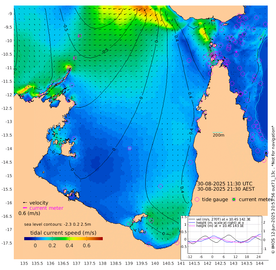 29cm/s -97T +3cm/s rms + 7cm/s -42T. ARA-GOC87 57m 12cm/s -169T +3cm/s rms + 2cm/s -2T. ARA-GOC87 60m 31cm/s -106T +2cm/s rms + 3cm/s 61T. ARA-GOC87 47m 42cm Daru 38cm Bobo Island 29cm Meer Island Barge 34cm Bramble Cay 44cm Unnamed Cay 52cm Pearce Cay 45cm Stephens Island 41cm Merrie England Shoals 45cm Mutacomal Reef 35cm Darnley Island Barge 35cm East Cay 39cm Yorke Island Barge 53cm Rennel Island 45cm Aureed Island 58cm Dungeness Reef 33cm Zagai Island 47cm Yam Island 38cm Dauan Island 23cm Saibai Island 50cm Phipi Reef 39cm Warrior Reef - West 54cm Mabuiag Island Barge 53cm Half Way Island 48cm Coconut Island 61cm Dugong Islet 54cm Poll Island 60cm Kirkcaldie Reef 74cm Suarji Island 45cm Sue Islet 105cm Hawkesbury Island 77cm Alert Patches 69cm Twin Island 91cm Badu Island 67cm St Pauls (Moa Island) 88cm Kubin (Moa Island) 76cm Ince Point 83cm Thursday Island 81cm Nardana Patches 95cm Turtle Head 86cm Round Island 108cm Goods Island 112cm Booby Island 118cm White Rocks Area 79cm Carpentaria 59cm Papou Point 106cm Bampfield Head 83cm Crab Island 105cm Red Wallis Island 94cm Packe Island 64cm Harrington Reef 100cm Herald Camp 11cm Sharp Point 85cm Red Island Point 75cm Possession Island 50cm Alpha Rock 62cm Frederick Point 42cm Wyborn Reef Light 42cm Tetley Island 29cm Triangle Reef 60cm Turtle Head Island 39cm Maclennan Cay 28cm Raine Island 43cm Mcsweeny Reef 36cm Collette Reef 27cm Shadwell Reef 37cm Hannibal Island 39cm Round Point 74cm Vrilya Point 38cm Cape Grenville 37cm Hicks Island 38cm Sir Charles Hardy Island 12cm Harvey Island 33cm Kay Reef 32cm Rocky Island 28cm Chapman Island 26cm Ham Reef 29cm Jubilee Reef 28cm Night Island 29cm Unnamed Reef No. 3 34cm Morris Island 37cm 1st 3 Mile Opening 34cm Creech Reef 28cm Fife Island 32cm Eden Reef 33cm Stanley Island 37cm Normanby River -15cm Yabooma Island -24cm Hutchison River -27cm Elcho Island -20cm North West Crocodile Island -54cm Cape Wessel -53cm Stevens Island -75cm Guluwuru Island -46cm Hopeful Bay -42cm Auster Point -50cm Two Island Bay -65cm Cadell Strait -236cm Mallison Island -60cm Melville Bay (Gove Harbour) -66cm Truant Island -50cm Cape Arnhem -27cm Cape Grey -28cm Hawk Island -21cm Milner Bay (Groote Eylandt) -8cm Cape Beatrice 9cm West Island 5cm Centre Island 7cm Mornington Island 16cm West Wellesley Islands 29cm Bountiful Island -2cm Albert River Mouth -9cm Sweers Island 7cm Karumba 30cm Nassau River Offshore 41cm Christmas Creek 50cm Archer River 55cm Boyd Point 65cm Weipa (Humbug Point) 48cm Pennefather River 65cm Cullen Point