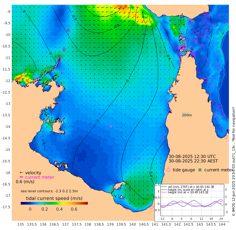 24cm/s -98T +3cm/s rms + 7cm/s -42T. ARA-GOC87 57m 12cm/s -150T +3cm/s rms + 2cm/s -2T. ARA-GOC87 60m 25cm/s -106T +2cm/s rms + 3cm/s 61T. ARA-GOC87 47m 47cm Daru 39cm Bobo Island 20cm Meer Island Barge 27cm Bramble Cay 41cm Unnamed Cay 48cm Pearce Cay 39cm Stephens Island 35cm Merrie England Shoals 45cm Mutacomal Reef 28cm Darnley Island Barge 24cm East Cay 36cm Yorke Island Barge 52cm Rennel Island 42cm Aureed Island 63cm Dungeness Reef 49cm Zagai Island 62cm Yam Island 70cm Dauan Island 48cm Saibai Island 79cm Phipi Reef 60cm Warrior Reef - West 69cm Mabuiag Island Barge 49cm Half Way Island 50cm Coconut Island 59cm Dugong Islet 62cm Poll Island 65cm Kirkcaldie Reef 83cm Suarji Island 51cm Sue Islet 105cm Hawkesbury Island 82cm Alert Patches 74cm Twin Island 100cm Badu Island 78cm St Pauls (Moa Island) 94cm Kubin (Moa Island) 82cm Ince Point 86cm Thursday Island 86cm Nardana Patches 98cm Turtle Head 88cm Round Island 105cm Goods Island 101cm Booby Island 108cm White Rocks Area 51cm Carpentaria 68cm Papou Point 93cm Bampfield Head 74cm Crab Island 93cm Red Wallis Island 91cm Packe Island 61cm Harrington Reef 95cm Herald Camp 15cm Sharp Point 85cm Red Island Point 78cm Possession Island 54cm Alpha Rock 66cm Frederick Point 45cm Wyborn Reef Light 47cm Tetley Island 22cm Triangle Reef 60cm Turtle Head Island 29cm Maclennan Cay 18cm Raine Island 39cm Mcsweeny Reef 30cm Collette Reef 19cm Shadwell Reef 30cm Hannibal Island 30cm Round Point 56cm Vrilya Point 26cm Cape Grenville 29cm Hicks Island 28cm Sir Charles Hardy Island 9cm Harvey Island 19cm Kay Reef 21cm Rocky Island 15cm Chapman Island 13cm Ham Reef 18cm Jubilee Reef 17cm Night Island 14cm Unnamed Reef No. 3 22cm Morris Island 26cm 1st 3 Mile Opening 21cm Creech Reef 17cm Fife Island 17cm Eden Reef 18cm Stanley Island 22cm Normanby River 38cm Yabooma Island 41cm Hutchison River 27cm Elcho Island 33cm North West Crocodile Island -24cm Cape Wessel -4cm Stevens Island -40cm Guluwuru Island -6cm Hopeful Bay -6cm Auster Point -12cm Two Island Bay -7cm Cadell Strait -212cm Mallison Island -26cm Melville Bay (Gove Harbour) -32cm Truant Island -28cm Cape Arnhem -10cm Cape Grey -14cm Hawk Island -15cm Milner Bay (Groote Eylandt) -3cm Cape Beatrice 1cm West Island -6cm Centre Island 13cm Mornington Island 19cm West Wellesley Islands 45cm Bountiful Island 30cm Albert River Mouth 18cm Sweers Island 36cm Karumba 33cm Nassau River Offshore 39cm Christmas Creek 41cm Archer River 44cm Boyd Point 58cm Weipa (Humbug Point) 33cm Pennefather River 50cm Cullen Point