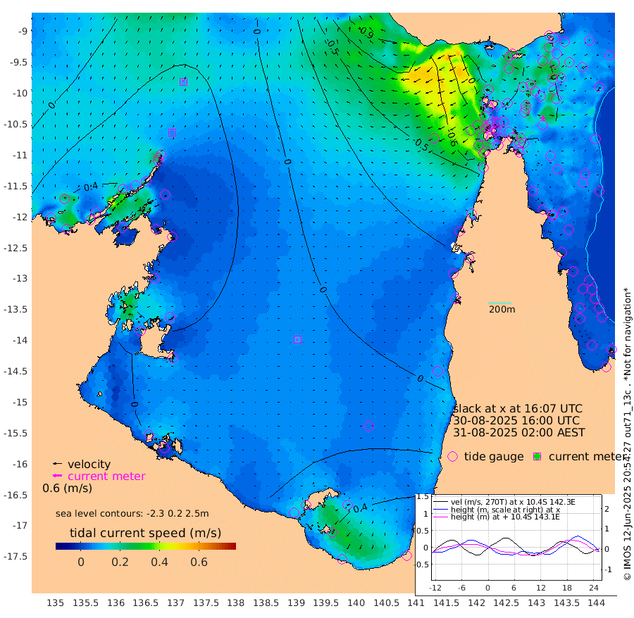 7cm/s 2T +3cm/s rms + 7cm/s -42T. ARA-GOC87 57m 10cm/s -119T +3cm/s rms + 2cm/s -2T. ARA-GOC87 60m 10cm/s 5T +2cm/s rms + 3cm/s 61T. ARA-GOC87 47m 10cm Daru 1cm Bobo Island -15cm Meer Island Barge -12cm Bramble Cay -6cm Unnamed Cay -11cm Pearce Cay -13cm Stephens Island -15cm Merrie England Shoals 0cm Mutacomal Reef -10cm Darnley Island Barge -19cm East Cay -2cm Yorke Island Barge -5cm Rennel Island -5cm Aureed Island 6cm Dungeness Reef 37cm Zagai Island 31cm Yam Island 71cm Dauan Island 66cm Saibai Island 60cm Phipi Reef 49cm Warrior Reef - West 27cm Mabuiag Island Barge -13cm Half Way Island 1cm Coconut Island -6cm Dugong Islet 9cm Poll Island 4cm Kirkcaldie Reef 14cm Suarji Island 15cm Sue Islet -30cm Hawkesbury Island -1cm Alert Patches 1cm Twin Island -5cm Badu Island 13cm St Pauls (Moa Island) -14cm Kubin (Moa Island) -1cm Ince Point -12cm Thursday Island -6cm Nardana Patches -13cm Turtle Head -24cm Round Island -32cm Goods Island -54cm Booby Island -51cm White Rocks Area -73cm Carpentaria 7cm Papou Point -62cm Bampfield Head -47cm Crab Island -52cm Red Wallis Island -32cm Packe Island -13cm Harrington Reef -39cm Herald Camp 9cm Sharp Point -17cm Red Island Point -16cm Possession Island 5cm Alpha Rock -2cm Frederick Point 1cm Wyborn Reef Light 3cm Tetley Island -11cm Triangle Reef -18cm Turtle Head Island -17cm Maclennan Cay -17cm Raine Island -9cm Mcsweeny Reef -10cm Collette Reef -11cm Shadwell Reef -13cm Hannibal Island -20cm Round Point -63cm Vrilya Point -23cm Cape Grenville -17cm Hicks Island -10cm Sir Charles Hardy Island -6cm Harvey Island -24cm Kay Reef -17cm Rocky Island -21cm Chapman Island -19cm Ham Reef -16cm Jubilee Reef -21cm Night Island -23cm Unnamed Reef No. 3 -20cm Morris Island -20cm 1st 3 Mile Opening -22cm Creech Reef -19cm Fife Island -24cm Eden Reef -26cm Stanley Island -28cm Normanby River 44cm Yabooma Island 68cm Hutchison River 53cm Elcho Island 53cm North West Crocodile Island 32cm Cape Wessel 48cm Stevens Island 64cm Guluwuru Island 37cm Hopeful Bay 30cm Auster Point 33cm Two Island Bay 69cm Cadell Strait 92cm Mallison Island 53cm Melville Bay (Gove Harbour) 49cm Truant Island 38cm Cape Arnhem 34cm Cape Grey 28cm Hawk Island 15cm Milner Bay (Groote Eylandt) 20cm Cape Beatrice 3cm West Island -5cm Centre Island 43cm Mornington Island 41cm West Wellesley Islands 71cm Bountiful Island 100cm Albert River Mouth 81cm Sweers Island 86cm Karumba 31cm Nassau River Offshore 15cm Christmas Creek -14cm Archer River -21cm Boyd Point -17cm Weipa (Humbug Point) -46cm Pennefather River -47cm Cullen Point