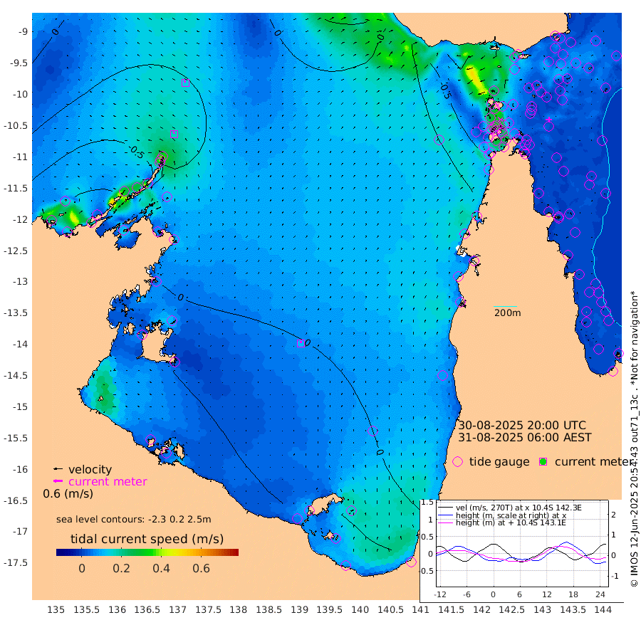 17cm/s -25T +3cm/s rms + 7cm/s -42T. ARA-GOC87 57m 12cm/s -2T +3cm/s rms + 2cm/s -2T. ARA-GOC87 60m 14cm/s -22T +2cm/s rms + 3cm/s 61T. ARA-GOC87 47m -49cm Daru -41cm Bobo Island -21cm Meer Island Barge -25cm Bramble Cay -37cm Unnamed Cay -47cm Pearce Cay -34cm Stephens Island -29cm Merrie England Shoals -39cm Mutacomal Reef -29cm Darnley Island Barge -20cm East Cay -37cm Yorke Island Barge -44cm Rennel Island -39cm Aureed Island -60cm Dungeness Reef -60cm Zagai Island -61cm Yam Island -89cm Dauan Island -67cm Saibai Island -98cm Phipi Reef -68cm Warrior Reef - West -82cm Mabuiag Island Barge -40cm Half Way Island -52cm Coconut Island -46cm Dugong Islet -60cm Poll Island -58cm Kirkcaldie Reef -78cm Suarji Island -54cm Sue Islet -116cm Hawkesbury Island -83cm Alert Patches -74cm Twin Island -119cm Badu Island -82cm St Pauls (Moa Island) -102cm Kubin (Moa Island) -84cm Ince Point -89cm Thursday Island -89cm Nardana Patches -101cm Turtle Head -104cm Round Island -110cm Goods Island -106cm Booby Island -102cm White Rocks Area -55cm Carpentaria -70cm Papou Point -115cm Bampfield Head -83cm Crab Island -91cm Red Wallis Island -94cm Packe Island -51cm Harrington Reef -102cm Herald Camp -14cm Sharp Point -85cm Red Island Point -88cm Possession Island -52cm Alpha Rock -64cm Frederick Point -50cm Wyborn Reef Light -52cm Tetley Island -25cm Triangle Reef -69cm Turtle Head Island -23cm Maclennan Cay -19cm Raine Island -36cm Mcsweeny Reef -29cm Collette Reef -22cm Shadwell Reef -29cm Hannibal Island -28cm Round Point -66cm Vrilya Point -19cm Cape Grenville -26cm Hicks Island -21cm Sir Charles Hardy Island -7cm Harvey Island -13cm Kay Reef -18cm Rocky Island -14cm Chapman Island -11cm Ham Reef -16cm Jubilee Reef -15cm Night Island -10cm Unnamed Reef No. 3 -18cm Morris Island -26cm 1st 3 Mile Opening -17cm Creech Reef -14cm Fife Island -14cm Eden Reef -13cm Stanley Island -11cm Normanby River -90cm Yabooma Island -109cm Hutchison River -82cm Elcho Island -79cm North West Crocodile Island -32cm Cape Wessel -64cm Stevens Island -32cm Guluwuru Island -55cm Hopeful Bay -55cm Auster Point -51cm Two Island Bay -79cm Cadell Strait 66cm Mallison Island -39cm Melville Bay (Gove Harbour) -40cm Truant Island -21cm Cape Arnhem -12cm Cape Grey 1cm Hawk Island 28cm Milner Bay (Groote Eylandt) 32cm Cape Beatrice 58cm West Island 61cm Centre Island 47cm Mornington Island 52cm West Wellesley Islands 30cm Bountiful Island 54cm Albert River Mouth 49cm Sweers Island 42cm Karumba 18cm Nassau River Offshore -6cm Christmas Creek -33cm Archer River -42cm Boyd Point -52cm Weipa (Humbug Point) -46cm Pennefather River -56cm Cullen Point