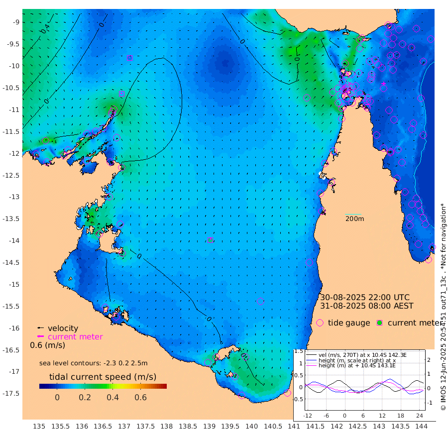 11cm/s -48T +3cm/s rms + 7cm/s -42T. ARA-GOC87 57m 20cm/s 2T +3cm/s rms + 2cm/s -2T. ARA-GOC87 60m 5cm/s -53T +2cm/s rms + 3cm/s 61T. ARA-GOC87 47m -42cm Daru -34cm Bobo Island -21cm Meer Island Barge -22cm Bramble Cay -30cm Unnamed Cay -30cm Pearce Cay -23cm Stephens Island -20cm Merrie England Shoals -31cm Mutacomal Reef -28cm Darnley Island Barge -16cm East Cay -35cm Yorke Island Barge -29cm Rennel Island -31cm Aureed Island -43cm Dungeness Reef -63cm Zagai Island -53cm Yam Island -100cm Dauan Island -93cm Saibai Island -99cm Phipi Reef -74cm Warrior Reef - West -69cm Mabuiag Island Barge -21cm Half Way Island -38cm Coconut Island -28cm Dugong Islet -42cm Poll Island -38cm Kirkcaldie Reef -54cm Suarji Island -50cm Sue Islet -55cm Hawkesbury Island -53cm Alert Patches -45cm Twin Island -72cm Badu Island -55cm St Pauls (Moa Island) -51cm Kubin (Moa Island) -50cm Ince Point -47cm Thursday Island -50cm Nardana Patches -54cm Turtle Head -49cm Round Island -50cm Goods Island -38cm Booby Island -29cm White Rocks Area -8cm Carpentaria -44cm Papou Point -45cm Bampfield Head -25cm Crab Island -26cm Red Wallis Island -38cm Packe Island -25cm Harrington Reef -42cm Herald Camp -13cm Sharp Point -41cm Red Island Point -45cm Possession Island -37cm Alpha Rock -40cm Frederick Point -37cm Wyborn Reef Light -39cm Tetley Island -25cm Triangle Reef -36cm Turtle Head Island -17cm Maclennan Cay -17cm Raine Island -28cm Mcsweeny Reef -27cm Collette Reef -25cm Shadwell Reef -26cm Hannibal Island -19cm Round Point -11cm Vrilya Point -13cm Cape Grenville -19cm Hicks Island -26cm Sir Charles Hardy Island -4cm Harvey Island -13cm Kay Reef -19cm Rocky Island -17cm Chapman Island -16cm Ham Reef -19cm Jubilee Reef -11cm Night Island -12cm Unnamed Reef No. 3 -16cm Morris Island -21cm 1st 3 Mile Opening -16cm Creech Reef -12cm Fife Island -16cm Eden Reef -11cm Stanley Island -6cm Normanby River -32cm Yabooma Island -57cm Hutchison River -35cm Elcho Island -29cm North West Crocodile Island -24cm Cape Wessel -33cm Stevens Island -62cm Guluwuru Island -28cm Hopeful Bay -29cm Auster Point -25cm Two Island Bay -60cm Cadell Strait -92cm Mallison Island -53cm Melville Bay (Gove Harbour) -53cm Truant Island -38cm Cape Arnhem -26cm Cape Grey -12cm Hawk Island 22cm Milner Bay (Groote Eylandt) 24cm Cape Beatrice 51cm West Island 56cm Centre Island 19cm Mornington Island 24cm West Wellesley Islands -3cm Bountiful Island 17cm Albert River Mouth 18cm Sweers Island 13cm Karumba -1cm Nassau River Offshore -18cm Christmas Creek -25cm Archer River -28cm Boyd Point -33cm Weipa (Humbug Point) -13cm Pennefather River -16cm Cullen Point