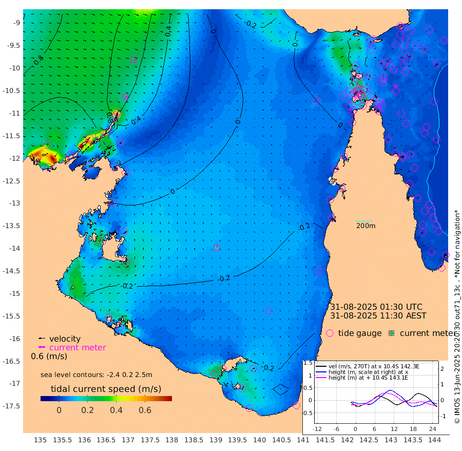 23cm/s 118T +3cm/s rms + 7cm/s -42T. ARA-GOC87 57m 18cm/s 1T +3cm/s rms + 2cm/s -2T. ARA-GOC87 60m 26cm/s 110T +2cm/s rms + 3cm/s 61T. ARA-GOC87 47m -12cm Daru -15cm Bobo Island -25cm Meer Island Barge -24cm Bramble Cay -21cm Unnamed Cay -13cm Pearce Cay -18cm Stephens Island -23cm Merrie England Shoals -18cm Mutacomal Reef -27cm Darnley Island Barge -27cm East Cay -22cm Yorke Island Barge -14cm Rennel Island -20cm Aureed Island -6cm Dungeness Reef -4cm Zagai Island 0cm Yam Island 1cm Dauan Island -18cm Saibai Island 5cm Phipi Reef -9cm Warrior Reef - West 9cm Mabuiag Island Barge -10cm Half Way Island -8cm Coconut Island -12cm Dugong Islet 0cm Poll Island -3cm Kirkcaldie Reef 2cm Suarji Island -14cm Sue Islet 35cm Hawkesbury Island 6cm Alert Patches 7cm Twin Island 33cm Badu Island 13cm St Pauls (Moa Island) 34cm Kubin (Moa Island) 15cm Ince Point 20cm Thursday Island 19cm Nardana Patches 22cm Turtle Head 37cm Round Island 31cm Goods Island 33cm Booby Island 35cm White Rocks Area 7cm Carpentaria 14cm Papou Point 39cm Bampfield Head 34cm Crab Island 29cm Red Wallis Island 29cm Packe Island -7cm Harrington Reef 32cm Herald Camp -2cm Sharp Point 18cm Red Island Point 23cm Possession Island -4cm Alpha Rock 1cm Frederick Point -8cm Wyborn Reef Light -5cm Tetley Island -23cm Triangle Reef 10cm Turtle Head Island -25cm Maclennan Cay -22cm Raine Island -20cm Mcsweeny Reef -26cm Collette Reef -27cm Shadwell Reef -27cm Hannibal Island -22cm Round Point 26cm Vrilya Point -29cm Cape Grenville -21cm Hicks Island -38cm Sir Charles Hardy Island -7cm Harvey Island -35cm Kay Reef -30cm Rocky Island -34cm Chapman Island -34cm Ham Reef -29cm Jubilee Reef -22cm Night Island -34cm Unnamed Reef No. 3 -28cm Morris Island -22cm 1st 3 Mile Opening -29cm Creech Reef -26cm Fife Island -35cm Eden Reef -32cm Stanley Island -31cm Normanby River 140cm Yabooma Island 149cm Hutchison River 131cm Elcho Island 129cm North West Crocodile Island 69cm Cape Wessel 118cm Stevens Island 39cm Guluwuru Island 100cm Hopeful Bay 92cm Auster Point 100cm Two Island Bay 119cm Cadell Strait -66cm Mallison Island 49cm Melville Bay (Gove Harbour) 54cm Truant Island 28cm Cape Arnhem 13cm Cape Grey 9cm Hawk Island 5cm Milner Bay (Groote Eylandt) -8cm Cape Beatrice -29cm West Island -27cm Centre Island -46cm Mornington Island -53cm West Wellesley Islands -54cm Bountiful Island -32cm Albert River Mouth -25cm Sweers Island -30cm Karumba -45cm Nassau River Offshore -43cm Christmas Creek -22cm Archer River -15cm Boyd Point -11cm Weipa (Humbug Point) 12cm Pennefather River 12cm Cullen Point