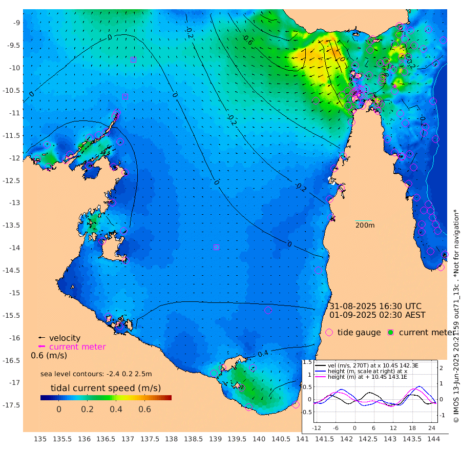 9cm/s -23T +3cm/s rms + 7cm/s -42T. ARA-GOC87 57m 11cm/s -108T +3cm/s rms + 2cm/s -2T. ARA-GOC87 60m 11cm/s -10T +2cm/s rms + 3cm/s 61T. ARA-GOC87 47m -14cm Daru -22cm Bobo Island -24cm Meer Island Barge -28cm Bramble Cay -27cm Unnamed Cay -33cm Pearce Cay -31cm Stephens Island -36cm Merrie England Shoals -26cm Mutacomal Reef -25cm Darnley Island Barge -30cm East Cay -20cm Yorke Island Barge -27cm Rennel Island -25cm Aureed Island -15cm Dungeness Reef 15cm Zagai Island 8cm Yam Island 53cm Dauan Island 50cm Saibai Island 47cm Phipi Reef 26cm Warrior Reef - West 11cm Mabuiag Island Barge -33cm Half Way Island -24cm Coconut Island -28cm Dugong Islet -15cm Poll Island -16cm Kirkcaldie Reef -10cm Suarji Island -5cm Sue Islet -41cm Hawkesbury Island -22cm Alert Patches -22cm Twin Island -18cm Badu Island -10cm St Pauls (Moa Island) -29cm Kubin (Moa Island) -20cm Ince Point -28cm Thursday Island -23cm Nardana Patches -28cm Turtle Head -37cm Round Island -42cm Goods Island -59cm Booby Island -62cm White Rocks Area -76cm Carpentaria -12cm Papou Point -72cm Bampfield Head -49cm Crab Island -61cm Red Wallis Island -47cm Packe Island -39cm Harrington Reef -46cm Herald Camp 4cm Sharp Point -26cm Red Island Point -31cm Possession Island -19cm Alpha Rock -26cm Frederick Point -28cm Wyborn Reef Light -25cm Tetley Island -23cm Triangle Reef -42cm Turtle Head Island -27cm Maclennan Cay -22cm Raine Island -29cm Mcsweeny Reef -27cm Collette Reef -21cm Shadwell Reef -31cm Hannibal Island -37cm Round Point -61cm Vrilya Point -36cm Cape Grenville -28cm Hicks Island -22cm Sir Charles Hardy Island -10cm Harvey Island -35cm Kay Reef -24cm Rocky Island -28cm Chapman Island -25cm Ham Reef -23cm Jubilee Reef -28cm Night Island -30cm Unnamed Reef No. 3 -28cm Morris Island -25cm 1st 3 Mile Opening -28cm Creech Reef -29cm Fife Island -30cm Eden Reef -32cm Stanley Island -36cm Normanby River 24cm Yabooma Island 43cm Hutchison River 33cm Elcho Island 35cm North West Crocodile Island 10cm Cape Wessel 23cm Stevens Island 44cm Guluwuru Island 19cm Hopeful Bay 11cm Auster Point 15cm Two Island Bay 47cm Cadell Strait 58cm Mallison Island 34cm Melville Bay (Gove Harbour) 28cm Truant Island 25cm Cape Arnhem 30cm Cape Grey 25cm Hawk Island 20cm Milner Bay (Groote Eylandt) 26cm Cape Beatrice 16cm West Island 10cm Centre Island 60cm Mornington Island 56cm West Wellesley Islands 91cm Bountiful Island 123cm Albert River Mouth 108cm Sweers Island 112cm Karumba 44cm Nassau River Offshore 23cm Christmas Creek -8cm Archer River -19cm Boyd Point -15cm Weipa (Humbug Point) -41cm Pennefather River -47cm Cullen Point