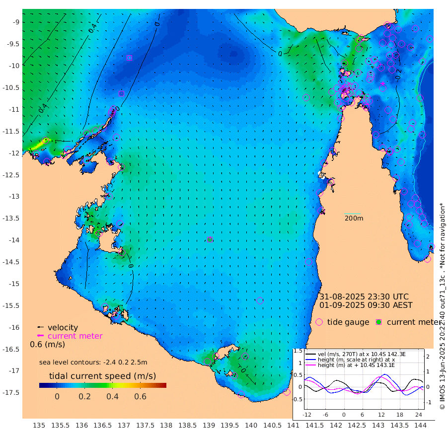 3cm/s 29T +3cm/s rms + 7cm/s -42T. ARA-GOC87 57m 26cm/s 3T +3cm/s rms + 2cm/s -2T. ARA-GOC87 60m 7cm/s 99T +2cm/s rms + 3cm/s 61T. ARA-GOC87 47m -22cm Daru -16cm Bobo Island -26cm Meer Island Barge -21cm Bramble Cay -21cm Unnamed Cay -13cm Pearce Cay -15cm Stephens Island -15cm Merrie England Shoals -15cm Mutacomal Reef -26cm Darnley Island Barge -21cm East Cay -25cm Yorke Island Barge -13cm Rennel Island -16cm Aureed Island -20cm Dungeness Reef -33cm Zagai Island -25cm Yam Island -67cm Dauan Island -68cm Saibai Island -65cm Phipi Reef -44cm Warrior Reef - West -38cm Mabuiag Island Barge -7cm Half Way Island -14cm Coconut Island -11cm Dugong Islet -13cm Poll Island -14cm Kirkcaldie Reef -18cm Suarji Island -29cm Sue Islet -30cm Hawkesbury Island -21cm Alert Patches -12cm Twin Island -37cm Badu Island -18cm St Pauls (Moa Island) -21cm Kubin (Moa Island) -18cm Ince Point -17cm Thursday Island -19cm Nardana Patches -26cm Turtle Head -23cm Round Island -25cm Goods Island -19cm Booby Island -4cm White Rocks Area -6cm Carpentaria -11cm Papou Point -24cm Bampfield Head -10cm Crab Island -8cm Red Wallis Island -14cm Packe Island -1cm Harrington Reef -28cm Herald Camp -6cm Sharp Point -17cm Red Island Point -16cm Possession Island -13cm Alpha Rock -11cm Frederick Point -15cm Wyborn Reef Light -15cm Tetley Island -25cm Triangle Reef -9cm Turtle Head Island -21cm Maclennan Cay -25cm Raine Island -18cm Mcsweeny Reef -24cm Collette Reef -30cm Shadwell Reef -24cm Hannibal Island -17cm Round Point -5cm Vrilya Point -18cm Cape Grenville -21cm Hicks Island -34cm Sir Charles Hardy Island -5cm Harvey Island -23cm Kay Reef -28cm Rocky Island -28cm Chapman Island -29cm Ham Reef -28cm Jubilee Reef -19cm Night Island -24cm Unnamed Reef No. 3 -25cm Morris Island -28cm 1st 3 Mile Opening -25cm Creech Reef -18cm Fife Island -30cm Eden Reef -24cm Stanley Island -17cm Normanby River 33cm Yabooma Island 19cm Hutchison River 27cm Elcho Island 31cm North West Crocodile Island 14cm Cape Wessel 24cm Stevens Island -32cm Guluwuru Island 17cm Hopeful Bay 17cm Auster Point 18cm Two Island Bay 1cm Cadell Strait -116cm Mallison Island -20cm Melville Bay (Gove Harbour) -17cm Truant Island -17cm Cape Arnhem -11cm Cape Grey -4cm Hawk Island 25cm Milner Bay (Groote Eylandt) 21cm Cape Beatrice 37cm West Island 39cm Centre Island -2cm Mornington Island 2cm West Wellesley Islands -19cm Bountiful Island 4cm Albert River Mouth 8cm Sweers Island -1cm Karumba -20cm Nassau River Offshore -36cm Christmas Creek -35cm Archer River -34cm Boyd Point -37cm Weipa (Humbug Point) -13cm Pennefather River -15cm Cullen Point
