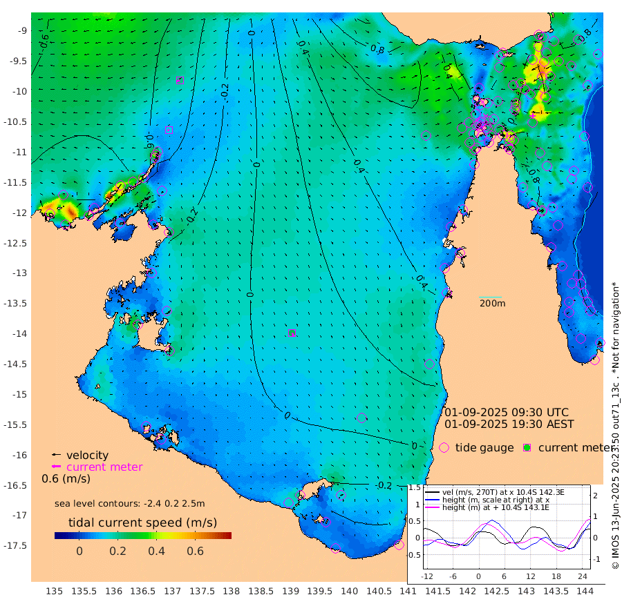 14cm/s -107T +3cm/s rms + 7cm/s -42T. ARA-GOC87 57m 25cm/s 162T +3cm/s rms + 2cm/s -2T. ARA-GOC87 60m 21cm/s -108T +2cm/s rms + 3cm/s 61T. ARA-GOC87 47m 65cm Daru 68cm Bobo Island 66cm Meer Island Barge 78cm Bramble Cay 82cm Unnamed Cay 78cm Pearce Cay 78cm Stephens Island 90cm Merrie England Shoals 81cm Mutacomal Reef 76cm Darnley Island Barge 75cm East Cay 71cm Yorke Island Barge 75cm Rennel Island 72cm Aureed Island 61cm Dungeness Reef 28cm Zagai Island 33cm Yam Island 1cm Dauan Island 10cm Saibai Island 10cm Phipi Reef 28cm Warrior Reef - West 25cm Mabuiag Island Barge 73cm Half Way Island 67cm Coconut Island 73cm Dugong Islet 54cm Poll Island 57cm Kirkcaldie Reef 50cm Suarji Island 54cm Sue Islet 67cm Hawkesbury Island 62cm Alert Patches 56cm Twin Island 44cm Badu Island 42cm St Pauls (Moa Island) 49cm Kubin (Moa Island) 50cm Ince Point 53cm Thursday Island 50cm Nardana Patches 57cm Turtle Head 55cm Round Island 64cm Goods Island 71cm Booby Island 71cm White Rocks Area 79cm Carpentaria 35cm Papou Point 85cm Bampfield Head 50cm Crab Island 72cm Red Wallis Island 68cm Packe Island 79cm Harrington Reef 68cm Herald Camp 7cm Sharp Point 49cm Red Island Point 54cm Possession Island 58cm Alpha Rock 65cm Frederick Point 76cm Wyborn Reef Light 72cm Tetley Island 66cm Triangle Reef 76cm Turtle Head Island 69cm Maclennan Cay 60cm Raine Island 79cm Mcsweeny Reef 80cm Collette Reef 69cm Shadwell Reef 86cm Hannibal Island 87cm Round Point 59cm Vrilya Point 86cm Cape Grenville 71cm Hicks Island 81cm Sir Charles Hardy Island 23cm Harvey Island 87cm Kay Reef 71cm Rocky Island 76cm Chapman Island 71cm Ham Reef 67cm Jubilee Reef 64cm Night Island 75cm Unnamed Reef No. 3 73cm Morris Island 64cm 1st 3 Mile Opening 71cm Creech Reef 70cm Fife Island 81cm Eden Reef 79cm Stanley Island 81cm Normanby River -103cm Yabooma Island -119cm Hutchison River -109cm Elcho Island -110cm North West Crocodile Island -55cm Cape Wessel -91cm Stevens Island -54cm Guluwuru Island -74cm Hopeful Bay -67cm Auster Point -78cm Two Island Bay -108cm Cadell Strait 20cm Mallison Island -52cm Melville Bay (Gove Harbour) -51cm Truant Island -36cm Cape Arnhem -35cm Cape Grey -29cm Hawk Island -42cm Milner Bay (Groote Eylandt) -35cm Cape Beatrice -24cm West Island -22cm Centre Island -30cm Mornington Island -23cm West Wellesley Islands -44cm Bountiful Island -104cm Albert River Mouth -97cm Sweers Island -88cm Karumba 1cm Nassau River Offshore 31cm Christmas Creek 50cm Archer River 54cm Boyd Point 52cm Weipa (Humbug Point) 49cm Pennefather River 58cm Cullen Point