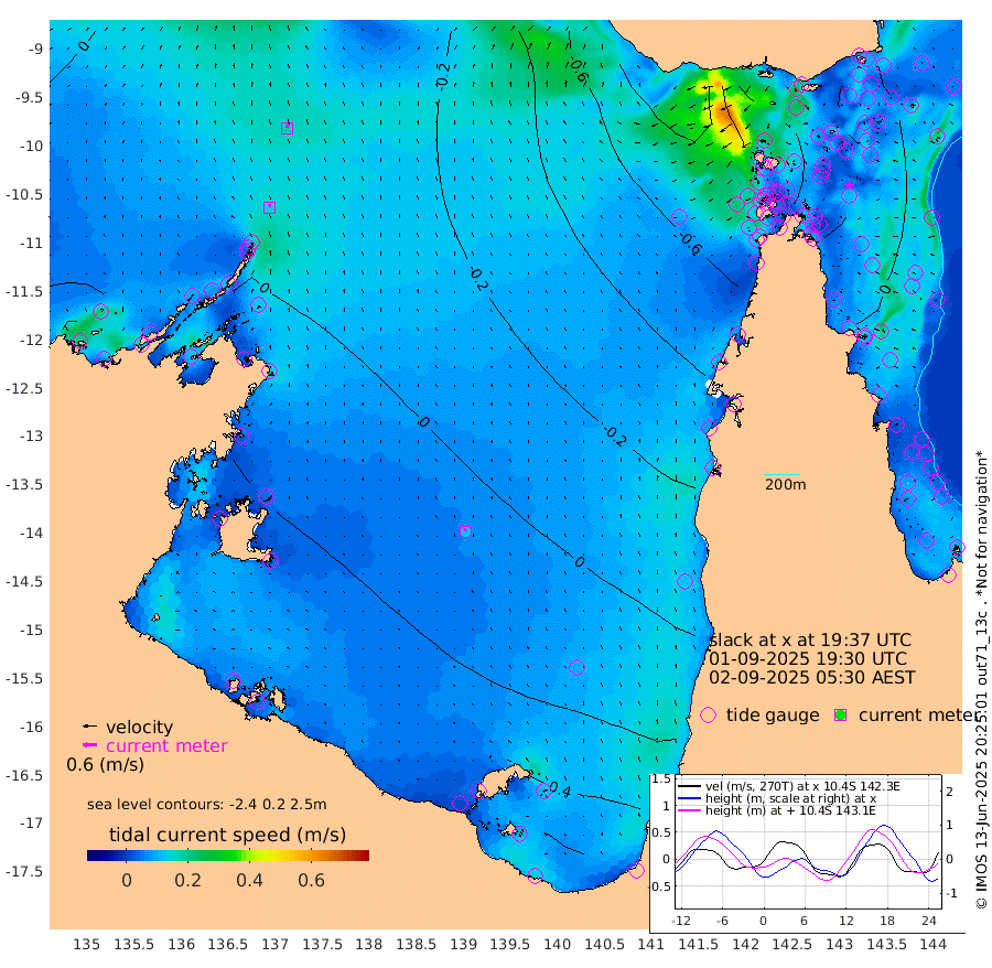 16cm/s 1T +3cm/s rms + 7cm/s -42T. ARA-GOC87 57m 13cm/s -28T +3cm/s rms + 2cm/s -2T. ARA-GOC87 60m 18cm/s 11T +2cm/s rms + 3cm/s 61T. ARA-GOC87 47m -40cm Daru -36cm Bobo Island -8cm Meer Island Barge -10cm Bramble Cay -24cm Unnamed Cay -42cm Pearce Cay -27cm Stephens Island -17cm Merrie England Shoals -33cm Mutacomal Reef -17cm Darnley Island Barge -8cm East Cay -28cm Yorke Island Barge -40cm Rennel Island -40cm Aureed Island -57cm Dungeness Reef -61cm Zagai Island -66cm Yam Island -82cm Dauan Island -60cm Saibai Island -79cm Phipi Reef -66cm Warrior Reef - West -87cm Mabuiag Island Barge -40cm Half Way Island -54cm Coconut Island -49cm Dugong Islet -67cm Poll Island -61cm Kirkcaldie Reef -92cm Suarji Island -53cm Sue Islet -133cm Hawkesbury Island -95cm Alert Patches -91cm Twin Island -125cm Badu Island -98cm St Pauls (Moa Island) -124cm Kubin (Moa Island) -102cm Ince Point -110cm Thursday Island -108cm Nardana Patches -118cm Turtle Head -124cm Round Island -130cm Goods Island -137cm Booby Island -134cm White Rocks Area -107cm Carpentaria -84cm Papou Point -150cm Bampfield Head -109cm Crab Island -131cm Red Wallis Island -128cm Packe Island -59cm Harrington Reef -134cm Herald Camp -18cm Sharp Point -96cm Red Island Point -104cm Possession Island -67cm Alpha Rock -76cm Frederick Point -48cm Wyborn Reef Light -54cm Tetley Island -20cm Triangle Reef -66cm Turtle Head Island -17cm Maclennan Cay -5cm Raine Island -29cm Mcsweeny Reef -17cm Collette Reef -7cm Shadwell Reef -14cm Hannibal Island -17cm Round Point -97cm Vrilya Point -10cm Cape Grenville -14cm Hicks Island -10cm Sir Charles Hardy Island -5cm Harvey Island 1cm Kay Reef -4cm Rocky Island -2cm Chapman Island 0cm Ham Reef -2cm Jubilee Reef -8cm Night Island -1cm Unnamed Reef No. 3 -4cm Morris Island -11cm 1st 3 Mile Opening -6cm Creech Reef -7cm Fife Island 3cm Eden Reef 1cm Stanley Island 2cm Normanby River -36cm Yabooma Island -38cm Hutchison River -25cm Elcho Island -24cm North West Crocodile Island -7cm Cape Wessel -13cm Stevens Island 16cm Guluwuru Island -8cm Hopeful Bay -18cm Auster Point -18cm Two Island Bay -13cm Cadell Strait 132cm Mallison Island 4cm Melville Bay (Gove Harbour) -2cm Truant Island 6cm Cape Arnhem 20cm Cape Grey 24cm Hawk Island 42cm Milner Bay (Groote Eylandt) 45cm Cape Beatrice 57cm West Island 57cm Centre Island 75cm Mornington Island 78cm West Wellesley Islands 87cm Bountiful Island 121cm Albert River Mouth 121cm Sweers Island 106cm Karumba 40cm Nassau River Offshore 6cm Christmas Creek -29cm Archer River -52cm Boyd Point -57cm Weipa (Humbug Point) -60cm Pennefather River -87cm Cullen Point