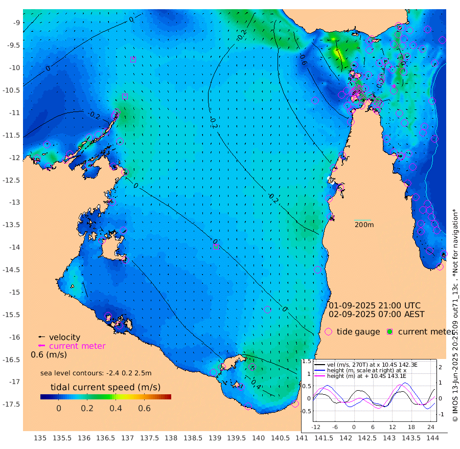 16cm/s 0T +3cm/s rms + 7cm/s -42T. ARA-GOC87 57m 20cm/s -6T +3cm/s rms + 2cm/s -2T. ARA-GOC87 60m 15cm/s 16T +2cm/s rms + 3cm/s 61T. ARA-GOC87 47m -23cm Daru -15cm Bobo Island -3cm Meer Island Barge 5cm Bramble Cay -5cm Unnamed Cay -18cm Pearce Cay -7cm Stephens Island 8cm Merrie England Shoals -7cm Mutacomal Reef -5cm Darnley Island Barge 3cm East Cay -15cm Yorke Island Barge -17cm Rennel Island -19cm Aureed Island -41cm Dungeness Reef -58cm Zagai Island -59cm Yam Island -109cm Dauan Island -84cm Saibai Island -103cm Phipi Reef -70cm Warrior Reef - West -91cm Mabuiag Island Barge -16cm Half Way Island -30cm Coconut Island -25cm Dugong Islet -48cm Poll Island -42cm Kirkcaldie Reef -74cm Suarji Island -42cm Sue Islet -129cm Hawkesbury Island -77cm Alert Patches -70cm Twin Island -127cm Badu Island -84cm St Pauls (Moa Island) -117cm Kubin (Moa Island) -88cm Ince Point -97cm Thursday Island -96cm Nardana Patches -111cm Turtle Head -118cm Round Island -124cm Goods Island -128cm Booby Island -115cm White Rocks Area -89cm Carpentaria -69cm Papou Point -138cm Bampfield Head -102cm Crab Island -115cm Red Wallis Island -113cm Packe Island -25cm Harrington Reef -132cm Herald Camp -15cm Sharp Point -86cm Red Island Point -90cm Possession Island -46cm Alpha Rock -51cm Frederick Point -22cm Wyborn Reef Light -28cm Tetley Island -12cm Triangle Reef -38cm Turtle Head Island -7cm Maclennan Cay -3cm Raine Island -9cm Mcsweeny Reef -2cm Collette Reef -2cm Shadwell Reef 3cm Hannibal Island 4cm Round Point -86cm Vrilya Point 7cm Cape Grenville -3cm Hicks Island -4cm Sir Charles Hardy Island 0cm Harvey Island 14cm Kay Reef 1cm Rocky Island 4cm Chapman Island 4cm Ham Reef 1cm Jubilee Reef -1cm Night Island 7cm Unnamed Reef No. 3 3cm Morris Island -10cm 1st 3 Mile Opening -1cm Creech Reef 4cm Fife Island 8cm Eden Reef 9cm Stanley Island 15cm Normanby River -41cm Yabooma Island -53cm Hutchison River -35cm Elcho Island -32cm North West Crocodile Island -7cm Cape Wessel -16cm Stevens Island -9cm Guluwuru Island -14cm Hopeful Bay -20cm Auster Point -24cm Two Island Bay -35cm Cadell Strait 87cm Mallison Island -14cm Melville Bay (Gove Harbour) -17cm Truant Island -8cm Cape Arnhem 9cm Cape Grey 15cm Hawk Island 45cm Milner Bay (Groote Eylandt) 46cm Cape Beatrice 68cm West Island 69cm Centre Island 60cm Mornington Island 68cm West Wellesley Islands 58cm Bountiful Island 86cm Albert River Mouth 91cm Sweers Island 72cm Karumba 24cm Nassau River Offshore -10cm Christmas Creek -39cm Archer River -59cm Boyd Point -67cm Weipa (Humbug Point) -56cm Pennefather River -83cm Cullen Point