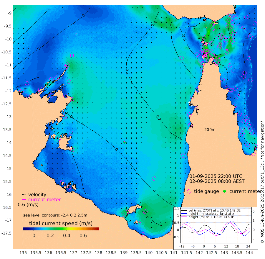 13cm/s 0T +3cm/s rms + 7cm/s -42T. ARA-GOC87 57m 24cm/s 0T +3cm/s rms + 2cm/s -2T. ARA-GOC87 60m 11cm/s 25T +2cm/s rms + 3cm/s 61T. ARA-GOC87 47m -13cm Daru -4cm Bobo Island -7cm Meer Island Barge 4cm Bramble Cay 0cm Unnamed Cay -5cm Pearce Cay -1cm Stephens Island 13cm Merrie England Shoals 3cm Mutacomal Reef -5cm Darnley Island Barge 1cm East Cay -10cm Yorke Island Barge -6cm Rennel Island -8cm Aureed Island -27cm Dungeness Reef -46cm Zagai Island -44cm Yam Island -103cm Dauan Island -83cm Saibai Island -97cm Phipi Reef -59cm Warrior Reef - West -76cm Mabuiag Island Barge -3cm Half Way Island -14cm Coconut Island -11cm Dugong Islet -28cm Poll Island -25cm Kirkcaldie Reef -48cm Suarji Island -31cm Sue Islet -105cm Hawkesbury Island -53cm Alert Patches -44cm Twin Island -106cm Badu Island -58cm St Pauls (Moa Island) -92cm Kubin (Moa Island) -64cm Ince Point -71cm Thursday Island -71cm Nardana Patches -87cm Turtle Head -95cm Round Island -101cm Goods Island -103cm Booby Island -85cm White Rocks Area -67cm Carpentaria -46cm Papou Point -111cm Bampfield Head -81cm Crab Island -87cm Red Wallis Island -86cm Packe Island -4cm Harrington Reef -110cm Herald Camp -10cm Sharp Point -65cm Red Island Point -66cm Possession Island -26cm Alpha Rock -28cm Frederick Point -7cm Wyborn Reef Light -12cm Tetley Island -12cm Triangle Reef -19cm Turtle Head Island -8cm Maclennan Cay -9cm Raine Island -2cm Mcsweeny Reef 0cm Collette Reef -7cm Shadwell Reef 4cm Hannibal Island 6cm Round Point -67cm Vrilya Point 6cm Cape Grenville -4cm Hicks Island -10cm Sir Charles Hardy Island 0cm Harvey Island 9cm Kay Reef -5cm Rocky Island -2cm Chapman Island -4cm Ham Reef -6cm Jubilee Reef -4cm Night Island 1cm Unnamed Reef No. 3 -3cm Morris Island -16cm 1st 3 Mile Opening -6cm Creech Reef 2cm Fife Island -2cm Eden Reef 1cm Stanley Island 10cm Normanby River -27cm Yabooma Island -42cm Hutchison River -25cm Elcho Island -21cm North West Crocodile Island -1cm Cape Wessel -8cm Stevens Island -21cm Guluwuru Island -10cm Hopeful Bay -13cm Auster Point -18cm Two Island Bay -34cm Cadell Strait 24cm Mallison Island -20cm Melville Bay (Gove Harbour) -21cm Truant Island -13cm Cape Arnhem 2cm Cape Grey 10cm Hawk Island 43cm Milner Bay (Groote Eylandt) 43cm Cape Beatrice 66cm West Island 68cm Centre Island 43cm Mornington Island 52cm West Wellesley Islands 34cm Bountiful Island 59cm Albert River Mouth 66cm Sweers Island 47cm Karumba 10cm Nassau River Offshore -22cm Christmas Creek -43cm Archer River -57cm Boyd Point -66cm Weipa (Humbug Point) -48cm Pennefather River -69cm Cullen Point