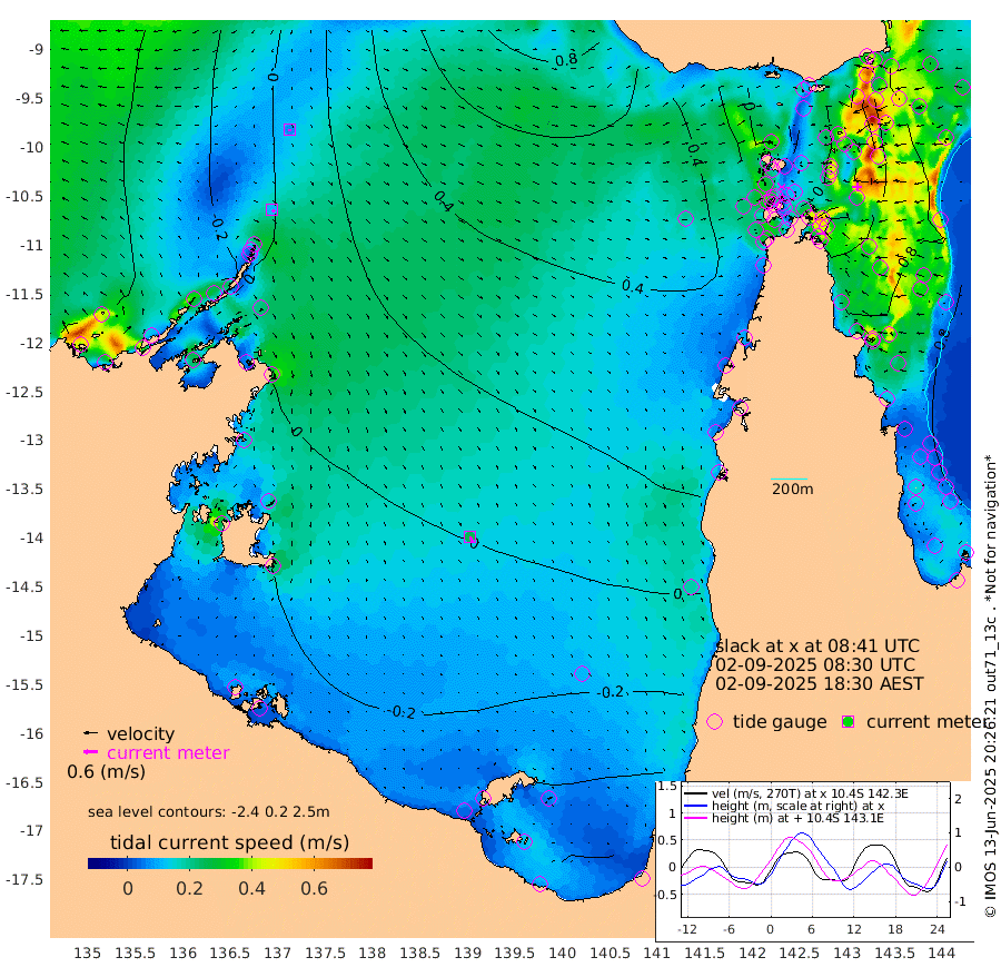11cm/s 138T +3cm/s rms + 7cm/s -42T. ARA-GOC87 57m 26cm/s 158T +3cm/s rms + 2cm/s -2T. ARA-GOC87 60m 7cm/s -175T +2cm/s rms + 3cm/s 61T. ARA-GOC87 47m 54cm Daru 55cm Bobo Island 76cm Meer Island Barge 84cm Bramble Cay 81cm Unnamed Cay 64cm Pearce Cay 75cm Stephens Island 92cm Merrie England Shoals 72cm Mutacomal Reef 78cm Darnley Island Barge 79cm East Cay 66cm Yorke Island Barge 62cm Rennel Island 55cm Aureed Island 41cm Dungeness Reef 7cm Zagai Island 8cm Yam Island -21cm Dauan Island -11cm Saibai Island -20cm Phipi Reef 2cm Warrior Reef - West -2cm Mabuiag Island Barge 62cm Half Way Island 47cm Coconut Island 56cm Dugong Islet 28cm Poll Island 33cm Kirkcaldie Reef 6cm Suarji Island 34cm Sue Islet 43cm Hawkesbury Island 26cm Alert Patches 22cm Twin Island 21cm Badu Island 7cm St Pauls (Moa Island) 26cm Kubin (Moa Island) 18cm Ince Point 21cm Thursday Island 19cm Nardana Patches 28cm Turtle Head 33cm Round Island 41cm Goods Island 49cm Booby Island 42cm White Rocks Area 61cm Carpentaria 5cm Papou Point 66cm Bampfield Head 34cm Crab Island 46cm Red Wallis Island 42cm Packe Island 53cm Harrington Reef 45cm Herald Camp -4cm Sharp Point 16cm Red Island Point 21cm Possession Island 34cm Alpha Rock 35cm Frederick Point 65cm Wyborn Reef Light 58cm Tetley Island 66cm Triangle Reef 65cm Turtle Head Island 70cm Maclennan Cay 70cm Raine Island 73cm Mcsweeny Reef 79cm Collette Reef 78cm Shadwell Reef 89cm Hannibal Island 89cm Round Point 46cm Vrilya Point 89cm Cape Grenville 75cm Hicks Island 87cm Sir Charles Hardy Island 24cm Harvey Island 96cm Kay Reef 78cm Rocky Island 83cm Chapman Island 80cm Ham Reef 78cm Jubilee Reef 71cm Night Island 81cm Unnamed Reef No. 3 82cm Morris Island 76cm 1st 3 Mile Opening 79cm Creech Reef 76cm Fife Island 96cm Eden Reef 91cm Stanley Island 90cm Normanby River -44cm Yabooma Island -50cm Hutchison River -48cm Elcho Island -57cm North West Crocodile Island -4cm Cape Wessel -23cm Stevens Island 15cm Guluwuru Island -15cm Hopeful Bay -13cm Auster Point -17cm Two Island Bay -30cm Cadell Strait 169cm Mallison Island 4cm Melville Bay (Gove Harbour) 9cm Truant Island 4cm Cape Arnhem -16cm Cape Grey -18cm Hawk Island -45cm Milner Bay (Groote Eylandt) -46cm Cape Beatrice -59cm West Island -57cm Centre Island -65cm Mornington Island -60cm West Wellesley Islands -86cm Bountiful Island -134cm Albert River Mouth -133cm Sweers Island -127cm Karumba -30cm Nassau River Offshore 7cm Christmas Creek 35cm Archer River 42cm Boyd Point 39cm Weipa (Humbug Point) 42cm Pennefather River 44cm Cullen Point
