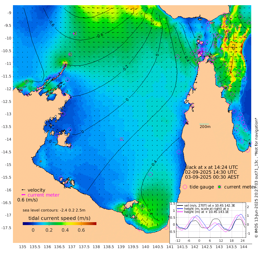 31cm/s -88T +3cm/s rms + 7cm/s -42T. ARA-GOC87 57m 18cm/s -151T +3cm/s rms + 2cm/s -2T. ARA-GOC87 60m 32cm/s -91T +2cm/s rms + 3cm/s 61T. ARA-GOC87 47m 19cm Daru 10cm Bobo Island -24cm Meer Island Barge -26cm Bramble Cay -12cm Unnamed Cay 8cm Pearce Cay -9cm Stephens Island -26cm Merrie England Shoals 2cm Mutacomal Reef -14cm Darnley Island Barge -23cm East Cay 3cm Yorke Island Barge 12cm Rennel Island 16cm Aureed Island 42cm Dungeness Reef 68cm Zagai Island 71cm Yam Island 126cm Dauan Island 102cm Saibai Island 129cm Phipi Reef 89cm Warrior Reef - West 92cm Mabuiag Island Barge 5cm Half Way Island 28cm Coconut Island 22cm Dugong Islet 51cm Poll Island 46cm Kirkcaldie Reef 91cm Suarji Island 46cm Sue Islet 90cm Hawkesbury Island 78cm Alert Patches 71cm Twin Island 96cm Badu Island 88cm St Pauls (Moa Island) 89cm Kubin (Moa Island) 83cm Ince Point 83cm Thursday Island 85cm Nardana Patches 91cm Turtle Head 86cm Round Island 85cm Goods Island 76cm Booby Island 73cm White Rocks Area 32cm Carpentaria 71cm Papou Point 72cm Bampfield Head 60cm Crab Island 72cm Red Wallis Island 82cm Packe Island 24cm Harrington Reef 95cm Herald Camp 26cm Sharp Point 80cm Red Island Point 80cm Possession Island 46cm Alpha Rock 51cm Frederick Point 10cm Wyborn Reef Light 19cm Tetley Island -7cm Triangle Reef 13cm Turtle Head Island -12cm Maclennan Cay -23cm Raine Island -5cm Mcsweeny Reef -14cm Collette Reef -21cm Shadwell Reef -23cm Hannibal Island -26cm Round Point 38cm Vrilya Point -28cm Cape Grenville -18cm Hicks Island -17cm Sir Charles Hardy Island -5cm Harvey Island -39cm Kay Reef -24cm Rocky Island -28cm Chapman Island -28cm Ham Reef -27cm Jubilee Reef -22cm Night Island -29cm Unnamed Reef No. 3 -28cm Morris Island -22cm 1st 3 Mile Opening -25cm Creech Reef -25cm Fife Island -41cm Eden Reef -37cm Stanley Island -40cm Normanby River -36cm Yabooma Island -33cm Hutchison River -37cm Elcho Island -28cm North West Crocodile Island -63cm Cape Wessel -65cm Stevens Island -66cm Guluwuru Island -56cm Hopeful Bay -53cm Auster Point -54cm Two Island Bay -54cm Cadell Strait -212cm Mallison Island -49cm Melville Bay (Gove Harbour) -57cm Truant Island -36cm Cape Arnhem -20cm Cape Grey -9cm Hawk Island -15cm Milner Bay (Groote Eylandt) 0cm Cape Beatrice 10cm West Island 8cm Centre Island 49cm Mornington Island 42cm West Wellesley Islands 72cm Bountiful Island 65cm Albert River Mouth 57cm Sweers Island 82cm Karumba 60cm Nassau River Offshore 59cm Christmas Creek 44cm Archer River 45cm Boyd Point 55cm Weipa (Humbug Point) 25cm Pennefather River 48cm Cullen Point