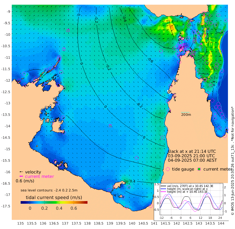 16cm/s 18T +3cm/s rms + 7cm/s -42T. ARA-GOC87 57m 20cm/s -22T +3cm/s rms + 2cm/s -2T. ARA-GOC87 60m 20cm/s 30T +2cm/s rms + 3cm/s 61T. ARA-GOC87 47m -3cm Daru 3cm Bobo Island 26cm Meer Island Barge 34cm Bramble Cay 23cm Unnamed Cay 5cm Pearce Cay 19cm Stephens Island 35cm Merrie England Shoals 9cm Mutacomal Reef 22cm Darnley Island Barge 32cm East Cay 8cm Yorke Island Barge 2cm Rennel Island -5cm Aureed Island -25cm Dungeness Reef -60cm Zagai Island -62cm Yam Island -113cm Dauan Island -94cm Saibai Island -87cm Phipi Reef -70cm Warrior Reef - West -102cm Mabuiag Island Barge 2cm Half Way Island -22cm Coconut Island -12cm Dugong Islet -46cm Poll Island -34cm Kirkcaldie Reef -80cm Suarji Island -38cm Sue Islet -131cm Hawkesbury Island -80cm Alert Patches -78cm Twin Island -132cm Badu Island -94cm St Pauls (Moa Island) -126cm Kubin (Moa Island) -99cm Ince Point -109cm Thursday Island -108cm Nardana Patches -118cm Turtle Head -119cm Round Island -132cm Goods Island -143cm Booby Island -134cm White Rocks Area -128cm Carpentaria -78cm Papou Point -147cm Bampfield Head -115cm Crab Island -140cm Red Wallis Island -130cm Packe Island -16cm Harrington Reef -137cm Herald Camp -21cm Sharp Point -90cm Red Island Point -89cm Possession Island -57cm Alpha Rock -52cm Frederick Point -9cm Wyborn Reef Light -20cm Tetley Island 5cm Triangle Reef -14cm Turtle Head Island 15cm Maclennan Cay 23cm Raine Island 13cm Mcsweeny Reef 24cm Collette Reef 25cm Shadwell Reef 33cm Hannibal Island 33cm Round Point -104cm Vrilya Point 33cm Cape Grenville 27cm Hicks Island 20cm Sir Charles Hardy Island 9cm Harvey Island 42cm Kay Reef 29cm Rocky Island 28cm Chapman Island 27cm Ham Reef 28cm Jubilee Reef 21cm Night Island 27cm Unnamed Reef No. 3 31cm Morris Island 20cm 1st 3 Mile Opening 26cm Creech Reef 27cm Fife Island 42cm Eden Reef 39cm Stanley Island 46cm Normanby River 13cm Yabooma Island 12cm Hutchison River 16cm Elcho Island 17cm North West Crocodile Island 10cm Cape Wessel 27cm Stevens Island 24cm Guluwuru Island 30cm Hopeful Bay 14cm Auster Point 10cm Two Island Bay 22cm Cadell Strait 105cm Mallison Island 18cm Melville Bay (Gove Harbour) 12cm Truant Island 11cm Cape Arnhem 32cm Cape Grey 35cm Hawk Island 53cm Milner Bay (Groote Eylandt) 53cm Cape Beatrice 62cm West Island 63cm Centre Island 83cm Mornington Island 86cm West Wellesley Islands 102cm Bountiful Island 132cm Albert River Mouth 149cm Sweers Island 124cm Karumba 45cm Nassau River Offshore 4cm Christmas Creek -31cm Archer River -62cm Boyd Point -64cm Weipa (Humbug Point) -59cm Pennefather River -100cm Cullen Point
