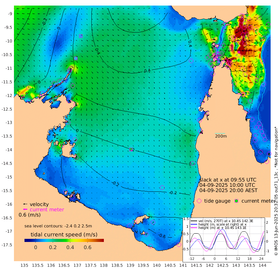 14cm/s 141T +3cm/s rms + 7cm/s -42T. ARA-GOC87 57m 30cm/s 164T +3cm/s rms + 2cm/s -2T. ARA-GOC87 60m 9cm/s -176T +2cm/s rms + 3cm/s 61T. ARA-GOC87 47m 122cm Daru 118cm Bobo Island 111cm Meer Island Barge 137cm Bramble Cay 147cm Unnamed Cay 130cm Pearce Cay 137cm Stephens Island 159cm Merrie England Shoals 144cm Mutacomal Reef 128cm Darnley Island Barge 120cm East Cay 121cm Yorke Island Barge 130cm Rennel Island 113cm Aureed Island 105cm Dungeness Reef 52cm Zagai Island 63cm Yam Island 9cm Dauan Island 8cm Saibai Island 13cm Phipi Reef 52cm Warrior Reef - West 26cm Mabuiag Island Barge 130cm Half Way Island 110cm Coconut Island 126cm Dugong Islet 90cm Poll Island 98cm Kirkcaldie Reef 59cm Suarji Island 84cm Sue Islet 78cm Hawkesbury Island 79cm Alert Patches 78cm Twin Island 53cm Badu Island 60cm St Pauls (Moa Island) 68cm Kubin (Moa Island) 65cm Ince Point 64cm Thursday Island 62cm Nardana Patches 68cm Turtle Head 63cm Round Island 74cm Goods Island 70cm Booby Island 75cm White Rocks Area 59cm Carpentaria 53cm Papou Point 82cm Bampfield Head 48cm Crab Island 72cm Red Wallis Island 82cm Packe Island 128cm Harrington Reef 69cm Herald Camp 7cm Sharp Point 48cm Red Island Point 59cm Possession Island 87cm Alpha Rock 98cm Frederick Point 135cm Wyborn Reef Light 126cm Tetley Island 100cm Triangle Reef 140cm Turtle Head Island 108cm Maclennan Cay 96cm Raine Island 133cm Mcsweeny Reef 131cm Collette Reef 112cm Shadwell Reef 146cm Hannibal Island 145cm Round Point 52cm Vrilya Point 136cm Cape Grenville 119cm Hicks Island 128cm Sir Charles Hardy Island 38cm Harvey Island 135cm Kay Reef 109cm Rocky Island 108cm Chapman Island 103cm Ham Reef 107cm Jubilee Reef 100cm Night Island 107cm Unnamed Reef No. 3 116cm Morris Island 105cm 1st 3 Mile Opening 109cm Creech Reef 111cm Fife Island 129cm Eden Reef 124cm Stanley Island 131cm Normanby River 11cm Yabooma Island 12cm Hutchison River 0cm Elcho Island -8cm North West Crocodile Island 23cm Cape Wessel 22cm Stevens Island 39cm Guluwuru Island 18cm Hopeful Bay 18cm Auster Point 16cm Two Island Bay 18cm Cadell Strait 160cm Mallison Island 27cm Melville Bay (Gove Harbour) 33cm Truant Island 15cm Cape Arnhem -11cm Cape Grey -19cm Hawk Island -55cm Milner Bay (Groote Eylandt) -52cm Cape Beatrice -74cm West Island -80cm Centre Island -77cm Mornington Island -67cm West Wellesley Islands -95cm Bountiful Island -142cm Albert River Mouth -157cm Sweers Island -138cm Karumba -29cm Nassau River Offshore 12cm Christmas Creek 36cm Archer River 45cm Boyd Point 45cm Weipa (Humbug Point) 43cm Pennefather River 46cm Cullen Point
