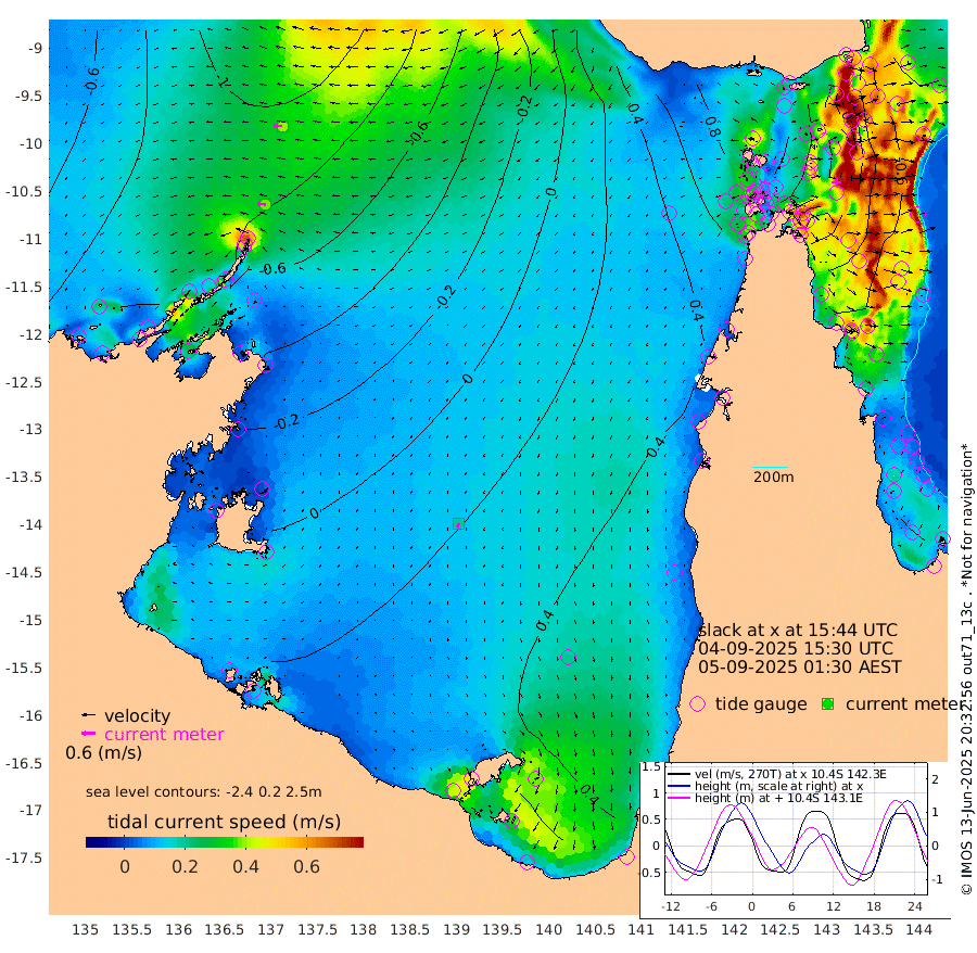 37cm/s -86T +3cm/s rms + 7cm/s -42T. ARA-GOC87 57m 20cm/s -158T +3cm/s rms + 2cm/s -2T. ARA-GOC87 60m 40cm/s -90T +2cm/s rms + 3cm/s 61T. ARA-GOC87 47m -19cm Daru -30cm Bobo Island -56cm Meer Island Barge -67cm Bramble Cay -55cm Unnamed Cay -38cm Pearce Cay -54cm Stephens Island -70cm Merrie England Shoals -37cm Mutacomal Reef -53cm Darnley Island Barge -60cm East Cay -35cm Yorke Island Barge -30cm Rennel Island -20cm Aureed Island 5cm Dungeness Reef 53cm Zagai Island 53cm Yam Island 130cm Dauan Island 111cm Saibai Island 123cm Phipi Reef 77cm Warrior Reef - West 91cm Mabuiag Island Barge -36cm Half Way Island -5cm Coconut Island -19cm Dugong Islet 24cm Poll Island 14cm Kirkcaldie Reef 70cm Suarji Island 22cm Sue Islet 80cm Hawkesbury Island 58cm Alert Patches 52cm Twin Island 88cm Badu Island 72cm St Pauls (Moa Island) 80cm Kubin (Moa Island) 71cm Ince Point 73cm Thursday Island 75cm Nardana Patches 82cm Turtle Head 81cm Round Island 77cm Goods Island 76cm Booby Island 65cm White Rocks Area 49cm Carpentaria 53cm Papou Point 71cm Bampfield Head 65cm Crab Island 76cm Red Wallis Island 81cm Packe Island -19cm Harrington Reef 97cm Herald Camp 27cm Sharp Point 67cm Red Island Point 65cm Possession Island 30cm Alpha Rock 23cm Frederick Point -28cm Wyborn Reef Light -15cm Tetley Island -31cm Triangle Reef -37cm Turtle Head Island -44cm Maclennan Cay -50cm Raine Island -45cm Mcsweeny Reef -50cm Collette Reef -50cm Shadwell Reef -64cm Hannibal Island -68cm Round Point 49cm Vrilya Point -64cm Cape Grenville -55cm Hicks Island -50cm Sir Charles Hardy Island -17cm Harvey Island -74cm Kay Reef -55cm Rocky Island -54cm Chapman Island -52cm Ham Reef -56cm Jubilee Reef -46cm Night Island -54cm Unnamed Reef No. 3 -61cm Morris Island -53cm 1st 3 Mile Opening -55cm Creech Reef -54cm Fife Island -76cm Eden Reef -69cm Stanley Island -79cm Normanby River -107cm Yabooma Island -115cm Hutchison River -103cm Elcho Island -93cm North West Crocodile Island -101cm Cape Wessel -122cm Stevens Island -102cm Guluwuru Island -105cm Hopeful Bay -102cm Auster Point -100cm Two Island Bay -120cm Cadell Strait -193cm Mallison Island -84cm Melville Bay (Gove Harbour) -92cm Truant Island -55cm Cape Arnhem -42cm Cape Grey -20cm Hawk Island -20cm Milner Bay (Groote Eylandt) -3cm Cape Beatrice 16cm West Island 19cm Centre Island 56cm Mornington Island 46cm West Wellesley Islands 61cm Bountiful Island 61cm Albert River Mouth 50cm Sweers Island 79cm Karumba 66cm Nassau River Offshore 67cm Christmas Creek 51cm Archer River 54cm Boyd Point 61cm Weipa (Humbug Point) 34cm Pennefather River 64cm Cullen Point