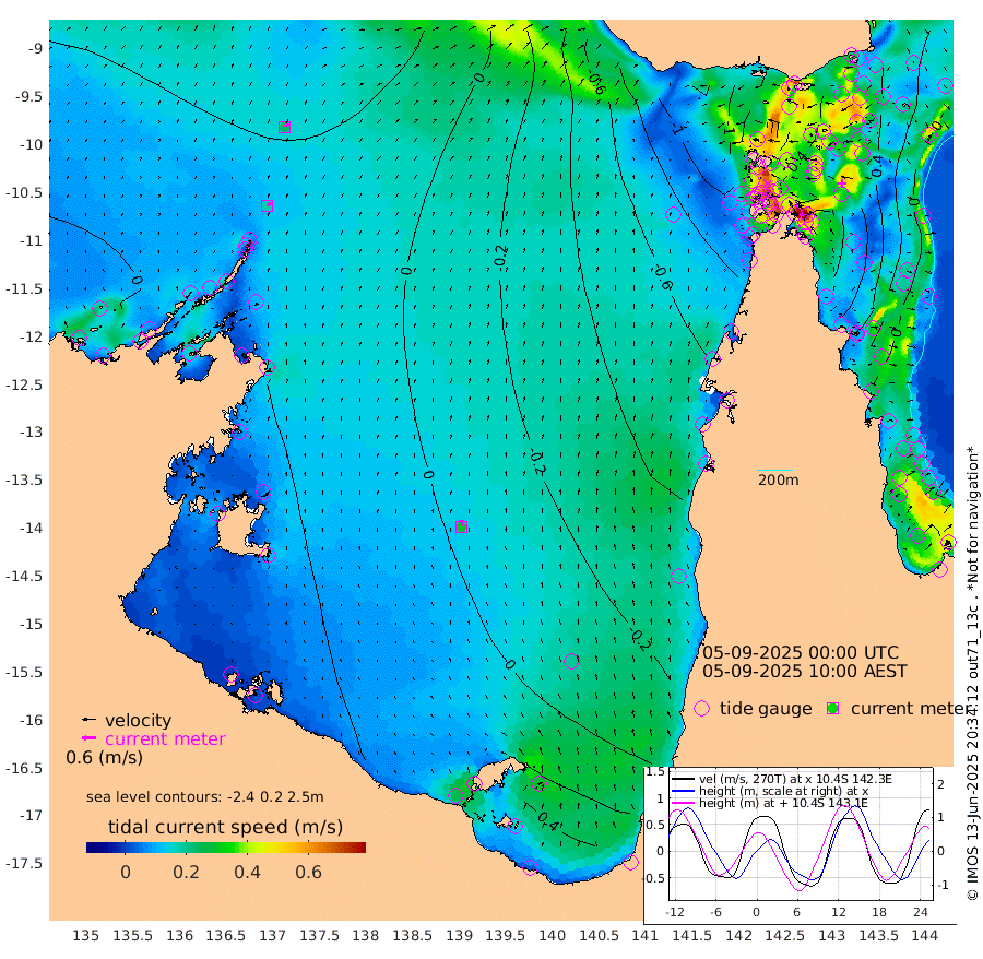18cm/s 46T +3cm/s rms + 7cm/s -42T. ARA-GOC87 57m 29cm/s 2T +3cm/s rms + 2cm/s -2T. ARA-GOC87 60m 23cm/s 54T +2cm/s rms + 3cm/s 61T. ARA-GOC87 47m 61cm Daru 66cm Bobo Island 4cm Meer Island Barge 35cm Bramble Cay 55cm Unnamed Cay 53cm Pearce Cay 44cm Stephens Island 63cm Merrie England Shoals 72cm Mutacomal Reef 32cm Darnley Island Barge 15cm East Cay 44cm Yorke Island Barge 53cm Rennel Island 51cm Aureed Island 43cm Dungeness Reef 36cm Zagai Island 31cm Yam Island -33cm Dauan Island -15cm Saibai Island -10cm Phipi Reef 24cm Warrior Reef - West -17cm Mabuiag Island Barge 50cm Half Way Island 61cm Coconut Island 49cm Dugong Islet 46cm Poll Island 45cm Kirkcaldie Reef 36cm Suarji Island 43cm Sue Islet -96cm Hawkesbury Island 19cm Alert Patches 27cm Twin Island -77cm Badu Island 20cm St Pauls (Moa Island) -67cm Kubin (Moa Island) -9cm Ince Point -28cm Thursday Island -24cm Nardana Patches -60cm Turtle Head -69cm Round Island -102cm Goods Island -125cm Booby Island -100cm White Rocks Area -109cm Carpentaria 20cm Papou Point -115cm Bampfield Head -102cm Crab Island -111cm Red Wallis Island -82cm Packe Island 70cm Harrington Reef -117cm Herald Camp 14cm Sharp Point -38cm Red Island Point -9cm Possession Island 39cm Alpha Rock 46cm Frederick Point 71cm Wyborn Reef Light 68cm Tetley Island 6cm Triangle Reef 60cm Turtle Head Island 2cm Maclennan Cay -12cm Raine Island 48cm Mcsweeny Reef 42cm Collette Reef 8cm Shadwell Reef 48cm Hannibal Island 38cm Round Point -99cm Vrilya Point 26cm Cape Grenville 15cm Hicks Island -1cm Sir Charles Hardy Island 6cm Harvey Island 16cm Kay Reef -3cm Rocky Island -7cm Chapman Island -11cm Ham Reef -6cm Jubilee Reef -3cm Night Island -7cm Unnamed Reef No. 3 -2cm Morris Island -18cm 1st 3 Mile Opening -9cm Creech Reef 4cm Fife Island -12cm Eden Reef -3cm Stanley Island 8cm Normanby River 10cm Yabooma Island 13cm Hutchison River 12cm Elcho Island 15cm North West Crocodile Island 31cm Cape Wessel 39cm Stevens Island 24cm Guluwuru Island 27cm Hopeful Bay 28cm Auster Point 15cm Two Island Bay 21cm Cadell Strait 63cm Mallison Island 27cm Melville Bay (Gove Harbour) 27cm Truant Island 21cm Cape Arnhem 38cm Cape Grey 39cm Hawk Island 60cm Milner Bay (Groote Eylandt) 51cm Cape Beatrice 64cm West Island 64cm Centre Island 48cm Mornington Island 50cm West Wellesley Islands 52cm Bountiful Island 68cm Albert River Mouth 97cm Sweers Island 63cm Karumba 2cm Nassau River Offshore -38cm Christmas Creek -65cm Archer River -81cm Boyd Point -94cm Weipa (Humbug Point) -68cm Pennefather River -103cm Cullen Point