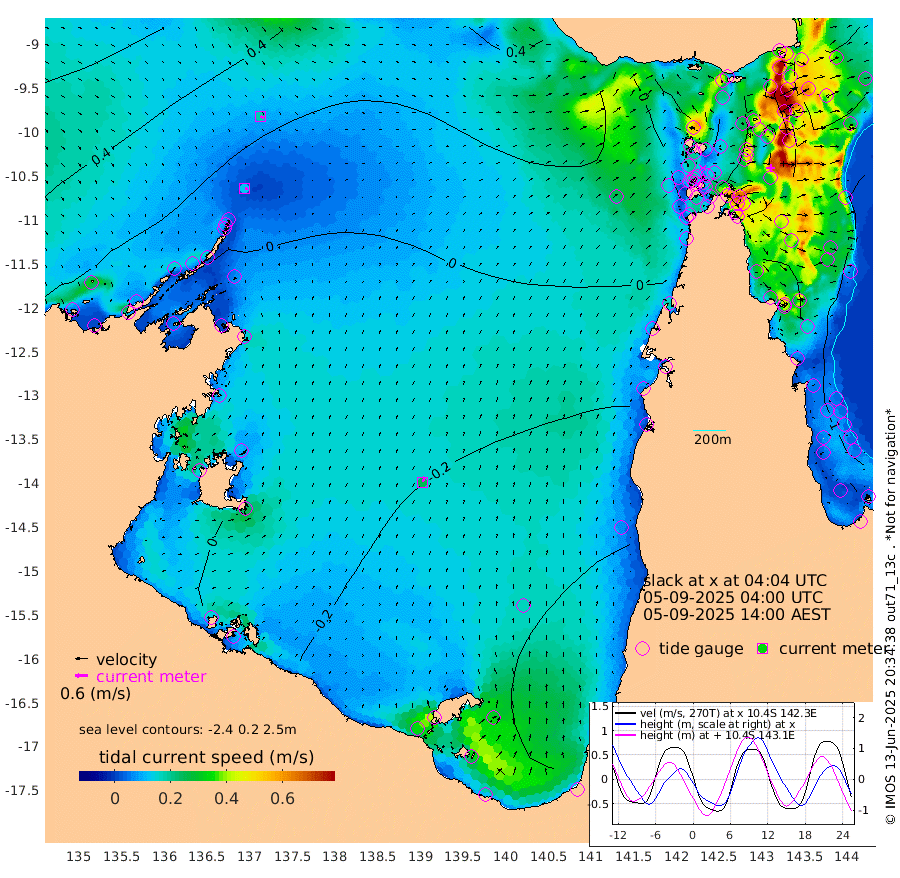 13cm/s 107T +3cm/s rms + 7cm/s -42T. ARA-GOC87 57m 25cm/s 19T +3cm/s rms + 2cm/s -2T. ARA-GOC87 60m 18cm/s 113T +2cm/s rms + 3cm/s 61T. ARA-GOC87 47m -111cm Daru -105cm Bobo Island -99cm Meer Island Barge -125cm Bramble Cay -131cm Unnamed Cay -115cm Pearce Cay -123cm Stephens Island -143cm Merrie England Shoals -127cm Mutacomal Reef -115cm Darnley Island Barge -111cm East Cay -107cm Yorke Island Barge -117cm Rennel Island -99cm Aureed Island -95cm Dungeness Reef -38cm Zagai Island -48cm Yam Island -6cm Dauan Island 3cm Saibai Island -35cm Phipi Reef -48cm Warrior Reef - West 5cm Mabuiag Island Barge -112cm Half Way Island -90cm Coconut Island -108cm Dugong Islet -70cm Poll Island -83cm Kirkcaldie Reef -40cm Suarji Island -64cm Sue Islet -18cm Hawkesbury Island -49cm Alert Patches -45cm Twin Island 1cm Badu Island -29cm St Pauls (Moa Island) -16cm Kubin (Moa Island) -27cm Ince Point -18cm Thursday Island -19cm Nardana Patches -24cm Turtle Head -18cm Round Island -12cm Goods Island 7cm Booby Island 0cm White Rocks Area 40cm Carpentaria -23cm Papou Point 1cm Bampfield Head 9cm Crab Island 4cm Red Wallis Island -24cm Packe Island -106cm Harrington Reef -19cm Herald Camp -5cm Sharp Point -17cm Red Island Point -31cm Possession Island -52cm Alpha Rock -70cm Frederick Point -108cm Wyborn Reef Light -98cm Tetley Island -84cm Triangle Reef -109cm Turtle Head Island -95cm Maclennan Cay -86cm Raine Island -116cm Mcsweeny Reef -119cm Collette Reef -102cm Shadwell Reef -133cm Hannibal Island -131cm Round Point 14cm Vrilya Point -122cm Cape Grenville -111cm Hicks Island -111cm Sir Charles Hardy Island -36cm Harvey Island -120cm Kay Reef -100cm Rocky Island -96cm Chapman Island -90cm Ham Reef -94cm Jubilee Reef -91cm Night Island -93cm Unnamed Reef No. 3 -104cm Morris Island -91cm 1st 3 Mile Opening -97cm Creech Reef -103cm Fife Island -117cm Eden Reef -112cm Stanley Island -121cm Normanby River 15cm Yabooma Island 13cm Hutchison River 21cm Elcho Island 21cm North West Crocodile Island 27cm Cape Wessel 13cm Stevens Island 1cm Guluwuru Island 4cm Hopeful Bay 20cm Auster Point 22cm Two Island Bay 11cm Cadell Strait -82cm Mallison Island 3cm Melville Bay (Gove Harbour) 9cm Truant Island 6cm Cape Arnhem 5cm Cape Grey -7cm Hawk Island 17cm Milner Bay (Groote Eylandt) 1cm Cape Beatrice 8cm West Island 10cm Centre Island -52cm Mornington Island -54cm West Wellesley Islands -61cm Bountiful Island -52cm Albert River Mouth -45cm Sweers Island -64cm Karumba -71cm Nassau River Offshore -71cm Christmas Creek -46cm Archer River -25cm Boyd Point -32cm Weipa (Humbug Point) -12cm Pennefather River 4cm Cullen Point