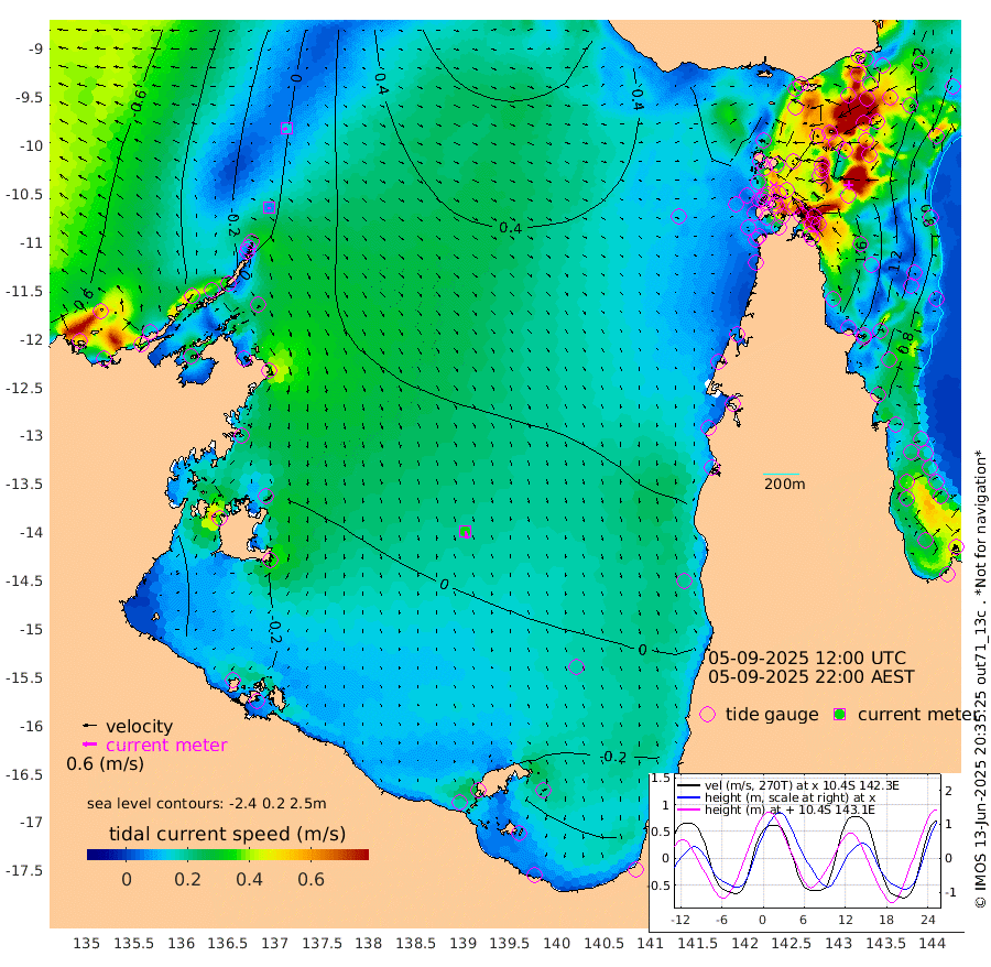 7cm/s -163T +3cm/s rms + 7cm/s -42T. ARA-GOC87 57m 34cm/s 169T +3cm/s rms + 2cm/s -2T. ARA-GOC87 60m 14cm/s -114T +2cm/s rms + 3cm/s 61T. ARA-GOC87 47m 177cm Daru 165cm Bobo Island 91cm Meer Island Barge 134cm Bramble Cay 169cm Unnamed Cay 164cm Pearce Cay 152cm Stephens Island 175cm Merrie England Shoals 193cm Mutacomal Reef 134cm Darnley Island Barge 105cm East Cay 150cm Yorke Island Barge 171cm Rennel Island 155cm Aureed Island 165cm Dungeness Reef 139cm Zagai Island 151cm Yam Island 110cm Dauan Island 100cm Saibai Island 113cm Phipi Reef 151cm Warrior Reef - West 104cm Mabuiag Island Barge 165cm Half Way Island 172cm Coconut Island 176cm Dugong Islet 166cm Poll Island 167cm Kirkcaldie Reef 156cm Suarji Island 154cm Sue Islet 108cm Hawkesbury Island 160cm Alert Patches 162cm Twin Island 100cm Badu Island 155cm St Pauls (Moa Island) 118cm Kubin (Moa Island) 140cm Ince Point 129cm Thursday Island 131cm Nardana Patches 120cm Turtle Head 102cm Round Island 97cm Goods Island 76cm Booby Island 91cm White Rocks Area 50cm Carpentaria 131cm Papou Point 86cm Bampfield Head 54cm Crab Island 89cm Red Wallis Island 122cm Packe Island 189cm Harrington Reef 92cm Herald Camp 40cm Sharp Point 94cm Red Island Point 121cm Possession Island 161cm Alpha Rock 174cm Frederick Point 191cm Wyborn Reef Light 190cm Tetley Island 100cm Triangle Reef 185cm Turtle Head Island 97cm Maclennan Cay 67cm Raine Island 157cm Mcsweeny Reef 143cm Collette Reef 98cm Shadwell Reef 154cm Hannibal Island 143cm Round Point 46cm Vrilya Point 126cm Cape Grenville 108cm Hicks Island 113cm Sir Charles Hardy Island 36cm Harvey Island 109cm Kay Reef 82cm Rocky Island 77cm Chapman Island 71cm Ham Reef 78cm Jubilee Reef 79cm Night Island 78cm Unnamed Reef No. 3 86cm Morris Island 72cm 1st 3 Mile Opening 80cm Creech Reef 91cm Fife Island 84cm Eden Reef 88cm Stanley Island 96cm Normanby River -32cm Yabooma Island -27cm Hutchison River -40cm Elcho Island -41cm North West Crocodile Island -5cm Cape Wessel -13cm Stevens Island 12cm Guluwuru Island -24cm Hopeful Bay -15cm Auster Point -19cm Two Island Bay -17cm Cadell Strait 101cm Mallison Island 7cm Melville Bay (Gove Harbour) 11cm Truant Island 4cm Cape Arnhem -17cm Cape Grey -17cm Hawk Island -54cm Milner Bay (Groote Eylandt) -43cm Cape Beatrice -58cm West Island -67cm Centre Island -48cm Mornington Island -41cm West Wellesley Islands -69cm Bountiful Island -111cm Albert River Mouth -132cm Sweers Island -102cm Karumba -4cm Nassau River Offshore 29cm Christmas Creek 34cm Archer River 45cm Boyd Point 41cm Weipa (Humbug Point) 37cm Pennefather River 45cm Cullen Point