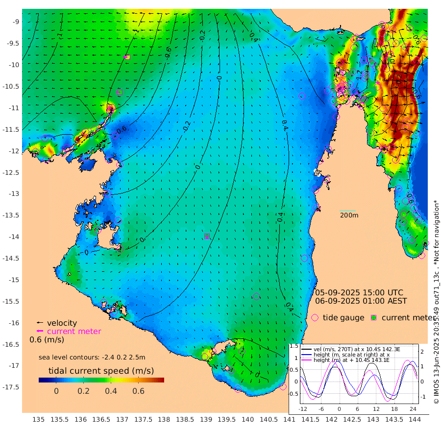 34cm/s -88T +3cm/s rms + 7cm/s -42T. ARA-GOC87 57m 25cm/s -176T +3cm/s rms + 2cm/s -2T. ARA-GOC87 60m 41cm/s -92T +2cm/s rms + 3cm/s 61T. ARA-GOC87 47m 33cm Daru 17cm Bobo Island -44cm Meer Island Barge -38cm Bramble Cay -10cm Unnamed Cay 3cm Pearce Cay -17cm Stephens Island -22cm Merrie England Shoals 23cm Mutacomal Reef -22cm Darnley Island Barge -44cm East Cay 5cm Yorke Island Barge 16cm Rennel Island 23cm Aureed Island 51cm Dungeness Reef 103cm Zagai Island 104cm Yam Island 165cm Dauan Island 149cm Saibai Island 152cm Phipi Reef 126cm Warrior Reef - West 128cm Mabuiag Island Barge 9cm Half Way Island 49cm Coconut Island 31cm Dugong Islet 78cm Poll Island 66cm Kirkcaldie Reef 121cm Suarji Island 74cm Sue Islet 101cm Hawkesbury Island 110cm Alert Patches 107cm Twin Island 112cm Badu Island 126cm St Pauls (Moa Island) 110cm Kubin (Moa Island) 116cm Ince Point 113cm Thursday Island 117cm Nardana Patches 112cm Turtle Head 103cm Round Island 94cm Goods Island 88cm Booby Island 84cm White Rocks Area 68cm Carpentaria 98cm Papou Point 86cm Bampfield Head 75cm Crab Island 97cm Red Wallis Island 113cm Packe Island 39cm Harrington Reef 110cm Herald Camp 44cm Sharp Point 90cm Red Island Point 99cm Possession Island 90cm Alpha Rock 80cm Frederick Point 34cm Wyborn Reef Light 49cm Tetley Island -10cm Triangle Reef 14cm Turtle Head Island -29cm Maclennan Cay -46cm Raine Island -3cm Mcsweeny Reef -14cm Collette Reef -32cm Shadwell Reef -26cm Hannibal Island -36cm Round Point 61cm Vrilya Point -37cm Cape Grenville -38cm Hicks Island -31cm Sir Charles Hardy Island -10cm Harvey Island -53cm Kay Reef -46cm Rocky Island -46cm Chapman Island -46cm Ham Reef -48cm Jubilee Reef -36cm Night Island -44cm Unnamed Reef No. 3 -52cm Morris Island -49cm 1st 3 Mile Opening -47cm Creech Reef -41cm Fife Island -72cm Eden Reef -59cm Stanley Island -69cm Normanby River -147cm Yabooma Island -158cm Hutchison River -142cm Elcho Island -133cm North West Crocodile Island -108cm Cape Wessel -141cm Stevens Island -104cm Guluwuru Island -131cm Hopeful Bay -120cm Auster Point -122cm Two Island Bay -148cm Cadell Strait -126cm Mallison Island -90cm Melville Bay (Gove Harbour) -94cm Truant Island -56cm Cape Arnhem -51cm Cape Grey -28cm Hawk Island -33cm Milner Bay (Groote Eylandt) -16cm Cape Beatrice 5cm West Island 5cm Centre Island 32cm Mornington Island 25cm West Wellesley Islands 18cm Bountiful Island 7cm Albert River Mouth -12cm Sweers Island 24cm Karumba 50cm Nassau River Offshore 62cm Christmas Creek 49cm Archer River 59cm Boyd Point 59cm Weipa (Humbug Point) 42cm Pennefather River 72cm Cullen Point