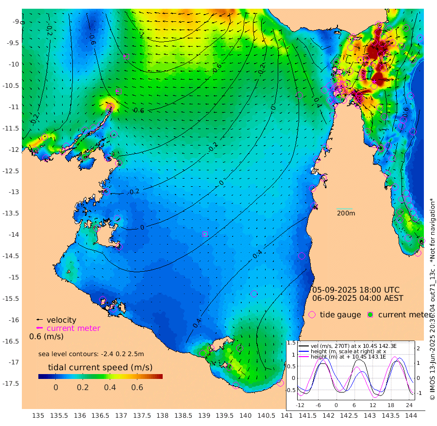 31cm/s -81T +3cm/s rms + 7cm/s -42T. ARA-GOC87 57m 14cm/s -113T +3cm/s rms + 2cm/s -2T. ARA-GOC87 60m 29cm/s -83T +2cm/s rms + 3cm/s 61T. ARA-GOC87 47m -119cm Daru -121cm Bobo Island -60cm Meer Island Barge -96cm Bramble Cay -121cm Unnamed Cay -116cm Pearce Cay -108cm Stephens Island -129cm Merrie England Shoals -135cm Mutacomal Reef -95cm Darnley Island Barge -70cm East Cay -105cm Yorke Island Barge -115cm Rennel Island -106cm Aureed Island -99cm Dungeness Reef -78cm Zagai Island -79cm Yam Island -6cm Dauan Island -18cm Saibai Island -7cm Phipi Reef -64cm Warrior Reef - West -31cm Mabuiag Island Barge -115cm Half Way Island -117cm Coconut Island -116cm Dugong Islet -101cm Poll Island -101cm Kirkcaldie Reef -80cm Suarji Island -95cm Sue Islet -3cm Hawkesbury Island -79cm Alert Patches -87cm Twin Island -7cm Badu Island -77cm St Pauls (Moa Island) -20cm Kubin (Moa Island) -56cm Ince Point -43cm Thursday Island -45cm Nardana Patches -19cm Turtle Head -6cm Round Island 5cm Goods Island 20cm Booby Island -1cm White Rocks Area 9cm Carpentaria -72cm Papou Point 7cm Bampfield Head 26cm Crab Island 11cm Red Wallis Island -10cm Packe Island -134cm Harrington Reef 28cm Herald Camp -18cm Sharp Point -18cm Red Island Point -45cm Possession Island -97cm Alpha Rock -107cm Frederick Point -138cm Wyborn Reef Light -134cm Tetley Island -60cm Triangle Reef -139cm Turtle Head Island -59cm Maclennan Cay -38cm Raine Island -111cm Mcsweeny Reef -99cm Collette Reef -61cm Shadwell Reef -111cm Hannibal Island -102cm Round Point 22cm Vrilya Point -86cm Cape Grenville -72cm Hicks Island -67cm Sir Charles Hardy Island -24cm Harvey Island -76cm Kay Reef -49cm Rocky Island -44cm Chapman Island -41cm Ham Reef -49cm Jubilee Reef -45cm Night Island -45cm Unnamed Reef No. 3 -54cm Morris Island -41cm 1st 3 Mile Opening -46cm Creech Reef -55cm Fife Island -52cm Eden Reef -55cm Stanley Island -68cm Normanby River -64cm Yabooma Island -76cm Hutchison River -58cm Elcho Island -52cm North West Crocodile Island -87cm Cape Wessel -91cm Stevens Island -89cm Guluwuru Island -64cm Hopeful Bay -77cm Auster Point -71cm Two Island Bay -85cm Cadell Strait -163cm Mallison Island -75cm Melville Bay (Gove Harbour) -86cm Truant Island -52cm Cape Arnhem -33cm Cape Grey -11cm Hawk Island 2cm Milner Bay (Groote Eylandt) 15cm Cape Beatrice 33cm West Island 42cm Centre Island 81cm Mornington Island 72cm West Wellesley Islands 96cm Bountiful Island 125cm Albert River Mouth 118cm Sweers Island 134cm Karumba 78cm Nassau River Offshore 66cm Christmas Creek 48cm Archer River 35cm Boyd Point 50cm Weipa (Humbug Point) 24cm Pennefather River 36cm Cullen Point