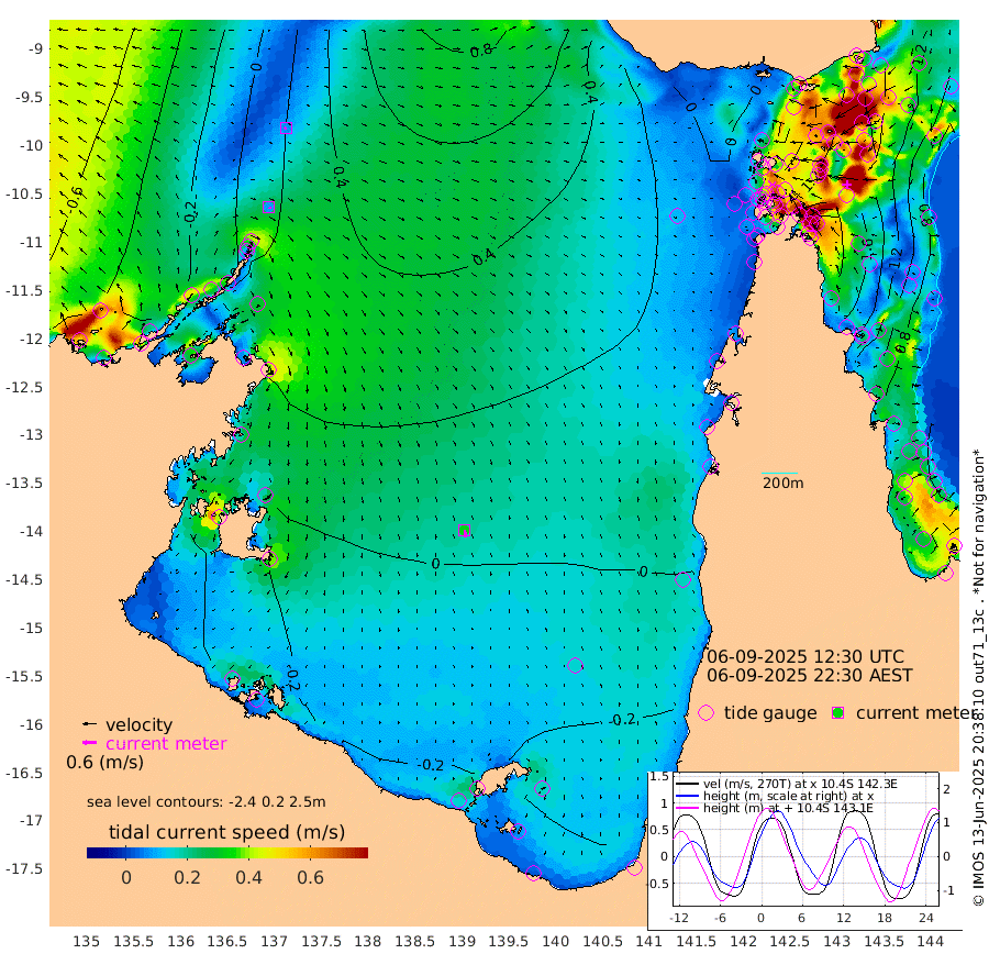 8cm/s 144T +3cm/s rms + 7cm/s -42T. ARA-GOC87 57m 33cm/s 169T +3cm/s rms + 2cm/s -2T. ARA-GOC87 60m 7cm/s -126T +2cm/s rms + 3cm/s 61T. ARA-GOC87 47m 188cm Daru 175cm Bobo Island 92cm Meer Island Barge 136cm Bramble Cay 175cm Unnamed Cay 171cm Pearce Cay 158cm Stephens Island 179cm Merrie England Shoals 201cm Mutacomal Reef 140cm Darnley Island Barge 104cm East Cay 158cm Yorke Island Barge 178cm Rennel Island 163cm Aureed Island 174cm Dungeness Reef 153cm Zagai Island 164cm Yam Island 122cm Dauan Island 111cm Saibai Island 122cm Phipi Reef 165cm Warrior Reef - West 108cm Mabuiag Island Barge 173cm Half Way Island 180cm Coconut Island 185cm Dugong Islet 176cm Poll Island 177cm Kirkcaldie Reef 162cm Suarji Island 164cm Sue Islet 97cm Hawkesbury Island 163cm Alert Patches 167cm Twin Island 93cm Badu Island 164cm St Pauls (Moa Island) 114cm Kubin (Moa Island) 141cm Ince Point 126cm Thursday Island 130cm Nardana Patches 113cm Turtle Head 90cm Round Island 84cm Goods Island 57cm Booby Island 73cm White Rocks Area 30cm Carpentaria 139cm Papou Point 62cm Bampfield Head 39cm Crab Island 71cm Red Wallis Island 110cm Packe Island 198cm Harrington Reef 74cm Herald Camp 44cm Sharp Point 90cm Red Island Point 118cm Possession Island 167cm Alpha Rock 181cm Frederick Point 200cm Wyborn Reef Light 199cm Tetley Island 99cm Triangle Reef 195cm Turtle Head Island 97cm Maclennan Cay 63cm Raine Island 162cm Mcsweeny Reef 146cm Collette Reef 97cm Shadwell Reef 157cm Hannibal Island 144cm Round Point 29cm Vrilya Point 125cm Cape Grenville 109cm Hicks Island 112cm Sir Charles Hardy Island 37cm Harvey Island 105cm Kay Reef 79cm Rocky Island 71cm Chapman Island 66cm Ham Reef 76cm Jubilee Reef 76cm Night Island 72cm Unnamed Reef No. 3 83cm Morris Island 69cm 1st 3 Mile Opening 76cm Creech Reef 89cm Fife Island 79cm Eden Reef 84cm Stanley Island 93cm Normanby River -10cm Yabooma Island 2cm Hutchison River -17cm Elcho Island -18cm North West Crocodile Island 16cm Cape Wessel 10cm Stevens Island 41cm Guluwuru Island -7cm Hopeful Bay 4cm Auster Point 4cm Two Island Bay 19cm Cadell Strait 130cm Mallison Island 29cm Melville Bay (Gove Harbour) 35cm Truant Island 20cm Cape Arnhem -5cm Cape Grey -11cm Hawk Island -51cm Milner Bay (Groote Eylandt) -41cm Cape Beatrice -62cm West Island -74cm Centre Island -52cm Mornington Island -46cm West Wellesley Islands -73cm Bountiful Island -108cm Albert River Mouth -134cm Sweers Island -103cm Karumba -12cm Nassau River Offshore 19cm Christmas Creek 20cm Archer River 32cm Boyd Point 25cm Weipa (Humbug Point) 23cm Pennefather River 27cm Cullen Point