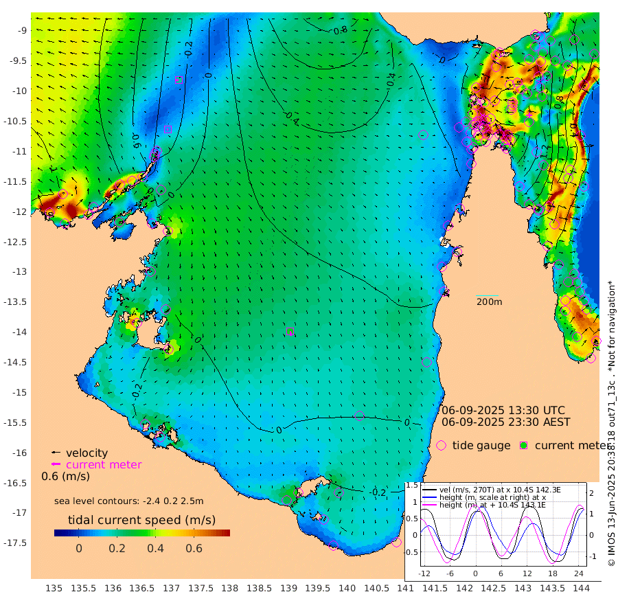 8cm/s -111T +3cm/s rms + 7cm/s -42T. ARA-GOC87 57m 33cm/s 170T +3cm/s rms + 2cm/s -2T. ARA-GOC87 60m 19cm/s -97T +2cm/s rms + 3cm/s 61T. ARA-GOC87 47m 161cm Daru 144cm Bobo Island 44cm Meer Island Barge 84cm Bramble Cay 130cm Unnamed Cay 130cm Pearce Cay 111cm Stephens Island 127cm Merrie England Shoals 167cm Mutacomal Reef 95cm Darnley Island Barge 53cm East Cay 123cm Yorke Island Barge 143cm Rennel Island 135cm Aureed Island 156cm Dungeness Reef 169cm Zagai Island 175cm Yam Island 167cm Dauan Island 155cm Saibai Island 159cm Phipi Reef 186cm Warrior Reef - West 140cm Mabuiag Island Barge 136cm Half Way Island 163cm Coconut Island 155cm Dugong Islet 172cm Poll Island 167cm Kirkcaldie Reef 179cm Suarji Island 163cm Sue Islet 103cm Hawkesbury Island 174cm Alert Patches 177cm Twin Island 110cm Badu Island 184cm St Pauls (Moa Island) 125cm Kubin (Moa Island) 157cm Ince Point 142cm Thursday Island 147cm Nardana Patches 126cm Turtle Head 102cm Round Island 89cm Goods Island 64cm Booby Island 75cm White Rocks Area 42cm Carpentaria 152cm Papou Point 67cm Bampfield Head 49cm Crab Island 80cm Red Wallis Island 120cm Packe Island 171cm Harrington Reef 86cm Herald Camp 56cm Sharp Point 101cm Red Island Point 130cm Possession Island 172cm Alpha Rock 177cm Frederick Point 172cm Wyborn Reef Light 179cm Tetley Island 67cm Triangle Reef 156cm Turtle Head Island 54cm Maclennan Cay 20cm Raine Island 122cm Mcsweeny Reef 104cm Collette Reef 55cm Shadwell Reef 107cm Hannibal Island 89cm Round Point 37cm Vrilya Point 74cm Cape Grenville 60cm Hicks Island 64cm Sir Charles Hardy Island 22cm Harvey Island 50cm Kay Reef 32cm Rocky Island 25cm Chapman Island 22cm Ham Reef 29cm Jubilee Reef 35cm Night Island 27cm Unnamed Reef No. 3 32cm Morris Island 21cm 1st 3 Mile Opening 28cm Creech Reef 42cm Fife Island 18cm Eden Reef 29cm Stanley Island 32cm Normanby River -83cm Yabooma Island -79cm Hutchison River -84cm Elcho Island -81cm North West Crocodile Island -34cm Cape Wessel -56cm Stevens Island -10cm Guluwuru Island -68cm Hopeful Bay -52cm Auster Point -53cm Two Island Bay -54cm Cadell Strait 69cm Mallison Island -14cm Melville Bay (Gove Harbour) -12cm Truant Island -6cm Cape Arnhem -22cm Cape Grey -18cm Hawk Island -47cm Milner Bay (Groote Eylandt) -34cm Cape Beatrice -38cm West Island -48cm Centre Island -25cm Mornington Island -23cm West Wellesley Islands -51cm Bountiful Island -79cm Albert River Mouth -106cm Sweers Island -70cm Karumba 7cm Nassau River Offshore 32cm Christmas Creek 25cm Archer River 39cm Boyd Point 30cm Weipa (Humbug Point) 27cm Pennefather River 39cm Cullen Point