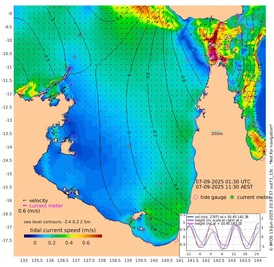 21cm/s 56T +3cm/s rms + 7cm/s -42T. ARA-GOC87 57m 25cm/s 7T +3cm/s rms + 2cm/s -2T. ARA-GOC87 60m 26cm/s 54T +2cm/s rms + 3cm/s 61T. ARA-GOC87 47m 90cm Daru 88cm Bobo Island -1cm Meer Island Barge 32cm Bramble Cay 66cm Unnamed Cay 65cm Pearce Cay 50cm Stephens Island 66cm Merrie England Shoals 90cm Mutacomal Reef 41cm Darnley Island Barge 5cm East Cay 64cm Yorke Island Barge 68cm Rennel Island 72cm Aureed Island 74cm Dungeness Reef 90cm Zagai Island 76cm Yam Island 34cm Dauan Island 47cm Saibai Island 58cm Phipi Reef 81cm Warrior Reef - West 27cm Mabuiag Island Barge 63cm Half Way Island 91cm Coconut Island 69cm Dugong Islet 82cm Poll Island 76cm Kirkcaldie Reef 86cm Suarji Island 83cm Sue Islet -90cm Hawkesbury Island 60cm Alert Patches 65cm Twin Island -56cm Badu Island 69cm St Pauls (Moa Island) -45cm Kubin (Moa Island) 26cm Ince Point 1cm Thursday Island 8cm Nardana Patches -39cm Turtle Head -47cm Round Island -98cm Goods Island -130cm Booby Island -109cm White Rocks Area -115cm Carpentaria 57cm Papou Point -104cm Bampfield Head -107cm Crab Island -119cm Red Wallis Island -72cm Packe Island 93cm Harrington Reef -104cm Herald Camp 32cm Sharp Point -26cm Red Island Point 27cm Possession Island 72cm Alpha Rock 80cm Frederick Point 98cm Wyborn Reef Light 99cm Tetley Island 8cm Triangle Reef 86cm Turtle Head Island -3cm Maclennan Cay -25cm Raine Island 59cm Mcsweeny Reef 49cm Collette Reef 6cm Shadwell Reef 53cm Hannibal Island 32cm Round Point -109cm Vrilya Point 19cm Cape Grenville 11cm Hicks Island -6cm Sir Charles Hardy Island 6cm Harvey Island 1cm Kay Reef -14cm Rocky Island -23cm Chapman Island -26cm Ham Reef -18cm Jubilee Reef -12cm Night Island -24cm Unnamed Reef No. 3 -16cm Morris Island -27cm 1st 3 Mile Opening -22cm Creech Reef -10cm Fife Island -32cm Eden Reef -20cm Stanley Island -14cm Normanby River -22cm Yabooma Island -11cm Hutchison River -15cm Elcho Island -15cm North West Crocodile Island 21cm Cape Wessel 19cm Stevens Island 38cm Guluwuru Island 6cm Hopeful Bay 17cm Auster Point 5cm Two Island Bay 12cm Cadell Strait 96cm Mallison Island 39cm Melville Bay (Gove Harbour) 40cm Truant Island 35cm Cape Arnhem 48cm Cape Grey 49cm Hawk Island 61cm Milner Bay (Groote Eylandt) 48cm Cape Beatrice 58cm West Island 59cm Centre Island 50cm Mornington Island 45cm West Wellesley Islands 52cm Bountiful Island 60cm Albert River Mouth 98cm Sweers Island 59cm Karumba -2cm Nassau River Offshore -39cm Christmas Creek -71cm Archer River -81cm Boyd Point -98cm Weipa (Humbug Point) -72cm Pennefather River -107cm Cullen Point