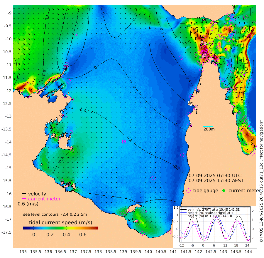 11cm/s 155T +3cm/s rms + 7cm/s -42T. ARA-GOC87 57m 9cm/s 31T +3cm/s rms + 2cm/s -2T. ARA-GOC87 60m 17cm/s 148T +2cm/s rms + 3cm/s 61T. ARA-GOC87 47m -142cm Daru -128cm Bobo Island -29cm Meer Island Barge -68cm Bramble Cay -109cm Unnamed Cay -108cm Pearce Cay -92cm Stephens Island -110cm Merrie England Shoals -141cm Mutacomal Reef -78cm Darnley Island Barge -38cm East Cay -104cm Yorke Island Barge -118cm Rennel Island -114cm Aureed Island -129cm Dungeness Reef -137cm Zagai Island -133cm Yam Island -113cm Dauan Island -103cm Saibai Island -138cm Phipi Reef -149cm Warrior Reef - West -72cm Mabuiag Island Barge -110cm Half Way Island -136cm Coconut Island -121cm Dugong Islet -134cm Poll Island -132cm Kirkcaldie Reef -135cm Suarji Island -126cm Sue Islet 18cm Hawkesbury Island -116cm Alert Patches -119cm Twin Island -6cm Badu Island -125cm St Pauls (Moa Island) -25cm Kubin (Moa Island) -85cm Ince Point -59cm Thursday Island -67cm Nardana Patches -33cm Turtle Head -15cm Round Island 27cm Goods Island 67cm Booby Island 51cm White Rocks Area 87cm Carpentaria -99cm Papou Point 56cm Bampfield Head 49cm Crab Island 49cm Red Wallis Island -11cm Packe Island -140cm Harrington Reef 24cm Herald Camp -48cm Sharp Point -27cm Red Island Point -75cm Possession Island -118cm Alpha Rock -131cm Frederick Point -141cm Wyborn Reef Light -143cm Tetley Island -42cm Triangle Reef -125cm Turtle Head Island -30cm Maclennan Cay -3cm Raine Island -100cm Mcsweeny Reef -88cm Collette Reef -40cm Shadwell Reef -92cm Hannibal Island -72cm Round Point 60cm Vrilya Point -56cm Cape Grenville -45cm Hicks Island -33cm Sir Charles Hardy Island -17cm Harvey Island -31cm Kay Reef -15cm Rocky Island -4cm Chapman Island 0cm Ham Reef -9cm Jubilee Reef -20cm Night Island -4cm Unnamed Reef No. 3 -14cm Morris Island -1cm 1st 3 Mile Opening -9cm Creech Reef -26cm Fife Island 0cm Eden Reef -12cm Stanley Island -15cm Normanby River 86cm Yabooma Island 78cm Hutchison River 80cm Elcho Island 75cm North West Crocodile Island 47cm Cape Wessel 50cm Stevens Island 12cm Guluwuru Island 56cm Hopeful Bay 51cm Auster Point 56cm Two Island Bay 47cm Cadell Strait -74cm Mallison Island 9cm Melville Bay (Gove Harbour) 13cm Truant Island -2cm Cape Arnhem -7cm Cape Grey -27cm Hawk Island -17cm Milner Bay (Groote Eylandt) -27cm Cape Beatrice -34cm West Island -34cm Centre Island -85cm Mornington Island -77cm West Wellesley Islands -74cm Bountiful Island -90cm Albert River Mouth -93cm Sweers Island -101cm Karumba -68cm Nassau River Offshore -45cm Christmas Creek 4cm Archer River 21cm Boyd Point 29cm Weipa (Humbug Point) 24cm Pennefather River 50cm Cullen Point