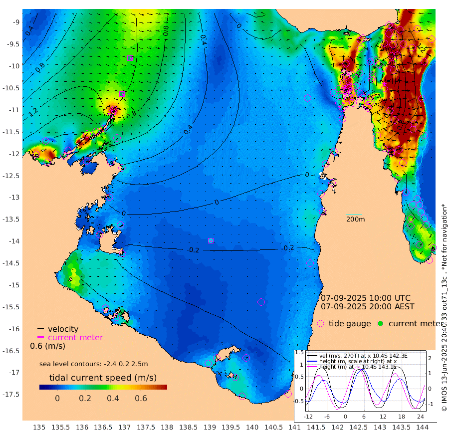 26cm/s 123T +3cm/s rms + 7cm/s -42T. ARA-GOC87 57m 14cm/s 167T +3cm/s rms + 2cm/s -2T. ARA-GOC87 60m 24cm/s 122T +2cm/s rms + 3cm/s 61T. ARA-GOC87 47m 47cm Daru 57cm Bobo Island 102cm Meer Island Barge 106cm Bramble Cay 88cm Unnamed Cay 84cm Pearce Cay 95cm Stephens Island 96cm Merrie England Shoals 60cm Mutacomal Reef 90cm Darnley Island Barge 109cm East Cay 67cm Yorke Island Barge 70cm Rennel Island 54cm Aureed Island 37cm Dungeness Reef -32cm Zagai Island -18cm Yam Island -69cm Dauan Island -75cm Saibai Island -71cm Phipi Reef -38cm Warrior Reef - West -43cm Mabuiag Island Barge 74cm Half Way Island 30cm Coconut Island 62cm Dugong Islet 10cm Poll Island 21cm Kirkcaldie Reef -31cm Suarji Island 1cm Sue Islet 51cm Hawkesbury Island -11cm Alert Patches -8cm Twin Island 18cm Badu Island -28cm St Pauls (Moa Island) 26cm Kubin (Moa Island) -9cm Ince Point -1cm Thursday Island -5cm Nardana Patches 18cm Turtle Head 17cm Round Island 52cm Goods Island 56cm Booby Island 61cm White Rocks Area 35cm Carpentaria -14cm Papou Point 51cm Bampfield Head 33cm Crab Island 49cm Red Wallis Island 34cm Packe Island 52cm Harrington Reef 34cm Herald Camp -29cm Sharp Point 13cm Red Island Point -7cm Possession Island -5cm Alpha Rock 14cm Frederick Point 50cm Wyborn Reef Light 36cm Tetley Island 75cm Triangle Reef 76cm Turtle Head Island 97cm Maclennan Cay 100cm Raine Island 80cm Mcsweeny Reef 81cm Collette Reef 88cm Shadwell Reef 95cm Hannibal Island 111cm Round Point 33cm Vrilya Point 104cm Cape Grenville 104cm Hicks Island 110cm Sir Charles Hardy Island 31cm Harvey Island 115cm Kay Reef 105cm Rocky Island 104cm Chapman Island 101cm Ham Reef 105cm Jubilee Reef 91cm Night Island 103cm Unnamed Reef No. 3 113cm Morris Island 109cm 1st 3 Mile Opening 108cm Creech Reef 104cm Fife Island 137cm Eden Reef 119cm Stanley Island 134cm Normanby River 181cm Yabooma Island 200cm Hutchison River 165cm Elcho Island 156cm North West Crocodile Island 117cm Cape Wessel 150cm Stevens Island 109cm Guluwuru Island 135cm Hopeful Bay 127cm Auster Point 135cm Two Island Bay 171cm Cadell Strait 85cm Mallison Island 92cm Melville Bay (Gove Harbour) 100cm Truant Island 51cm Cape Arnhem 21cm Cape Grey -8cm Hawk Island -43cm Milner Bay (Groote Eylandt) -45cm Cape Beatrice -89cm West Island -99cm Centre Island -102cm Mornington Island -90cm West Wellesley Islands -91cm Bountiful Island -119cm Albert River Mouth -138cm Sweers Island -128cm Karumba -58cm Nassau River Offshore -24cm Christmas Creek 11cm Archer River 20cm Boyd Point 30cm Weipa (Humbug Point) 16cm Pennefather River 22cm Cullen Point