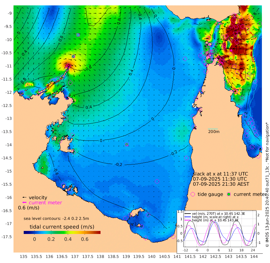 25cm/s 116T +3cm/s rms + 7cm/s -42T. ARA-GOC87 57m 24cm/s 170T +3cm/s rms + 2cm/s -2T. ARA-GOC87 60m 18cm/s 113T +2cm/s rms + 3cm/s 61T. ARA-GOC87 47m 155cm Daru 155cm Bobo Island 126cm Meer Island Barge 159cm Bramble Cay 172cm Unnamed Cay 168cm Pearce Cay 167cm Stephens Island 179cm Merrie England Shoals 169cm Mutacomal Reef 151cm Darnley Island Barge 138cm East Cay 149cm Yorke Island Barge 162cm Rennel Island 143cm Aureed Island 138cm Dungeness Reef 79cm Zagai Island 92cm Yam Island 28cm Dauan Island 17cm Saibai Island 31cm Phipi Reef 81cm Warrior Reef - West 30cm Mabuiag Island Barge 162cm Half Way Island 137cm Coconut Island 160cm Dugong Islet 119cm Poll Island 128cm Kirkcaldie Reef 79cm Suarji Island 105cm Sue Islet 66cm Hawkesbury Island 88cm Alert Patches 95cm Twin Island 48cm Badu Island 80cm St Pauls (Moa Island) 68cm Kubin (Moa Island) 72cm Ince Point 63cm Thursday Island 64cm Nardana Patches 63cm Turtle Head 46cm Round Island 58cm Goods Island 37cm Booby Island 53cm White Rocks Area 6cm Carpentaria 75cm Papou Point 38cm Bampfield Head 18cm Crab Island 42cm Red Wallis Island 65cm Packe Island 163cm Harrington Reef 39cm Herald Camp 8cm Sharp Point 49cm Red Island Point 60cm Possession Island 97cm Alpha Rock 122cm Frederick Point 162cm Wyborn Reef Light 152cm Tetley Island 110cm Triangle Reef 177cm Turtle Head Island 123cm Maclennan Cay 103cm Raine Island 158cm Mcsweeny Reef 147cm Collette Reef 119cm Shadwell Reef 165cm Hannibal Island 165cm Round Point 11cm Vrilya Point 147cm Cape Grenville 138cm Hicks Island 141cm Sir Charles Hardy Island 44cm Harvey Island 140cm Kay Reef 117cm Rocky Island 109cm Chapman Island 105cm Ham Reef 115cm Jubilee Reef 106cm Night Island 109cm Unnamed Reef No. 3 125cm Morris Island 112cm 1st 3 Mile Opening 116cm Creech Reef 124cm Fife Island 138cm Eden Reef 129cm Stanley Island 147cm Normanby River 131cm Yabooma Island 156cm Hutchison River 118cm Elcho Island 111cm North West Crocodile Island 101cm Cape Wessel 126cm Stevens Island 118cm Guluwuru Island 101cm Hopeful Bay 103cm Auster Point 109cm Two Island Bay 152cm Cadell Strait 156cm Mallison Island 98cm Melville Bay (Gove Harbour) 106cm Truant Island 60cm Cape Arnhem 25cm Cape Grey 1cm Hawk Island -47cm Milner Bay (Groote Eylandt) -44cm Cape Beatrice -89cm West Island -104cm Centre Island -86cm Mornington Island -75cm West Wellesley Islands -87cm Bountiful Island -118cm Albert River Mouth -143cm Sweers Island -122cm Karumba -41cm Nassau River Offshore -10cm Christmas Creek 5cm Archer River 14cm Boyd Point 15cm Weipa (Humbug Point) 6cm Pennefather River 4cm Cullen Point