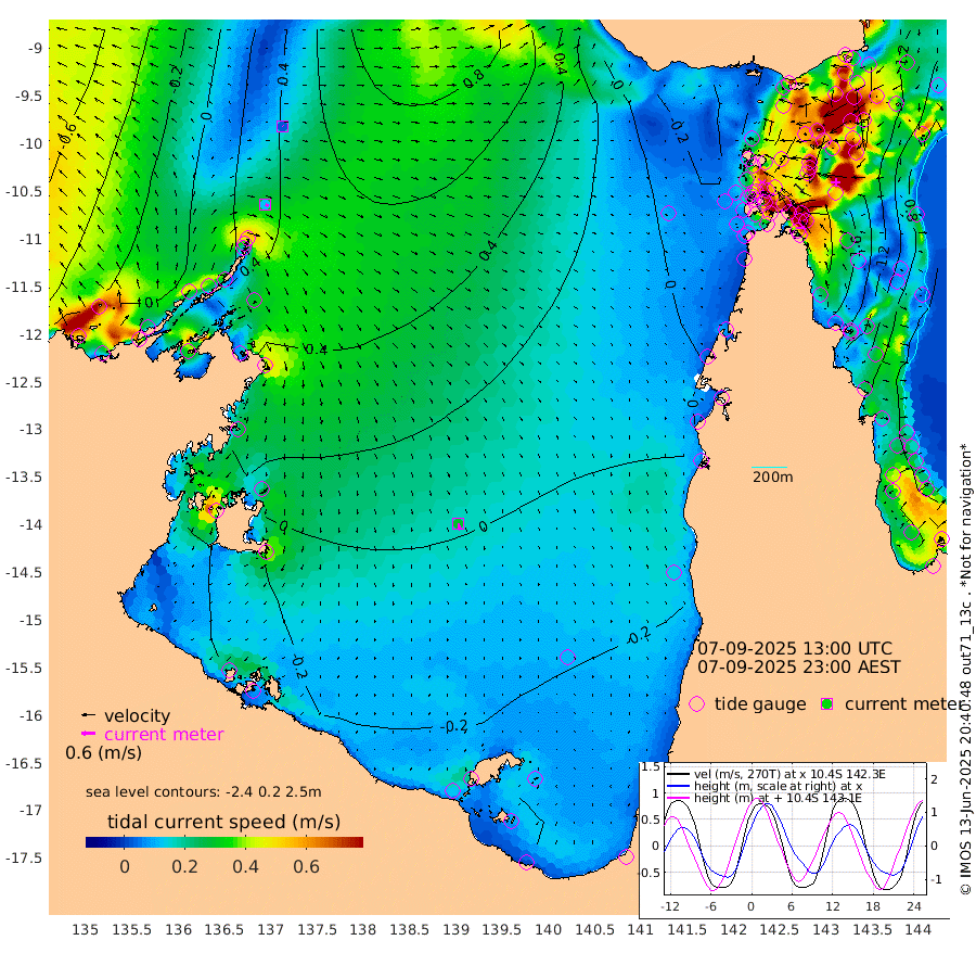 13cm/s 115T +3cm/s rms + 7cm/s -42T. ARA-GOC87 57m 30cm/s 169T +3cm/s rms + 2cm/s -2T. ARA-GOC87 60m 3cm/s 136T +2cm/s rms + 3cm/s 61T. ARA-GOC87 47m 189cm Daru 178cm Bobo Island 89cm Meer Island Barge 133cm Bramble Cay 173cm Unnamed Cay 171cm Pearce Cay 157cm Stephens Island 173cm Merrie England Shoals 197cm Mutacomal Reef 139cm Darnley Island Barge 100cm East Cay 159cm Yorke Island Barge 176cm Rennel Island 163cm Aureed Island 174cm Dungeness Reef 158cm Zagai Island 166cm Yam Island 126cm Dauan Island 115cm Saibai Island 122cm Phipi Reef 169cm Warrior Reef - West 104cm Mabuiag Island Barge 172cm Half Way Island 179cm Coconut Island 184cm Dugong Islet 175cm Poll Island 177cm Kirkcaldie Reef 158cm Suarji Island 165cm Sue Islet 76cm Hawkesbury Island 155cm Alert Patches 162cm Twin Island 78cm Badu Island 161cm St Pauls (Moa Island) 100cm Kubin (Moa Island) 132cm Ince Point 114cm Thursday Island 119cm Nardana Patches 97cm Turtle Head 71cm Round Island 62cm Goods Island 30cm Booby Island 46cm White Rocks Area 4cm Carpentaria 138cm Papou Point 31cm Bampfield Head 17cm Crab Island 44cm Red Wallis Island 88cm Packe Island 196cm Harrington Reef 49cm Herald Camp 44cm Sharp Point 78cm Red Island Point 107cm Possession Island 162cm Alpha Rock 178cm Frederick Point 197cm Wyborn Reef Light 197cm Tetley Island 95cm Triangle Reef 195cm Turtle Head Island 92cm Maclennan Cay 58cm Raine Island 160cm Mcsweeny Reef 142cm Collette Reef 92cm Shadwell Reef 153cm Hannibal Island 138cm Round Point 6cm Vrilya Point 118cm Cape Grenville 105cm Hicks Island 107cm Sir Charles Hardy Island 35cm Harvey Island 97cm Kay Reef 73cm Rocky Island 62cm Chapman Island 59cm Ham Reef 71cm Jubilee Reef 70cm Night Island 64cm Unnamed Reef No. 3 77cm Morris Island 63cm 1st 3 Mile Opening 70cm Creech Reef 83cm Fife Island 73cm Eden Reef 76cm Stanley Island 88cm Normanby River 14cm Yabooma Island 33cm Hutchison River 8cm Elcho Island 7cm North West Crocodile Island 38cm Cape Wessel 35cm Stevens Island 70cm Guluwuru Island 11cm Hopeful Bay 25cm Auster Point 30cm Two Island Bay 56cm Cadell Strait 153cm Mallison Island 53cm Melville Bay (Gove Harbour) 59cm Truant Island 37cm Cape Arnhem 9cm Cape Grey -3cm Hawk Island -45cm Milner Bay (Groote Eylandt) -37cm Cape Beatrice -63cm West Island -78cm Centre Island -54cm Mornington Island -48cm West Wellesley Islands -71cm Bountiful Island -100cm Albert River Mouth -128cm Sweers Island -98cm Karumba -19cm Nassau River Offshore 7cm Christmas Creek 3cm Archer River 15cm Boyd Point 6cm Weipa (Humbug Point) 5cm Pennefather River 5cm Cullen Point