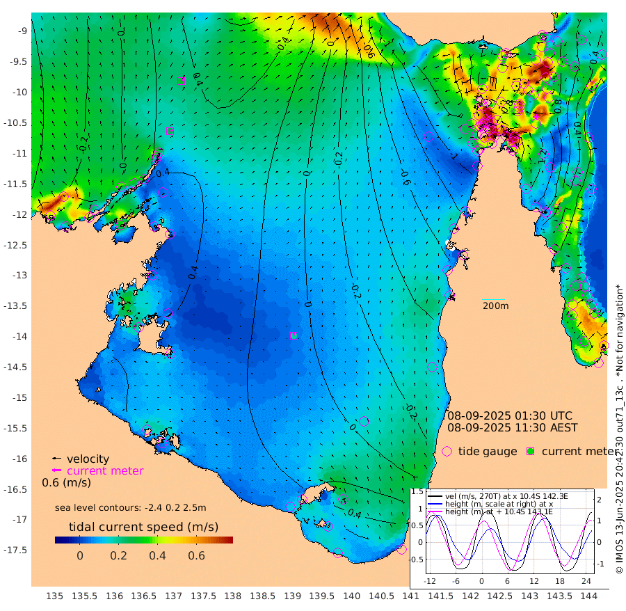 25cm/s 68T +3cm/s rms + 7cm/s -42T. ARA-GOC87 57m 18cm/s 2T +3cm/s rms + 2cm/s -2T. ARA-GOC87 60m 30cm/s 58T +2cm/s rms + 3cm/s 61T. ARA-GOC87 47m 120cm Daru 118cm Bobo Island 33cm Meer Island Barge 67cm Bramble Cay 101cm Unnamed Cay 99cm Pearce Cay 87cm Stephens Island 101cm Merrie England Shoals 118cm Mutacomal Reef 77cm Darnley Island Barge 39cm East Cay 96cm Yorke Island Barge 99cm Rennel Island 101cm Aureed Island 101cm Dungeness Reef 101cm Zagai Island 87cm Yam Island 39cm Dauan Island 43cm Saibai Island 71cm Phipi Reef 94cm Warrior Reef - West 19cm Mabuiag Island Barge 94cm Half Way Island 114cm Coconut Island 97cm Dugong Islet 99cm Poll Island 96cm Kirkcaldie Reef 93cm Suarji Island 96cm Sue Islet -93cm Hawkesbury Island 67cm Alert Patches 72cm Twin Island -60cm Badu Island 74cm St Pauls (Moa Island) -43cm Kubin (Moa Island) 28cm Ince Point 0cm Thursday Island 8cm Nardana Patches -36cm Turtle Head -44cm Round Island -98cm Goods Island -136cm Booby Island -117cm White Rocks Area -133cm Carpentaria 60cm Papou Point -106cm Bampfield Head -112cm Crab Island -128cm Red Wallis Island -70cm Packe Island 119cm Harrington Reef -102cm Herald Camp 30cm Sharp Point -30cm Red Island Point 33cm Possession Island 77cm Alpha Rock 94cm Frederick Point 123cm Wyborn Reef Light 120cm Tetley Island 34cm Triangle Reef 118cm Turtle Head Island 27cm Maclennan Cay 5cm Raine Island 91cm Mcsweeny Reef 81cm Collette Reef 38cm Shadwell Reef 90cm Hannibal Island 69cm Round Point -118cm Vrilya Point 53cm Cape Grenville 45cm Hicks Island 27cm Sir Charles Hardy Island 17cm Harvey Island 34cm Kay Reef 17cm Rocky Island 5cm Chapman Island 1cm Ham Reef 12cm Jubilee Reef 17cm Night Island 3cm Unnamed Reef No. 3 17cm Morris Island 6cm 1st 3 Mile Opening 10cm Creech Reef 23cm Fife Island 7cm Eden Reef 14cm Stanley Island 22cm Normanby River 0cm Yabooma Island 20cm Hutchison River 7cm Elcho Island 3cm North West Crocodile Island 33cm Cape Wessel 40cm Stevens Island 65cm Guluwuru Island 26cm Hopeful Bay 35cm Auster Point 25cm Two Island Bay 46cm Cadell Strait 137cm Mallison Island 63cm Melville Bay (Gove Harbour) 64cm Truant Island 52cm Cape Arnhem 57cm Cape Grey 58cm Hawk Island 57cm Milner Bay (Groote Eylandt) 44cm Cape Beatrice 43cm West Island 44cm Centre Island 57cm Mornington Island 49cm West Wellesley Islands 60cm Bountiful Island 69cm Albert River Mouth 106cm Sweers Island 71cm Karumba 11cm Nassau River Offshore -24cm Christmas Creek -62cm Archer River -77cm Boyd Point -91cm Weipa (Humbug Point) -71cm Pennefather River -112cm Cullen Point