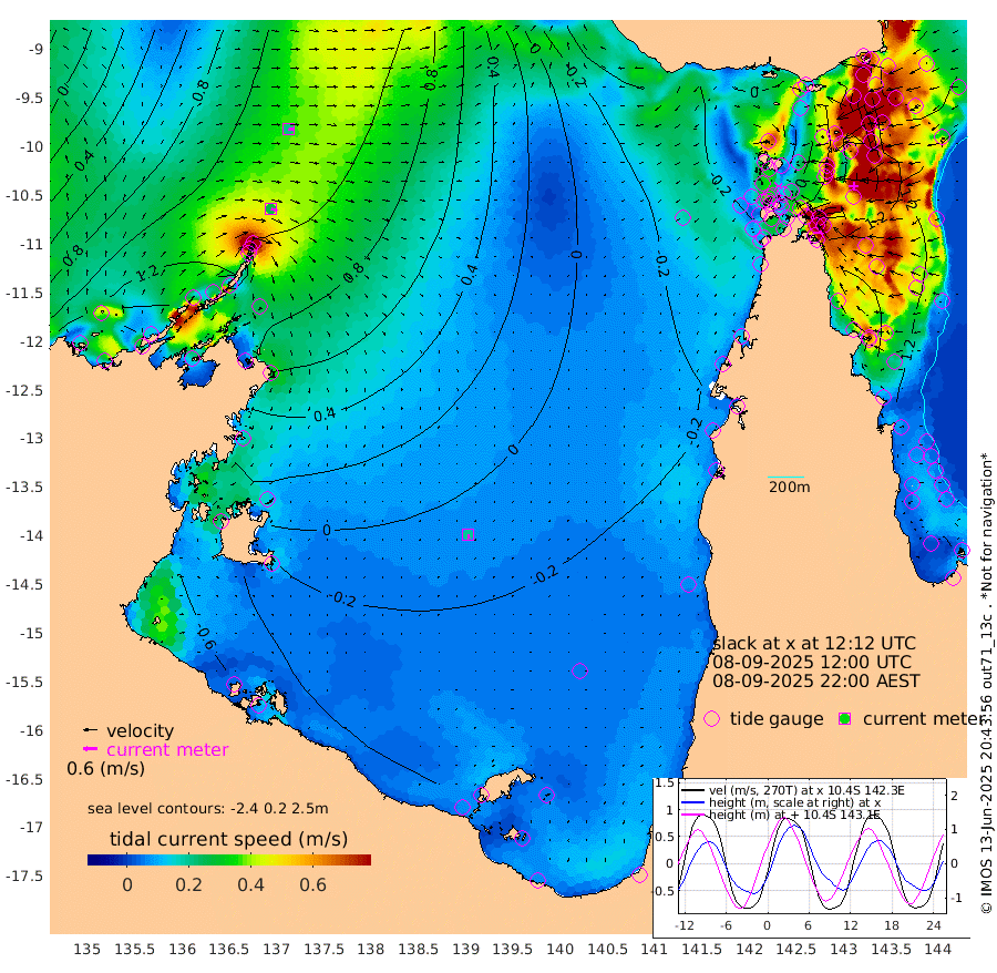 26cm/s 111T +3cm/s rms + 7cm/s -42T. ARA-GOC87 57m 20cm/s 174T +3cm/s rms + 2cm/s -2T. ARA-GOC87 60m 21cm/s 102T +2cm/s rms + 3cm/s 61T. ARA-GOC87 47m 147cm Daru 150cm Bobo Island 118cm Meer Island Barge 148cm Bramble Cay 160cm Unnamed Cay 162cm Pearce Cay 158cm Stephens Island 164cm Merrie England Shoals 156cm Mutacomal Reef 142cm Darnley Island Barge 130cm East Cay 141cm Yorke Island Barge 153cm Rennel Island 137cm Aureed Island 131cm Dungeness Reef 77cm Zagai Island 89cm Yam Island 29cm Dauan Island 18cm Saibai Island 32cm Phipi Reef 81cm Warrior Reef - West 25cm Mabuiag Island Barge 151cm Half Way Island 129cm Coconut Island 150cm Dugong Islet 112cm Poll Island 119cm Kirkcaldie Reef 75cm Suarji Island 98cm Sue Islet 51cm Hawkesbury Island 77cm Alert Patches 86cm Twin Island 36cm Badu Island 73cm St Pauls (Moa Island) 56cm Kubin (Moa Island) 61cm Ince Point 51cm Thursday Island 52cm Nardana Patches 49cm Turtle Head 33cm Round Island 41cm Goods Island 16cm Booby Island 34cm White Rocks Area -20cm Carpentaria 70cm Papou Point 16cm Bampfield Head -1cm Crab Island 20cm Red Wallis Island 47cm Packe Island 153cm Harrington Reef 21cm Herald Camp 6cm Sharp Point 40cm Red Island Point 51cm Possession Island 86cm Alpha Rock 113cm Frederick Point 151cm Wyborn Reef Light 141cm Tetley Island 102cm Triangle Reef 167cm Turtle Head Island 115cm Maclennan Cay 95cm Raine Island 147cm Mcsweeny Reef 136cm Collette Reef 108cm Shadwell Reef 152cm Hannibal Island 154cm Round Point -13cm Vrilya Point 134cm Cape Grenville 130cm Hicks Island 131cm Sir Charles Hardy Island 41cm Harvey Island 127cm Kay Reef 109cm Rocky Island 100cm Chapman Island 96cm Ham Reef 106cm Jubilee Reef 97cm Night Island 99cm Unnamed Reef No. 3 116cm Morris Island 103cm 1st 3 Mile Opening 107cm Creech Reef 116cm Fife Island 128cm Eden Reef 116cm Stanley Island 137cm Normanby River 164cm Yabooma Island 197cm Hutchison River 152cm Elcho Island 146cm North West Crocodile Island 123cm Cape Wessel 153cm Stevens Island 137cm Guluwuru Island 127cm Hopeful Bay 127cm Auster Point 135cm Two Island Bay 188cm Cadell Strait 143cm Mallison Island 117cm Melville Bay (Gove Harbour) 125cm Truant Island 73cm Cape Arnhem 38cm Cape Grey 12cm Hawk Island -38cm Milner Bay (Groote Eylandt) -36cm Cape Beatrice -84cm West Island -101cm Centre Island -77cm Mornington Island -69cm West Wellesley Islands -69cm Bountiful Island -94cm Albert River Mouth -115cm Sweers Island -98cm Karumba -41cm Nassau River Offshore -18cm Christmas Creek -8cm Archer River -1cm Boyd Point 1cm Weipa (Humbug Point) -13cm Pennefather River -16cm Cullen Point