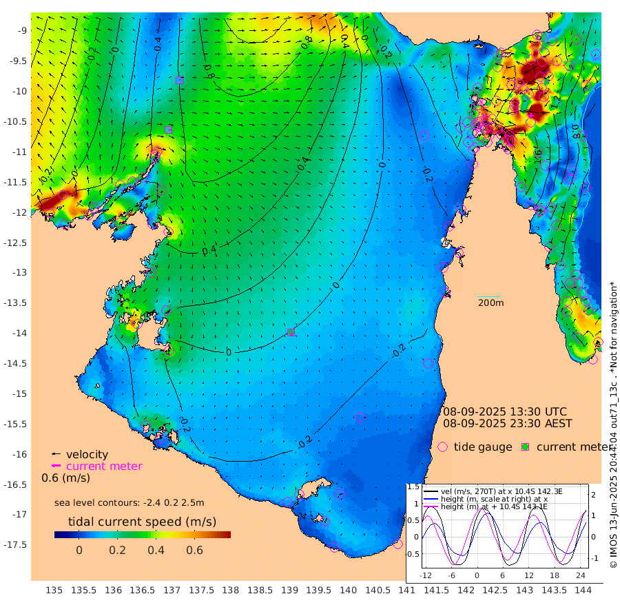 18cm/s 101T +3cm/s rms + 7cm/s -42T. ARA-GOC87 57m 26cm/s 169T +3cm/s rms + 2cm/s -2T. ARA-GOC87 60m 9cm/s 80T +2cm/s rms + 3cm/s 61T. ARA-GOC87 47m 179cm Daru 170cm Bobo Island 82cm Meer Island Barge 123cm Bramble Cay 160cm Unnamed Cay 161cm Pearce Cay 147cm Stephens Island 158cm Merrie England Shoals 182cm Mutacomal Reef 131cm Darnley Island Barge 92cm East Cay 151cm Yorke Island Barge 164cm Rennel Island 154cm Aureed Island 163cm Dungeness Reef 152cm Zagai Island 158cm Yam Island 120cm Dauan Island 111cm Saibai Island 115cm Phipi Reef 163cm Warrior Reef - West 91cm Mabuiag Island Barge 161cm Half Way Island 166cm Coconut Island 172cm Dugong Islet 164cm Poll Island 165cm Kirkcaldie Reef 143cm Suarji Island 155cm Sue Islet 49cm Hawkesbury Island 135cm Alert Patches 145cm Twin Island 54cm Badu Island 147cm St Pauls (Moa Island) 77cm Kubin (Moa Island) 113cm Ince Point 93cm Thursday Island 98cm Nardana Patches 72cm Turtle Head 45cm Round Island 32cm Goods Island -3cm Booby Island 13cm White Rocks Area -25cm Carpentaria 127cm Papou Point -4cm Bampfield Head -10cm Crab Island 11cm Red Wallis Island 58cm Packe Island 183cm Harrington Reef 19cm Herald Camp 41cm Sharp Point 59cm Red Island Point 89cm Possession Island 146cm Alpha Rock 163cm Frederick Point 183cm Wyborn Reef Light 183cm Tetley Island 86cm Triangle Reef 182cm Turtle Head Island 84cm Maclennan Cay 50cm Raine Island 148cm Mcsweeny Reef 130cm Collette Reef 82cm Shadwell Reef 141cm Hannibal Island 125cm Round Point -21cm Vrilya Point 105cm Cape Grenville 97cm Hicks Island 98cm Sir Charles Hardy Island 33cm Harvey Island 85cm Kay Reef 65cm Rocky Island 52cm Chapman Island 51cm Ham Reef 63cm Jubilee Reef 61cm Night Island 54cm Unnamed Reef No. 3 68cm Morris Island 54cm 1st 3 Mile Opening 61cm Creech Reef 74cm Fife Island 64cm Eden Reef 65cm Stanley Island 79cm Normanby River 37cm Yabooma Island 63cm Hutchison River 34cm Elcho Island 33cm North West Crocodile Island 59cm Cape Wessel 57cm Stevens Island 96cm Guluwuru Island 31cm Hopeful Bay 46cm Auster Point 55cm Two Island Bay 91cm Cadell Strait 169cm Mallison Island 75cm Melville Bay (Gove Harbour) 81cm Truant Island 53cm Cape Arnhem 24cm Cape Grey 7cm Hawk Island -35cm Milner Bay (Groote Eylandt) -30cm Cape Beatrice -60cm West Island -75cm Centre Island -50cm Mornington Island -46cm West Wellesley Islands -62cm Bountiful Island -83cm Albert River Mouth -109cm Sweers Island -84cm Karumba -25cm Nassau River Offshore -6cm Christmas Creek -15cm Archer River -4cm Boyd Point -14cm Weipa (Humbug Point) -17cm Pennefather River -21cm Cullen Point