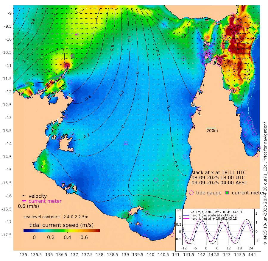 34cm/s -84T +3cm/s rms + 7cm/s -42T. ARA-GOC87 57m 11cm/s -177T +3cm/s rms + 2cm/s -2T. ARA-GOC87 60m 38cm/s -94T +2cm/s rms + 3cm/s 61T. ARA-GOC87 47m -104cm Daru -116cm Bobo Island -97cm Meer Island Barge -119cm Bramble Cay -124cm Unnamed Cay -125cm Pearce Cay -123cm Stephens Island -127cm Merrie England Shoals -109cm Mutacomal Reef -113cm Darnley Island Barge -106cm East Cay -107cm Yorke Island Barge -110cm Rennel Island -104cm Aureed Island -87cm Dungeness Reef -34cm Zagai Island -31cm Yam Island 38cm Dauan Island 39cm Saibai Island 11cm Phipi Reef -23cm Warrior Reef - West 30cm Mabuiag Island Barge -107cm Half Way Island -90cm Coconut Island -99cm Dugong Islet -62cm Poll Island -65cm Kirkcaldie Reef -35cm Suarji Island -53cm Sue Islet 41cm Hawkesbury Island -24cm Alert Patches -29cm Twin Island 41cm Badu Island -15cm St Pauls (Moa Island) 24cm Kubin (Moa Island) 3cm Ince Point 16cm Thursday Island 14cm Nardana Patches 26cm Turtle Head 27cm Round Island 42cm Goods Island 67cm Booby Island 47cm White Rocks Area 85cm Carpentaria -19cm Papou Point 41cm Bampfield Head 70cm Crab Island 71cm Red Wallis Island 42cm Packe Island -108cm Harrington Reef 57cm Herald Camp 8cm Sharp Point 23cm Red Island Point -11cm Possession Island -32cm Alpha Rock -61cm Frederick Point -108cm Wyborn Reef Light -95cm Tetley Island -75cm Triangle Reef -127cm Turtle Head Island -87cm Maclennan Cay -76cm Raine Island -113cm Mcsweeny Reef -107cm Collette Reef -86cm Shadwell Reef -123cm Hannibal Island -124cm Round Point 79cm Vrilya Point -107cm Cape Grenville -106cm Hicks Island -96cm Sir Charles Hardy Island -33cm Harvey Island -103cm Kay Reef -89cm Rocky Island -81cm Chapman Island -75cm Ham Reef -84cm Jubilee Reef -76cm Night Island -76cm Unnamed Reef No. 3 -95cm Morris Island -85cm 1st 3 Mile Opening -85cm Creech Reef -91cm Fife Island -107cm Eden Reef -94cm Stanley Island -113cm Normanby River -184cm Yabooma Island -218cm Hutchison River -176cm Elcho Island -164cm North West Crocodile Island -139cm Cape Wessel -178cm Stevens Island -147cm Guluwuru Island -158cm Hopeful Bay -155cm Auster Point -150cm Two Island Bay -198cm Cadell Strait -129cm Mallison Island -137cm Melville Bay (Gove Harbour) -143cm Truant Island -90cm Cape Arnhem -73cm Cape Grey -50cm Hawk Island -23cm Milner Bay (Groote Eylandt) -7cm Cape Beatrice 30cm West Island 37cm Centre Island 30cm Mornington Island 28cm West Wellesley Islands 2cm Bountiful Island 18cm Albert River Mouth -7cm Sweers Island 24cm Karumba 39cm Nassau River Offshore 47cm Christmas Creek 47cm Archer River 52cm Boyd Point 52cm Weipa (Humbug Point) 56cm Pennefather River 79cm Cullen Point