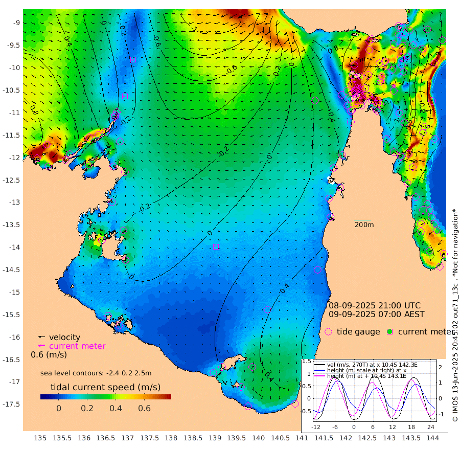 15cm/s -108T +3cm/s rms + 7cm/s -42T. ARA-GOC87 57m 13cm/s -69T +3cm/s rms + 2cm/s -2T. ARA-GOC87 60m 11cm/s -124T +2cm/s rms + 3cm/s 61T. ARA-GOC87 47m -105cm Daru -98cm Bobo Island -10cm Meer Island Barge -35cm Bramble Cay -76cm Unnamed Cay -73cm Pearce Cay -59cm Stephens Island -67cm Merrie England Shoals -103cm Mutacomal Reef -55cm Darnley Island Barge -9cm East Cay -83cm Yorke Island Barge -81cm Rennel Island -87cm Aureed Island -96cm Dungeness Reef -133cm Zagai Island -124cm Yam Island -110cm Dauan Island -124cm Saibai Island -97cm Phipi Reef -131cm Warrior Reef - West -95cm Mabuiag Island Barge -79cm Half Way Island -107cm Coconut Island -96cm Dugong Islet -114cm Poll Island -107cm Kirkcaldie Reef -124cm Suarji Island -124cm Sue Islet 2cm Hawkesbury Island -105cm Alert Patches -111cm Twin Island -20cm Badu Island -124cm St Pauls (Moa Island) -32cm Kubin (Moa Island) -85cm Ince Point -65cm Thursday Island -71cm Nardana Patches -29cm Turtle Head -14cm Round Island 19cm Goods Island 42cm Booby Island 33cm White Rocks Area 18cm Carpentaria -104cm Papou Point 24cm Bampfield Head 46cm Crab Island 34cm Red Wallis Island -1cm Packe Island -110cm Harrington Reef 21cm Herald Camp -44cm Sharp Point -24cm Red Island Point -67cm Possession Island -117cm Alpha Rock -114cm Frederick Point -116cm Wyborn Reef Light -122cm Tetley Island -24cm Triangle Reef -104cm Turtle Head Island -12cm Maclennan Cay 19cm Raine Island -70cm Mcsweeny Reef -55cm Collette Reef -15cm Shadwell Reef -56cm Hannibal Island -31cm Round Point 47cm Vrilya Point -23cm Cape Grenville -15cm Hicks Island -19cm Sir Charles Hardy Island -7cm Harvey Island -5cm Kay Reef 7cm Rocky Island 18cm Chapman Island 14cm Ham Reef 7cm Jubilee Reef 8cm Night Island 16cm Unnamed Reef No. 3 11cm Morris Island 16cm 1st 3 Mile Opening 13cm Creech Reef 9cm Fife Island 26cm Eden Reef 15cm Stanley Island 13cm Normanby River 55cm Yabooma Island 46cm Hutchison River 52cm Elcho Island 52cm North West Crocodile Island -21cm Cape Wessel 16cm Stevens Island -55cm Guluwuru Island 32cm Hopeful Bay 2cm Auster Point 2cm Two Island Bay 5cm Cadell Strait -138cm Mallison Island -39cm Melville Bay (Gove Harbour) -46cm Truant Island -37cm Cape Arnhem -30cm Cape Grey -14cm Hawk Island -4cm Milner Bay (Groote Eylandt) 6cm Cape Beatrice 5cm West Island 14cm Centre Island 42cm Mornington Island 39cm West Wellesley Islands 48cm Bountiful Island 85cm Albert River Mouth 77cm Sweers Island 89cm Karumba 55cm Nassau River Offshore 50cm Christmas Creek 55cm Archer River 34cm Boyd Point 56cm Weipa (Humbug Point) 44cm Pennefather River 44cm Cullen Point