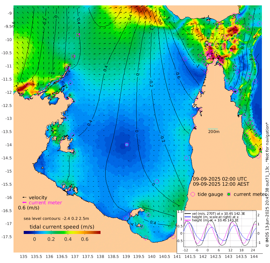 28cm/s 77T +3cm/s rms + 7cm/s -42T. ARA-GOC87 57m 11cm/s 4T +3cm/s rms + 2cm/s -2T. ARA-GOC87 60m 31cm/s 64T +2cm/s rms + 3cm/s 61T. ARA-GOC87 47m 128cm Daru 125cm Bobo Island 44cm Meer Island Barge 75cm Bramble Cay 107cm Unnamed Cay 107cm Pearce Cay 96cm Stephens Island 105cm Merrie England Shoals 121cm Mutacomal Reef 87cm Darnley Island Barge 48cm East Cay 105cm Yorke Island Barge 105cm Rennel Island 110cm Aureed Island 110cm Dungeness Reef 110cm Zagai Island 94cm Yam Island 55cm Dauan Island 53cm Saibai Island 86cm Phipi Reef 106cm Warrior Reef - West 24cm Mabuiag Island Barge 102cm Half Way Island 120cm Coconut Island 104cm Dugong Islet 105cm Poll Island 102cm Kirkcaldie Reef 99cm Suarji Island 102cm Sue Islet -87cm Hawkesbury Island 72cm Alert Patches 77cm Twin Island -51cm Badu Island 81cm St Pauls (Moa Island) -33cm Kubin (Moa Island) 34cm Ince Point 7cm Thursday Island 15cm Nardana Patches -26cm Turtle Head -37cm Round Island -87cm Goods Island -126cm Booby Island -111cm White Rocks Area -126cm Carpentaria 64cm Papou Point -96cm Bampfield Head -104cm Crab Island -120cm Red Wallis Island -60cm Packe Island 124cm Harrington Reef -91cm Herald Camp 30cm Sharp Point -27cm Red Island Point 39cm Possession Island 79cm Alpha Rock 99cm Frederick Point 127cm Wyborn Reef Light 124cm Tetley Island 43cm Triangle Reef 125cm Turtle Head Island 36cm Maclennan Cay 14cm Raine Island 98cm Mcsweeny Reef 88cm Collette Reef 46cm Shadwell Reef 97cm Hannibal Island 75cm Round Point -111cm Vrilya Point 59cm Cape Grenville 54cm Hicks Island 38cm Sir Charles Hardy Island 19cm Harvey Island 39cm Kay Reef 26cm Rocky Island 13cm Chapman Island 10cm Ham Reef 21cm Jubilee Reef 27cm Night Island 11cm Unnamed Reef No. 3 26cm Morris Island 18cm 1st 3 Mile Opening 20cm Creech Reef 32cm Fife Island 19cm Eden Reef 23cm Stanley Island 29cm Normanby River -3cm Yabooma Island 22cm Hutchison River 6cm Elcho Island -1cm North West Crocodile Island 35cm Cape Wessel 38cm Stevens Island 79cm Guluwuru Island 23cm Hopeful Bay 36cm Auster Point 28cm Two Island Bay 54cm Cadell Strait 160cm Mallison Island 72cm Melville Bay (Gove Harbour) 74cm Truant Island 61cm Cape Arnhem 58cm Cape Grey 57cm Hawk Island 47cm Milner Bay (Groote Eylandt) 35cm Cape Beatrice 27cm West Island 28cm Centre Island 50cm Mornington Island 41cm West Wellesley Islands 50cm Bountiful Island 57cm Albert River Mouth 89cm Sweers Island 59cm Karumba 12cm Nassau River Offshore -16cm Christmas Creek -54cm Archer River -67cm Boyd Point -80cm Weipa (Humbug Point) -64cm Pennefather River -103cm Cullen Point