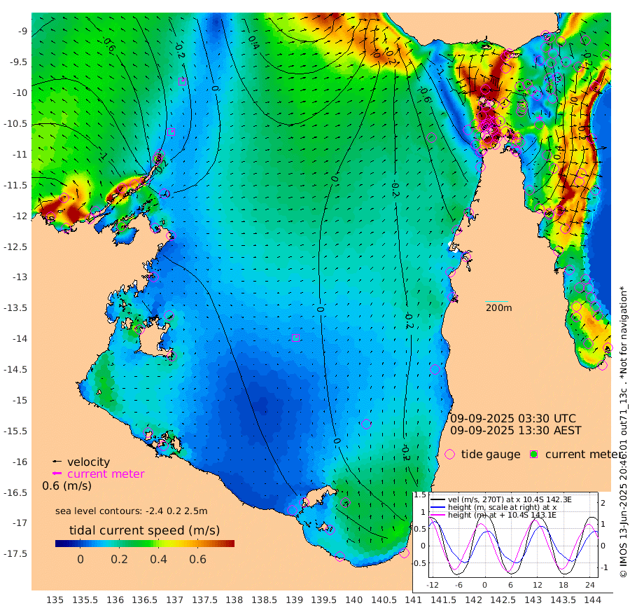 15cm/s 48T +3cm/s rms + 7cm/s -42T. ARA-GOC87 57m 15cm/s 29T +3cm/s rms + 2cm/s -2T. ARA-GOC87 60m 17cm/s 39T +2cm/s rms + 3cm/s 61T. ARA-GOC87 47m 61cm Daru 53cm Bobo Island -24cm Meer Island Barge -8cm Bramble Cay 28cm Unnamed Cay 23cm Pearce Cay 12cm Stephens Island 21cm Merrie England Shoals 52cm Mutacomal Reef 14cm Darnley Island Barge -29cm East Cay 39cm Yorke Island Barge 31cm Rennel Island 45cm Aureed Island 53cm Dungeness Reef 97cm Zagai Island 78cm Yam Island 74cm Dauan Island 88cm Saibai Island 84cm Phipi Reef 91cm Warrior Reef - West 52cm Mabuiag Island Barge 30cm Half Way Island 66cm Coconut Island 41cm Dugong Islet 68cm Poll Island 60cm Kirkcaldie Reef 88cm Suarji Island 79cm Sue Islet -77cm Hawkesbury Island 61cm Alert Patches 64cm Twin Island -37cm Badu Island 78cm St Pauls (Moa Island) -30cm Kubin (Moa Island) 36cm Ince Point 14cm Thursday Island 21cm Nardana Patches -24cm Turtle Head -29cm Round Island -81cm Goods Island -103cm Booby Island -98cm White Rocks Area -69cm Carpentaria 58cm Papou Point -74cm Bampfield Head -84cm Crab Island -97cm Red Wallis Island -57cm Packe Island 58cm Harrington Reef -74cm Herald Camp 39cm Sharp Point -24cm Red Island Point 34cm Possession Island 68cm Alpha Rock 64cm Frederick Point 64cm Wyborn Reef Light 70cm Tetley Island -10cm Triangle Reef 49cm Turtle Head Island -26cm Maclennan Cay -46cm Raine Island 25cm Mcsweeny Reef 17cm Collette Reef -15cm Shadwell Reef 15cm Hannibal Island -12cm Round Point -81cm Vrilya Point -15cm Cape Grenville -21cm Hicks Island -29cm Sir Charles Hardy Island -4cm Harvey Island -33cm Kay Reef -39cm Rocky Island -48cm Chapman Island -46cm Ham Reef -41cm Jubilee Reef -33cm Night Island -48cm Unnamed Reef No. 3 -44cm Morris Island -45cm 1st 3 Mile Opening -44cm Creech Reef -41cm Fife Island -62cm Eden Reef -48cm Stanley Island -54cm Normanby River -124cm Yabooma Island -123cm Hutchison River -112cm Elcho Island -113cm North West Crocodile Island -35cm Cape Wessel -72cm Stevens Island 4cm Guluwuru Island -75cm Hopeful Bay -50cm Auster Point -59cm Two Island Bay -75cm Cadell Strait 105cm Mallison Island 1cm Melville Bay (Gove Harbour) 2cm Truant Island 17cm Cape Arnhem 29cm Cape Grey 33cm Hawk Island 48cm Milner Bay (Groote Eylandt) 34cm Cape Beatrice 55cm West Island 60cm Centre Island 43cm Mornington Island 36cm West Wellesley Islands 34cm Bountiful Island 27cm Albert River Mouth 62cm Sweers Island 28cm Karumba -4cm Nassau River Offshore -27cm Christmas Creek -56cm Archer River -55cm Boyd Point -75cm Weipa (Humbug Point) -51cm Pennefather River -74cm Cullen Point