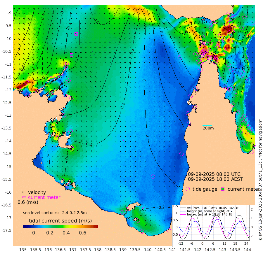 21cm/s -95T +3cm/s rms + 7cm/s -42T. ARA-GOC87 57m 11cm/s 14T +3cm/s rms + 2cm/s -2T. ARA-GOC87 60m 18cm/s -122T +2cm/s rms + 3cm/s 61T. ARA-GOC87 47m -148cm Daru -140cm Bobo Island -56cm Meer Island Barge -90cm Bramble Cay -122cm Unnamed Cay -126cm Pearce Cay -113cm Stephens Island -122cm Merrie England Shoals -141cm Mutacomal Reef -100cm Darnley Island Barge -63cm East Cay -118cm Yorke Island Barge -127cm Rennel Island -123cm Aureed Island -131cm Dungeness Reef -127cm Zagai Island -122cm Yam Island -95cm Dauan Island -79cm Saibai Island -112cm Phipi Reef -137cm Warrior Reef - West -47cm Mabuiag Island Barge -125cm Half Way Island -135cm Coconut Island -129cm Dugong Islet -128cm Poll Island -129cm Kirkcaldie Reef -108cm Suarji Island -117cm Sue Islet 30cm Hawkesbury Island -92cm Alert Patches -101cm Twin Island 6cm Badu Island -105cm St Pauls (Moa Island) -16cm Kubin (Moa Island) -65cm Ince Point -41cm Thursday Island -48cm Nardana Patches -18cm Turtle Head 6cm Round Island 35cm Goods Island 76cm Booby Island 63cm White Rocks Area 97cm Carpentaria -87cm Papou Point 76cm Bampfield Head 54cm Crab Island 60cm Red Wallis Island 2cm Packe Island -142cm Harrington Reef 43cm Herald Camp -36cm Sharp Point -12cm Red Island Point -52cm Possession Island -99cm Alpha Rock -121cm Frederick Point -141cm Wyborn Reef Light -140cm Tetley Island -58cm Triangle Reef -138cm Turtle Head Island -52cm Maclennan Cay -28cm Raine Island -113cm Mcsweeny Reef -100cm Collette Reef -58cm Shadwell Reef -109cm Hannibal Island -92cm Round Point 64cm Vrilya Point -73cm Cape Grenville -68cm Hicks Island -56cm Sir Charles Hardy Island -24cm Harvey Island -51cm Kay Reef -37cm Rocky Island -24cm Chapman Island -22cm Ham Reef -35cm Jubilee Reef -41cm Night Island -26cm Unnamed Reef No. 3 -40cm Morris Island -29cm 1st 3 Mile Opening -34cm Creech Reef -51cm Fife Island -35cm Eden Reef -37cm Stanley Island -45cm Normanby River 5cm Yabooma Island -22cm Hutchison River -3cm Elcho Island -1cm North West Crocodile Island -21cm Cape Wessel -29cm Stevens Island -71cm Guluwuru Island -8cm Hopeful Bay -17cm Auster Point -23cm Two Island Bay -64cm Cadell Strait -163cm Mallison Island -56cm Melville Bay (Gove Harbour) -58cm Truant Island -46cm Cape Arnhem -28cm Cape Grey -29cm Hawk Island -2cm Milner Bay (Groote Eylandt) -7cm Cape Beatrice 14cm West Island 18cm Centre Island -36cm Mornington Island -27cm West Wellesley Islands -15cm Bountiful Island -39cm Albert River Mouth -26cm Sweers Island -42cm Karumba -32cm Nassau River Offshore -21cm Christmas Creek 17cm Archer River 29cm Boyd Point 38cm Weipa (Humbug Point) 28cm Pennefather River 60cm Cullen Point