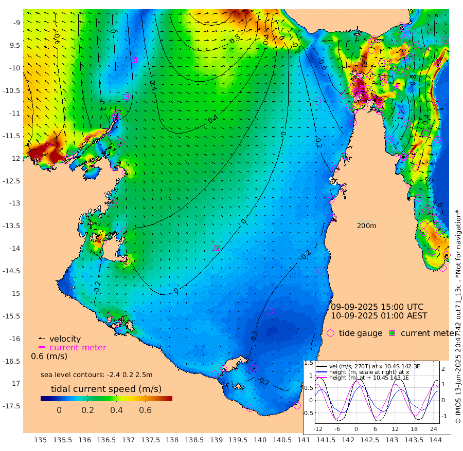 12cm/s 72T +3cm/s rms + 7cm/s -42T. ARA-GOC87 57m 21cm/s 165T +3cm/s rms + 2cm/s -2T. ARA-GOC87 60m 8cm/s 23T +2cm/s rms + 3cm/s 61T. ARA-GOC87 47m 130cm Daru 118cm Bobo Island 30cm Meer Island Barge 58cm Bramble Cay 97cm Unnamed Cay 98cm Pearce Cay 84cm Stephens Island 90cm Merrie England Shoals 125cm Mutacomal Reef 76cm Darnley Island Barge 31cm East Cay 102cm Yorke Island Barge 106cm Rennel Island 105cm Aureed Island 117cm Dungeness Reef 142cm Zagai Island 141cm Yam Island 130cm Dauan Island 129cm Saibai Island 115cm Phipi Reef 152cm Warrior Reef - West 91cm Mabuiag Island Barge 105cm Half Way Island 121cm Coconut Island 120cm Dugong Islet 129cm Poll Island 128cm Kirkcaldie Reef 121cm Suarji Island 132cm Sue Islet 9cm Hawkesbury Island 107cm Alert Patches 118cm Twin Island 25cm Badu Island 129cm St Pauls (Moa Island) 45cm Kubin (Moa Island) 90cm Ince Point 68cm Thursday Island 75cm Nardana Patches 39cm Turtle Head 14cm Round Island -9cm Goods Island -40cm Booby Island -32cm White Rocks Area -38cm Carpentaria 109cm Papou Point -46cm Bampfield Head -35cm Crab Island -25cm Red Wallis Island 19cm Packe Island 128cm Harrington Reef -13cm Herald Camp 46cm Sharp Point 34cm Red Island Point 63cm Possession Island 121cm Alpha Rock 125cm Frederick Point 129cm Wyborn Reef Light 135cm Tetley Island 41cm Triangle Reef 119cm Turtle Head Island 32cm Maclennan Cay -1cm Raine Island 90cm Mcsweeny Reef 74cm Collette Reef 33cm Shadwell Reef 77cm Hannibal Island 55cm Round Point -40cm Vrilya Point 43cm Cape Grenville 38cm Hicks Island 40cm Sir Charles Hardy Island 15cm Harvey Island 22cm Kay Reef 10cm Rocky Island -2cm Chapman Island 2cm Ham Reef 12cm Jubilee Reef 12cm Night Island 2cm Unnamed Reef No. 3 9cm Morris Island 1cm 1st 3 Mile Opening 7cm Creech Reef 17cm Fife Island -1cm Eden Reef 6cm Stanley Island 11cm Normanby River -48cm Yabooma Island -32cm Hutchison River -43cm Elcho Island -40cm North West Crocodile Island 14cm Cape Wessel -13cm Stevens Island 61cm Guluwuru Island -33cm Hopeful Bay -9cm Auster Point 3cm Two Island Bay 22cm Cadell Strait 160cm Mallison Island 38cm Melville Bay (Gove Harbour) 42cm Truant Island 34cm Cape Arnhem 16cm Cape Grey 6cm Hawk Island -20cm Milner Bay (Groote Eylandt) -15cm Cape Beatrice -27cm West Island -39cm Centre Island -22cm Mornington Island -22cm West Wellesley Islands -42cm Bountiful Island -52cm Albert River Mouth -75cm Sweers Island -54cm Karumba -17cm Nassau River Offshore -10cm Christmas Creek -30cm Archer River -18cm Boyd Point -36cm Weipa (Humbug Point) -30cm Pennefather River -35cm Cullen Point