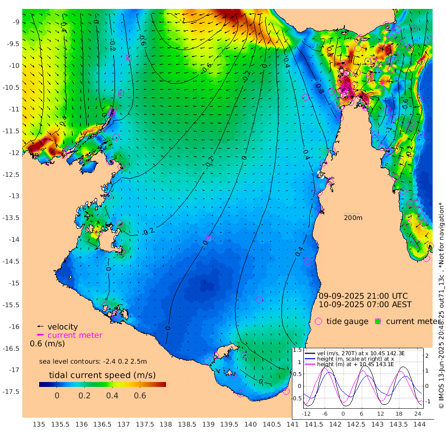 19cm/s -109T +3cm/s rms + 7cm/s -42T. ARA-GOC87 57m 10cm/s -57T +3cm/s rms + 2cm/s -2T. ARA-GOC87 60m 18cm/s -127T +2cm/s rms + 3cm/s 61T. ARA-GOC87 47m -124cm Daru -119cm Bobo Island -38cm Meer Island Barge -63cm Bramble Cay -100cm Unnamed Cay -98cm Pearce Cay -86cm Stephens Island -91cm Merrie England Shoals -118cm Mutacomal Reef -83cm Darnley Island Barge -37cm East Cay -106cm Yorke Island Barge -101cm Rennel Island -108cm Aureed Island -111cm Dungeness Reef -132cm Zagai Island -121cm Yam Island -99cm Dauan Island -108cm Saibai Island -97cm Phipi Reef -131cm Warrior Reef - West -72cm Mabuiag Island Barge -98cm Half Way Island -118cm Coconut Island -111cm Dugong Islet -117cm Poll Island -111cm Kirkcaldie Reef -120cm Suarji Island -125cm Sue Islet 33cm Hawkesbury Island -94cm Alert Patches -101cm Twin Island 9cm Badu Island -111cm St Pauls (Moa Island) -10cm Kubin (Moa Island) -67cm Ince Point -43cm Thursday Island -50cm Nardana Patches -8cm Turtle Head 6cm Round Island 45cm Goods Island 77cm Booby Island 67cm White Rocks Area 61cm Carpentaria -92cm Papou Point 52cm Bampfield Head 78cm Crab Island 72cm Red Wallis Island 25cm Packe Island -123cm Harrington Reef 45cm Herald Camp -38cm Sharp Point -2cm Red Island Point -57cm Possession Island -107cm Alpha Rock -113cm Frederick Point -128cm Wyborn Reef Light -130cm Tetley Island -43cm Triangle Reef -121cm Turtle Head Island -36cm Maclennan Cay -4cm Raine Island -92cm Mcsweeny Reef -79cm Collette Reef -39cm Shadwell Reef -84cm Hannibal Island -59cm Round Point 83cm Vrilya Point -49cm Cape Grenville -44cm Hicks Island -46cm Sir Charles Hardy Island -16cm Harvey Island -31cm Kay Reef -19cm Rocky Island -6cm Chapman Island -9cm Ham Reef -17cm Jubilee Reef -16cm Night Island -6cm Unnamed Reef No. 3 -17cm Morris Island -11cm 1st 3 Mile Opening -13cm Creech Reef -18cm Fife Island -8cm Eden Reef -13cm Stanley Island -18cm Normanby River 25cm Yabooma Island 5cm Hutchison River 21cm Elcho Island 24cm North West Crocodile Island -40cm Cape Wessel -11cm Stevens Island -86cm Guluwuru Island 4cm Hopeful Bay -23cm Auster Point -24cm Two Island Bay -34cm Cadell Strait -168cm Mallison Island -68cm Melville Bay (Gove Harbour) -74cm Truant Island -57cm Cape Arnhem -48cm Cape Grey -33cm Hawk Island -15cm Milner Bay (Groote Eylandt) -5cm Cape Beatrice 3cm West Island 12cm Centre Island 17cm Mornington Island 17cm West Wellesley Islands 11cm Bountiful Island 45cm Albert River Mouth 29cm Sweers Island 48cm Karumba 37cm Nassau River Offshore 40cm Christmas Creek 59cm Archer River 46cm Boyd Point 65cm Weipa (Humbug Point) 63cm Pennefather River 72cm Cullen Point