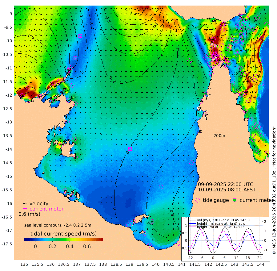 10cm/s -162T +3cm/s rms + 7cm/s -42T. ARA-GOC87 57m 13cm/s -56T +3cm/s rms + 2cm/s -2T. ARA-GOC87 60m 10cm/s 168T +2cm/s rms + 3cm/s 61T. ARA-GOC87 47m -74cm Daru -65cm Bobo Island 7cm Meer Island Barge -8cm Bramble Cay -46cm Unnamed Cay -38cm Pearce Cay -29cm Stephens Island -34cm Merrie England Shoals -69cm Mutacomal Reef -32cm Darnley Island Barge 12cm East Cay -58cm Yorke Island Barge -49cm Rennel Island -59cm Aureed Island -68cm Dungeness Reef -112cm Zagai Island -103cm Yam Island -104cm Dauan Island -121cm Saibai Island -87cm Phipi Reef -112cm Warrior Reef - West -83cm Mabuiag Island Barge -49cm Half Way Island -75cm Coconut Island -66cm Dugong Islet -86cm Poll Island -79cm Kirkcaldie Reef -100cm Suarji Island -102cm Sue Islet 19cm Hawkesbury Island -81cm Alert Patches -85cm Twin Island -2cm Badu Island -101cm St Pauls (Moa Island) -13cm Kubin (Moa Island) -64cm Ince Point -45cm Thursday Island -52cm Nardana Patches -11cm Turtle Head 0cm Round Island 34cm Goods Island 53cm Booby Island 51cm White Rocks Area 18cm Carpentaria -81cm Papou Point 36cm Bampfield Head 55cm Crab Island 47cm Red Wallis Island 16cm Packe Island -74cm Harrington Reef 26cm Herald Camp -42cm Sharp Point -7cm Red Island Point -48cm Possession Island -93cm Alpha Rock -84cm Frederick Point -80cm Wyborn Reef Light -87cm Tetley Island -8cm Triangle Reef -64cm Turtle Head Island 5cm Maclennan Cay 33cm Raine Island -41cm Mcsweeny Reef -30cm Collette Reef 1cm Shadwell Reef -29cm Hannibal Island -2cm Round Point 51cm Vrilya Point -1cm Cape Grenville 6cm Hicks Island -3cm Sir Charles Hardy Island -1cm Harvey Island 14cm Kay Reef 22cm Rocky Island 32cm Chapman Island 25cm Ham Reef 21cm Jubilee Reef 21cm Night Island 29cm Unnamed Reef No. 3 27cm Morris Island 28cm 1st 3 Mile Opening 26cm Creech Reef 27cm Fife Island 42cm Eden Reef 30cm Stanley Island 33cm Normanby River 112cm Yabooma Island 111cm Hutchison River 106cm Elcho Island 104cm North West Crocodile Island 19cm Cape Wessel 71cm Stevens Island -22cm Guluwuru Island 77cm Hopeful Bay 45cm Auster Point 44cm Two Island Bay 62cm Cadell Strait -118cm Mallison Island -6cm Melville Bay (Gove Harbour) -10cm Truant Island -16cm Cape Arnhem -19cm Cape Grey -10cm Hawk Island -8cm Milner Bay (Groote Eylandt) -2cm Cape Beatrice -16cm West Island -9cm Centre Island 16cm Mornington Island 14cm West Wellesley Islands 21cm Bountiful Island 57cm Albert River Mouth 47cm Sweers Island 60cm Karumba 36cm Nassau River Offshore 35cm Christmas Creek 49cm Archer River 29cm Boyd Point 52cm Weipa (Humbug Point) 45cm Pennefather River 42cm Cullen Point
