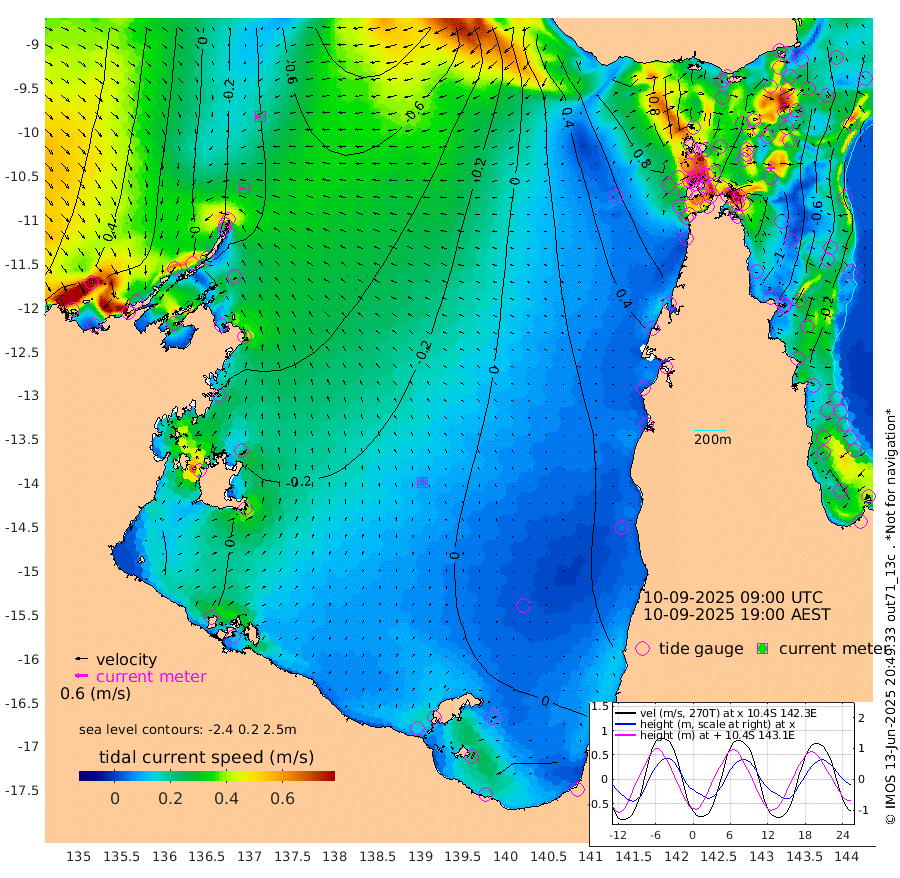 28cm/s -93T +3cm/s rms + 7cm/s -42T. ARA-GOC87 57m 7cm/s -8T +3cm/s rms + 2cm/s -2T. ARA-GOC87 60m 25cm/s -112T +2cm/s rms + 3cm/s 61T. ARA-GOC87 47m -114cm Daru -108cm Bobo Island -34cm Meer Island Barge -58cm Bramble Cay -84cm Unnamed Cay -91cm Pearce Cay -79cm Stephens Island -82cm Merrie England Shoals -102cm Mutacomal Reef -72cm Darnley Island Barge -35cm East Cay -90cm Yorke Island Barge -90cm Rennel Island -93cm Aureed Island -98cm Dungeness Reef -110cm Zagai Island -100cm Yam Island -83cm Dauan Island -75cm Saibai Island -91cm Phipi Reef -115cm Warrior Reef - West -36cm Mabuiag Island Barge -91cm Half Way Island -103cm Coconut Island -95cm Dugong Islet -99cm Poll Island -100cm Kirkcaldie Reef -80cm Suarji Island -95cm Sue Islet 54cm Hawkesbury Island -65cm Alert Patches -76cm Twin Island 25cm Badu Island -82cm St Pauls (Moa Island) 6cm Kubin (Moa Island) -43cm Ince Point -20cm Thursday Island -27cm Nardana Patches 6cm Turtle Head 29cm Round Island 58cm Goods Island 92cm Booby Island 86cm White Rocks Area 93cm Carpentaria -68cm Papou Point 96cm Bampfield Head 64cm Crab Island 77cm Red Wallis Island 27cm Packe Island -105cm Harrington Reef 65cm Herald Camp -32cm Sharp Point 7cm Red Island Point -29cm Possession Island -75cm Alpha Rock -91cm Frederick Point -105cm Wyborn Reef Light -106cm Tetley Island -35cm Triangle Reef -102cm Turtle Head Island -28cm Maclennan Cay -8cm Raine Island -80cm Mcsweeny Reef -68cm Collette Reef -34cm Shadwell Reef -74cm Hannibal Island -55cm Round Point 67cm Vrilya Point -41cm Cape Grenville -40cm Hicks Island -29cm Sir Charles Hardy Island -15cm Harvey Island -22cm Kay Reef -13cm Rocky Island -2cm Chapman Island -3cm Ham Reef -14cm Jubilee Reef -20cm Night Island -4cm Unnamed Reef No. 3 -15cm Morris Island -7cm 1st 3 Mile Opening -12cm Creech Reef -26cm Fife Island -9cm Eden Reef -12cm Stanley Island -16cm Normanby River 28cm Yabooma Island 4cm Hutchison River 17cm Elcho Island 19cm North West Crocodile Island -21cm Cape Wessel -14cm Stevens Island -76cm Guluwuru Island 7cm Hopeful Bay -10cm Auster Point -19cm Two Island Bay -56cm Cadell Strait -189cm Mallison Island -56cm Melville Bay (Gove Harbour) -60cm Truant Island -49cm Cape Arnhem -29cm Cape Grey -26cm Hawk Island -4cm Milner Bay (Groote Eylandt) -4cm Cape Beatrice 14cm West Island 16cm Centre Island -21cm Mornington Island -11cm West Wellesley Islands 8cm Bountiful Island -16cm Albert River Mouth -5cm Sweers Island -15cm Karumba -11cm Nassau River Offshore -2cm Christmas Creek 32cm Archer River 38cm Boyd Point 52cm Weipa (Humbug Point) 33cm Pennefather River 65cm Cullen Point